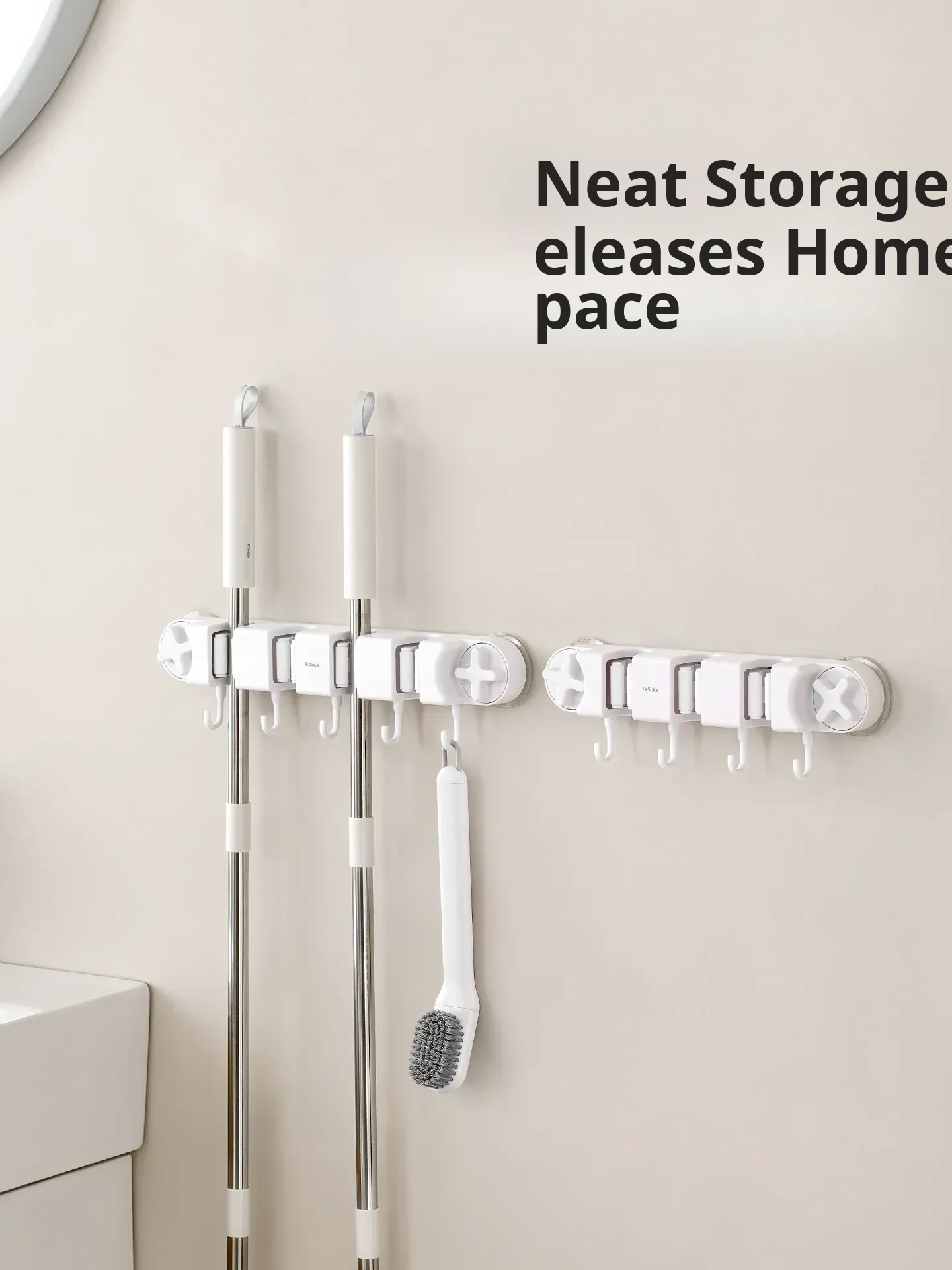FaSoLa Suction Cup Hooks - No Drill, Heavy Duty Mop Wall Mount Clips, Damage-Free Wall Hanging Hooks for Organizing - Set of 1 Row