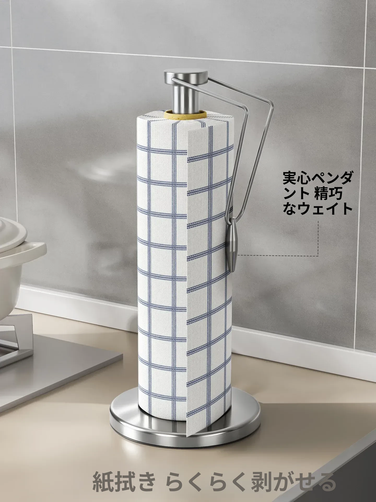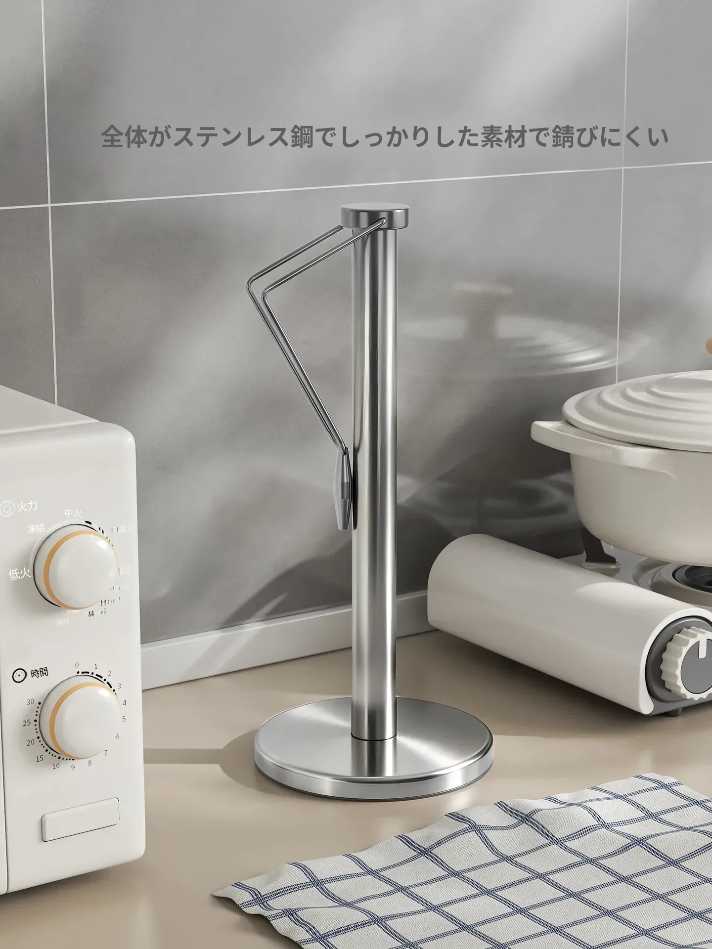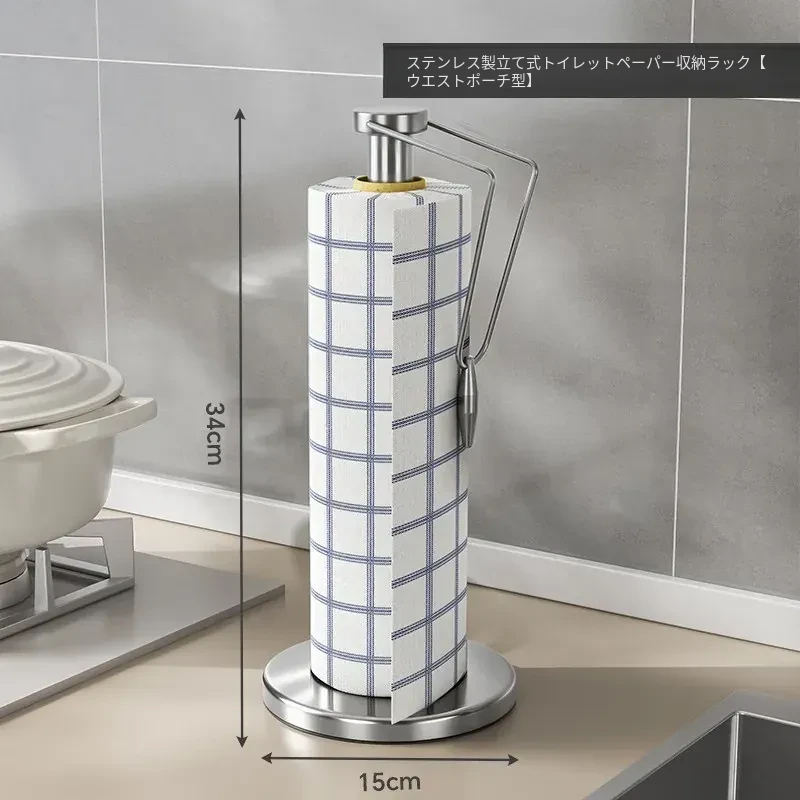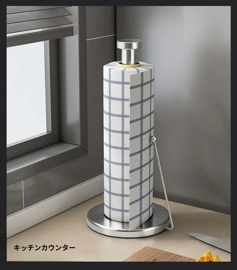 創意キッチン用スタンド型ペーパータオルホルダー - ステンレス製でおしゃれ!穴を開けずに簡単設置、多機能収納ラックでキッチンをスッキリ整理。