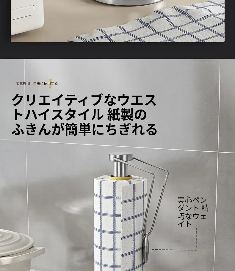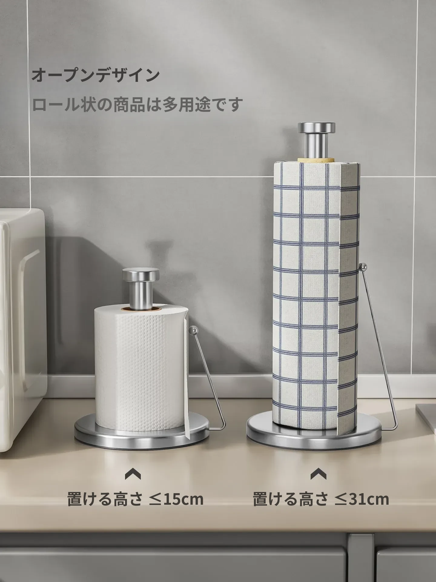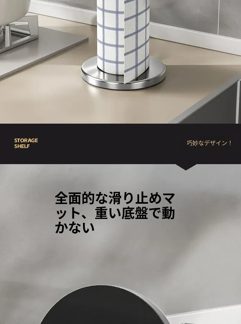 創意キッチン用スタンド型ペーパータオルホルダー - ステンレス製でおしゃれ!穴を開けずに簡単設置、多機能収納ラックでキッチンをスッキリ整理。