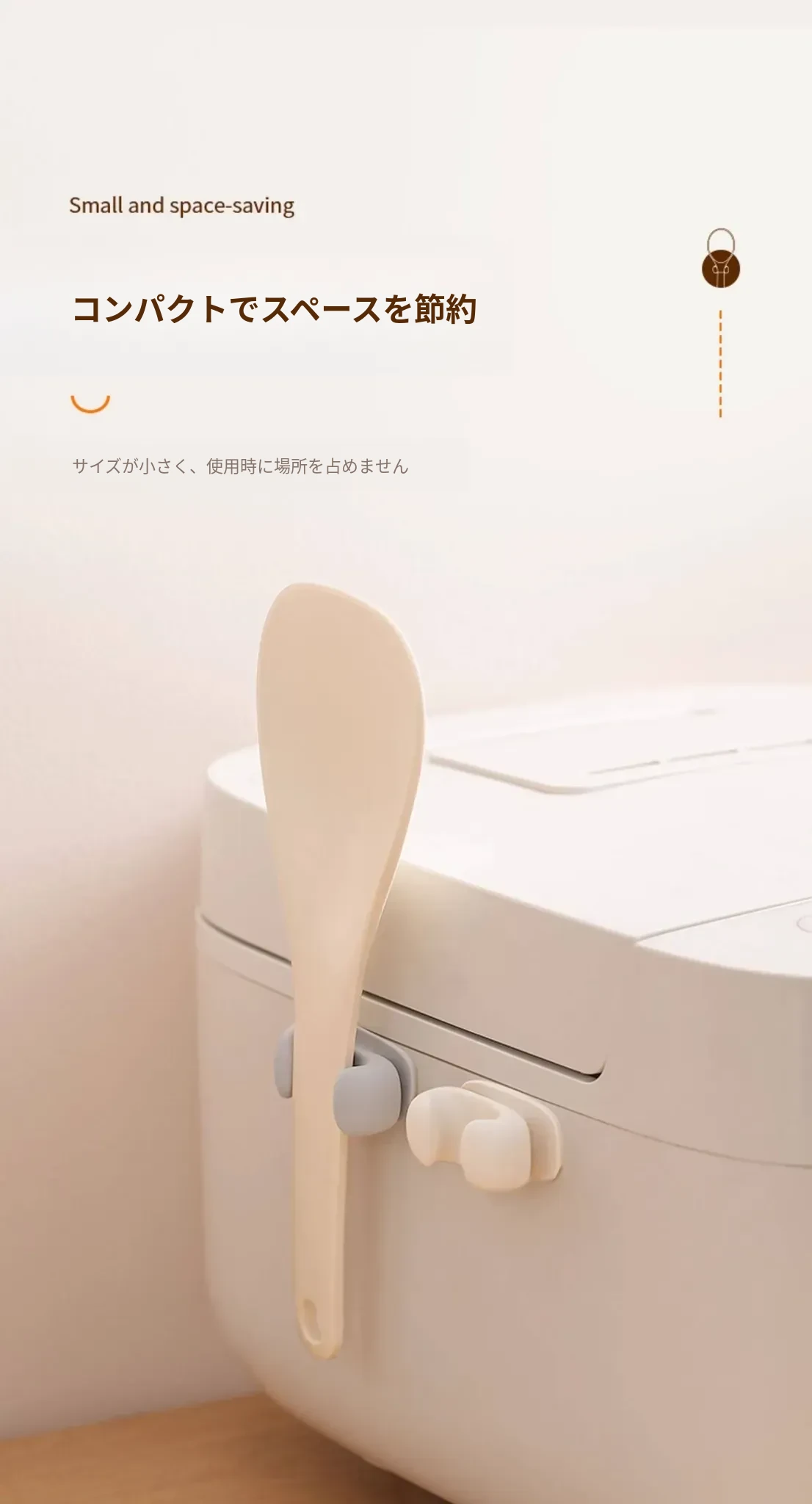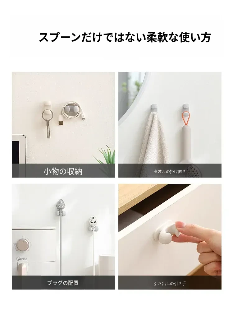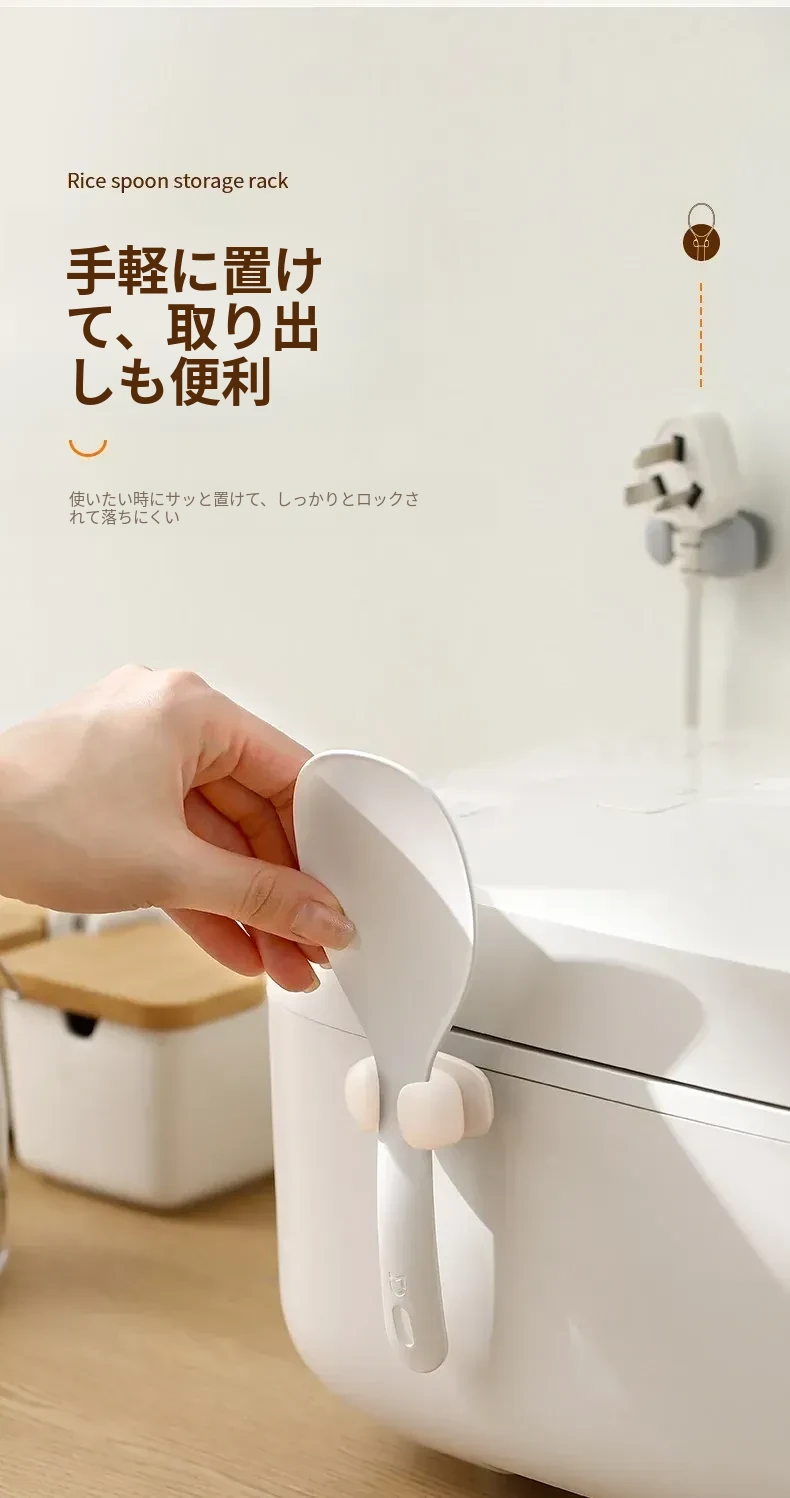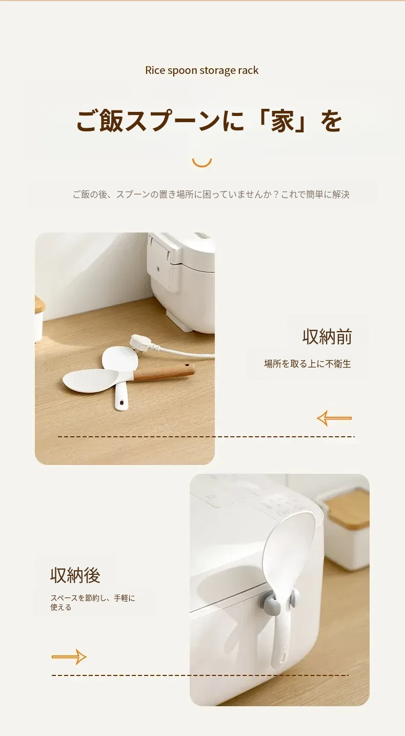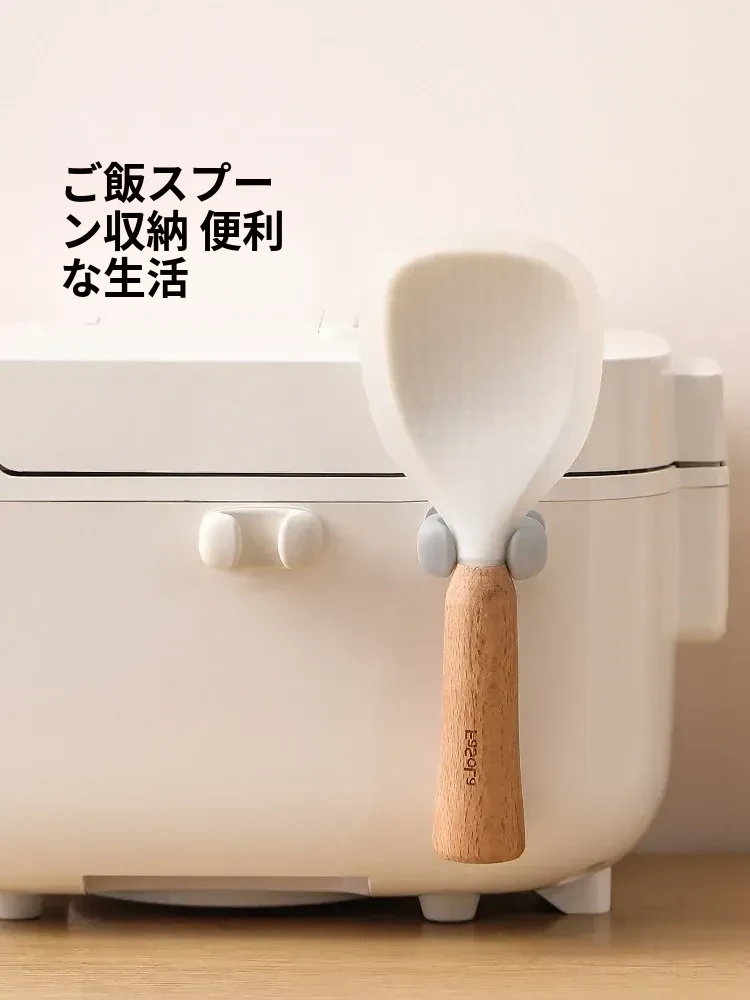 FaSoLaの飯勺収納ラック - 壁掛け式でキッチンをスッキリ整理!電気炊飯器やしゃもじに最適なシリコン製のフックで、使いやすさ抜群!おしゃれなデザインで、料理の時間をもっと楽しく!
