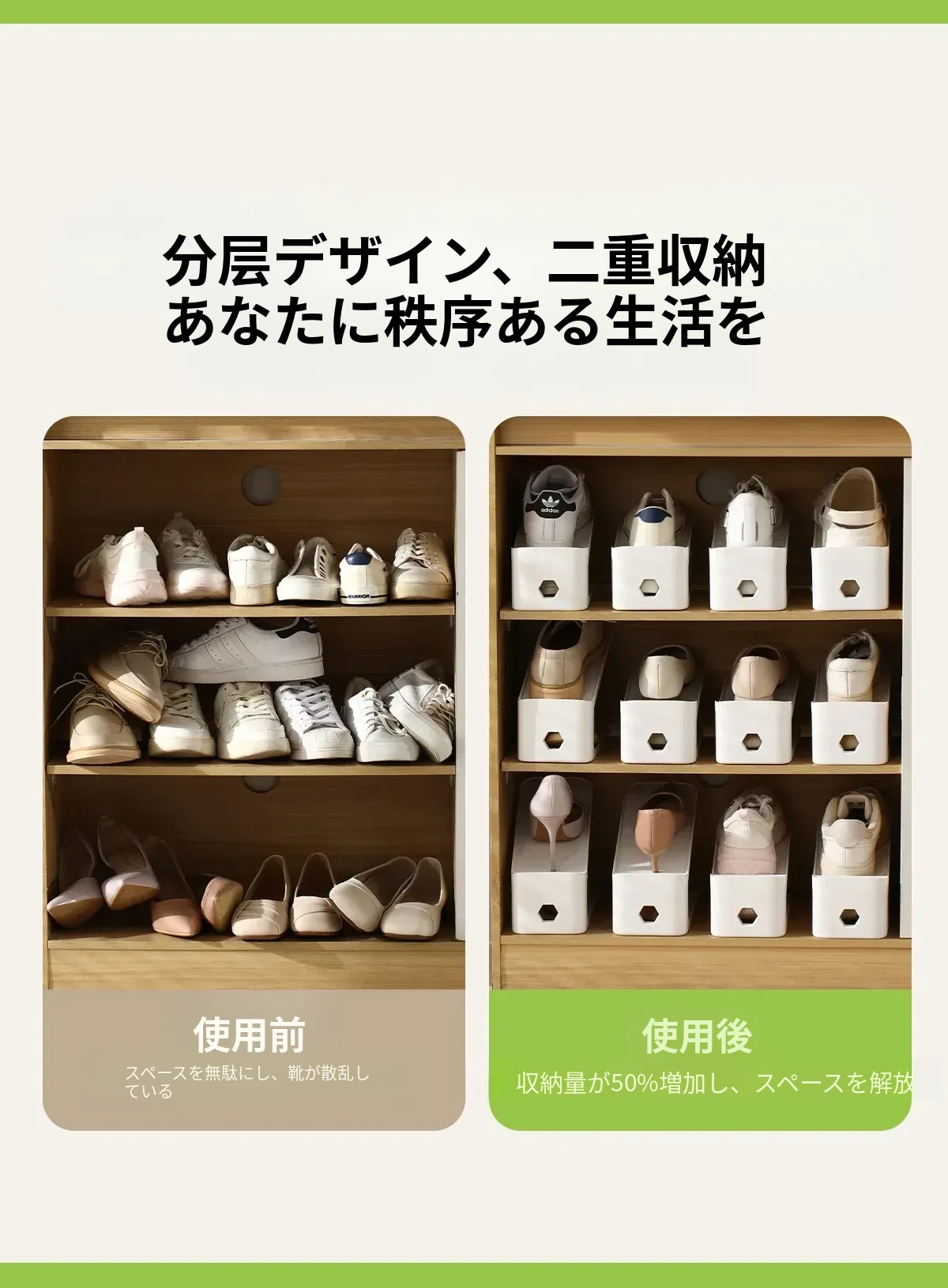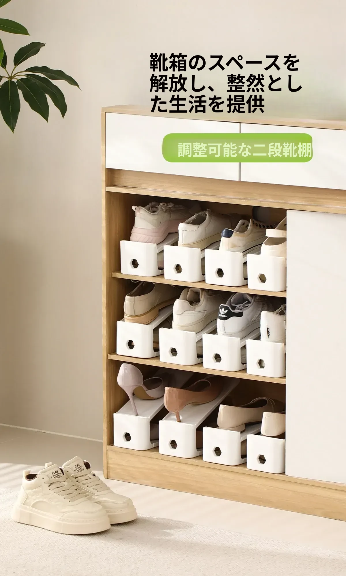 FaSoLa調整可能な二段靴ラック|省スペース設計の靴収納マジック|家庭用靴棚でスマートに整理整頓!