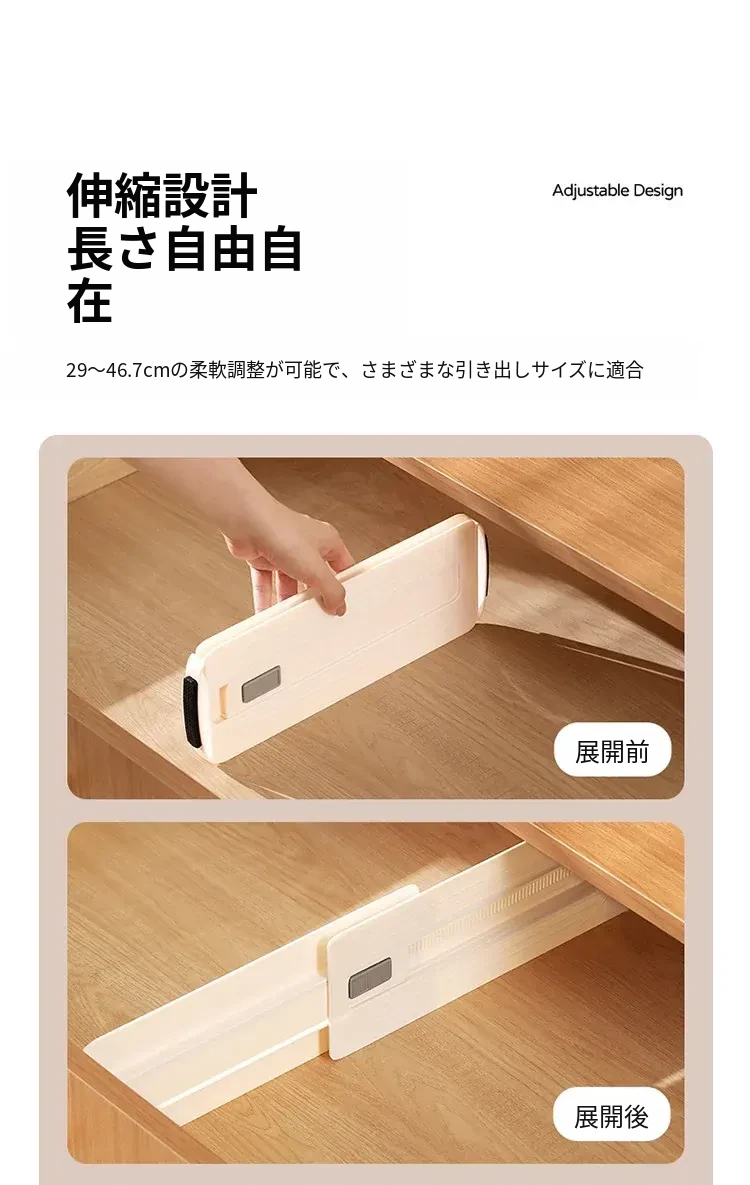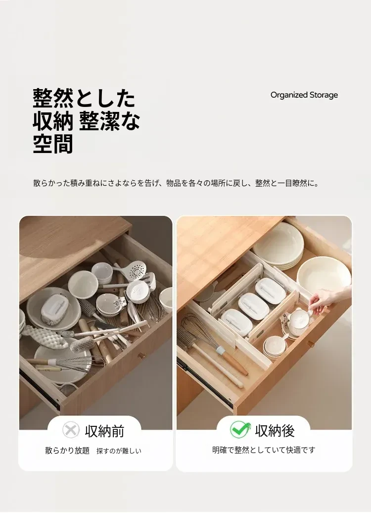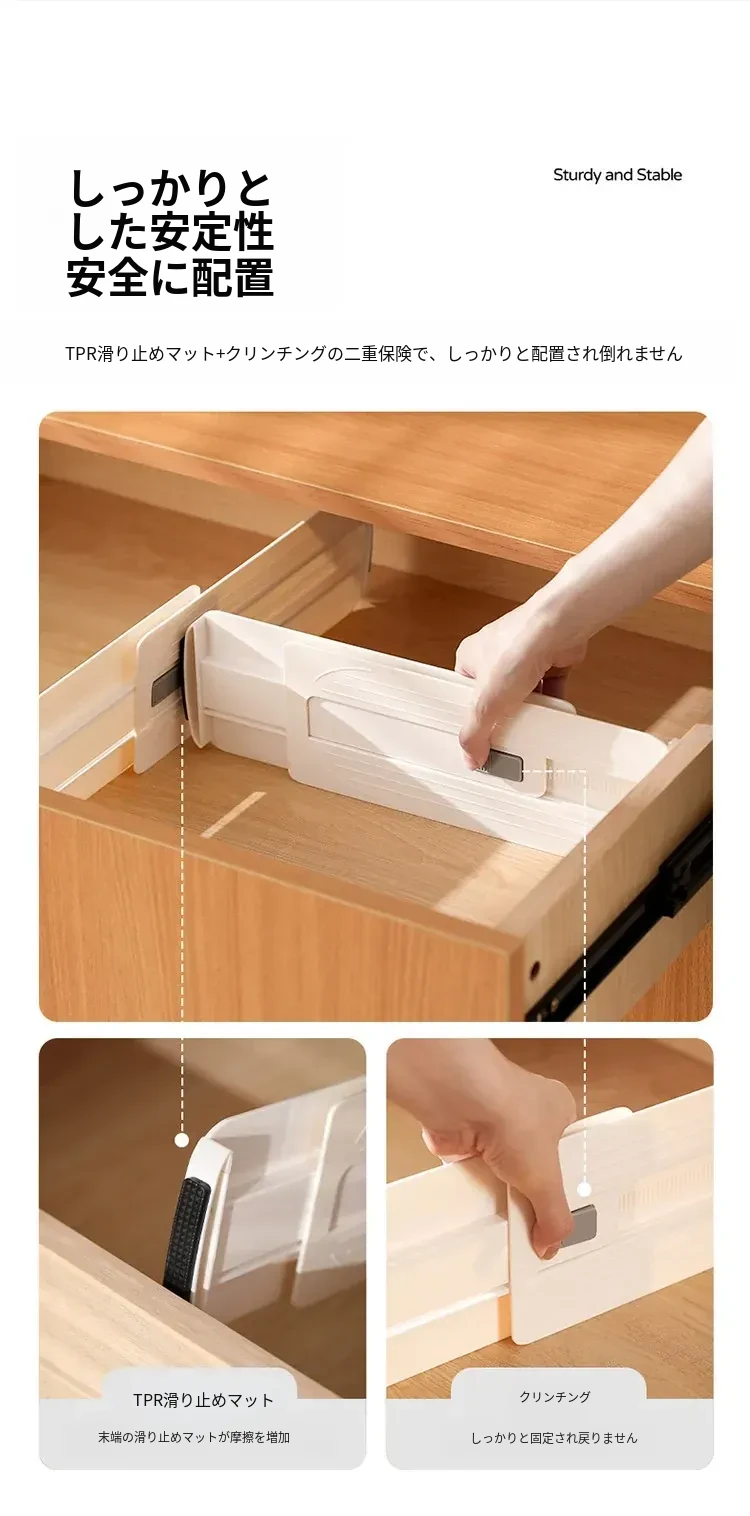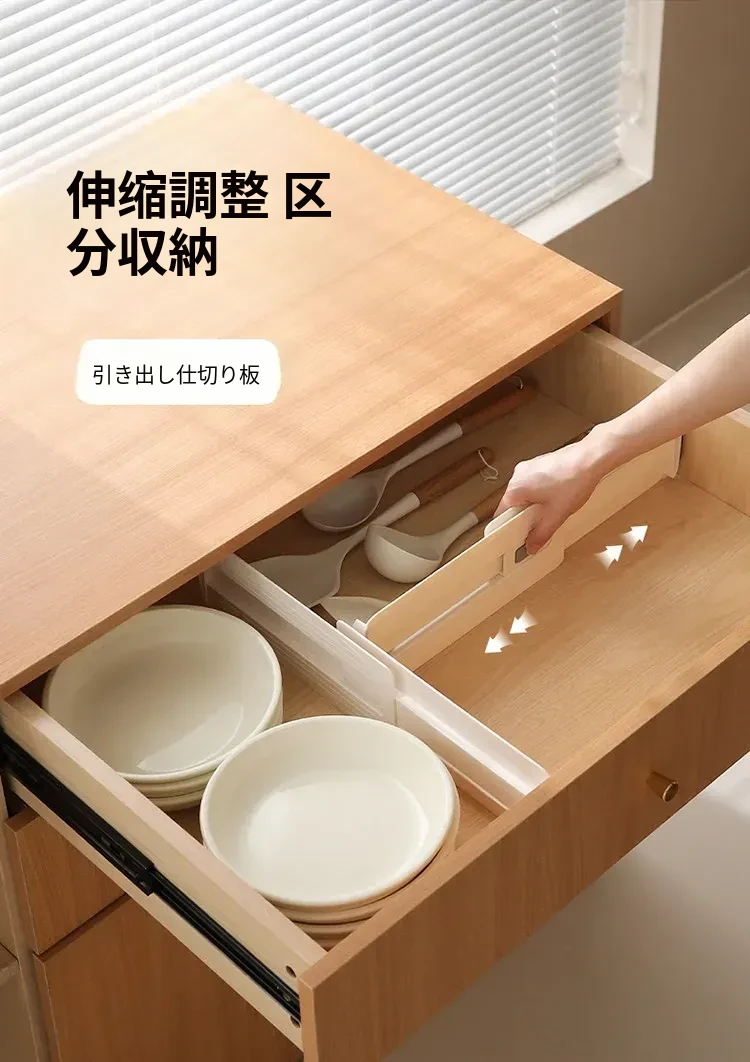 FaSoLa伸縮式引き出し仕切り板 - 家庭用キッチンの収納をスマートに!スペースを有効活用し、整理整頓が簡単にできる便利アイテム。あなたの引き出しをすっきりさせる魔法のような存在!
