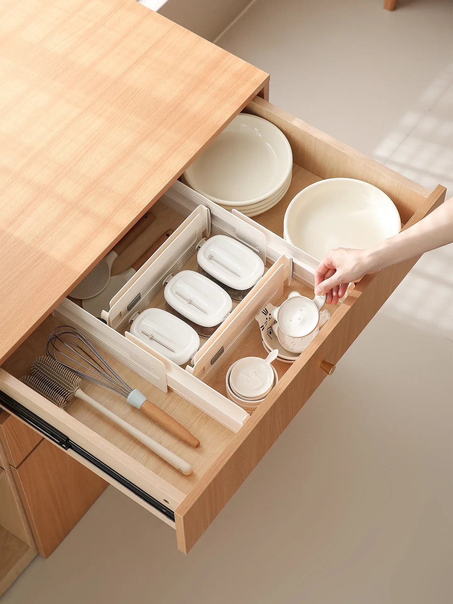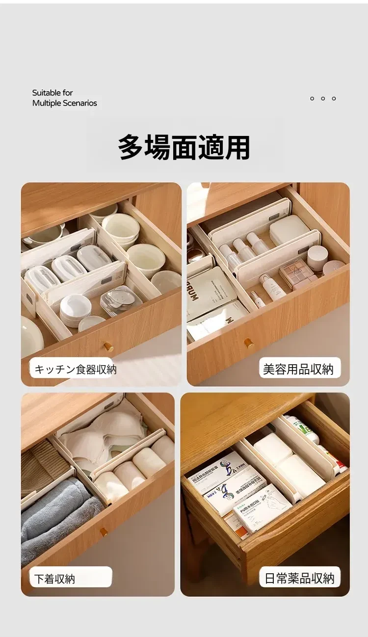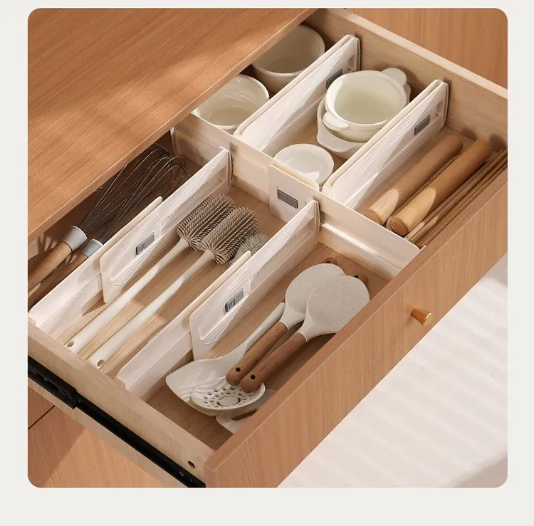FaSoLa伸縮式引き出し仕切り板 - 家庭用キッチンの収納をスマートに!スペースを有効活用し、整理整頓が簡単にできる便利アイテム。あなたの引き出しをすっきりさせる魔法のような存在!