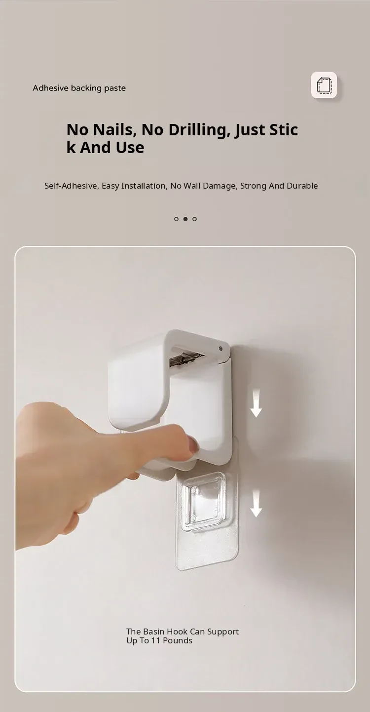 FaSoLa Adjustable Wall-Mounted Bathroom Sink Hook - No Drill, Easy Installation, Perfect for Organizing Your Bathtub and Sink Area