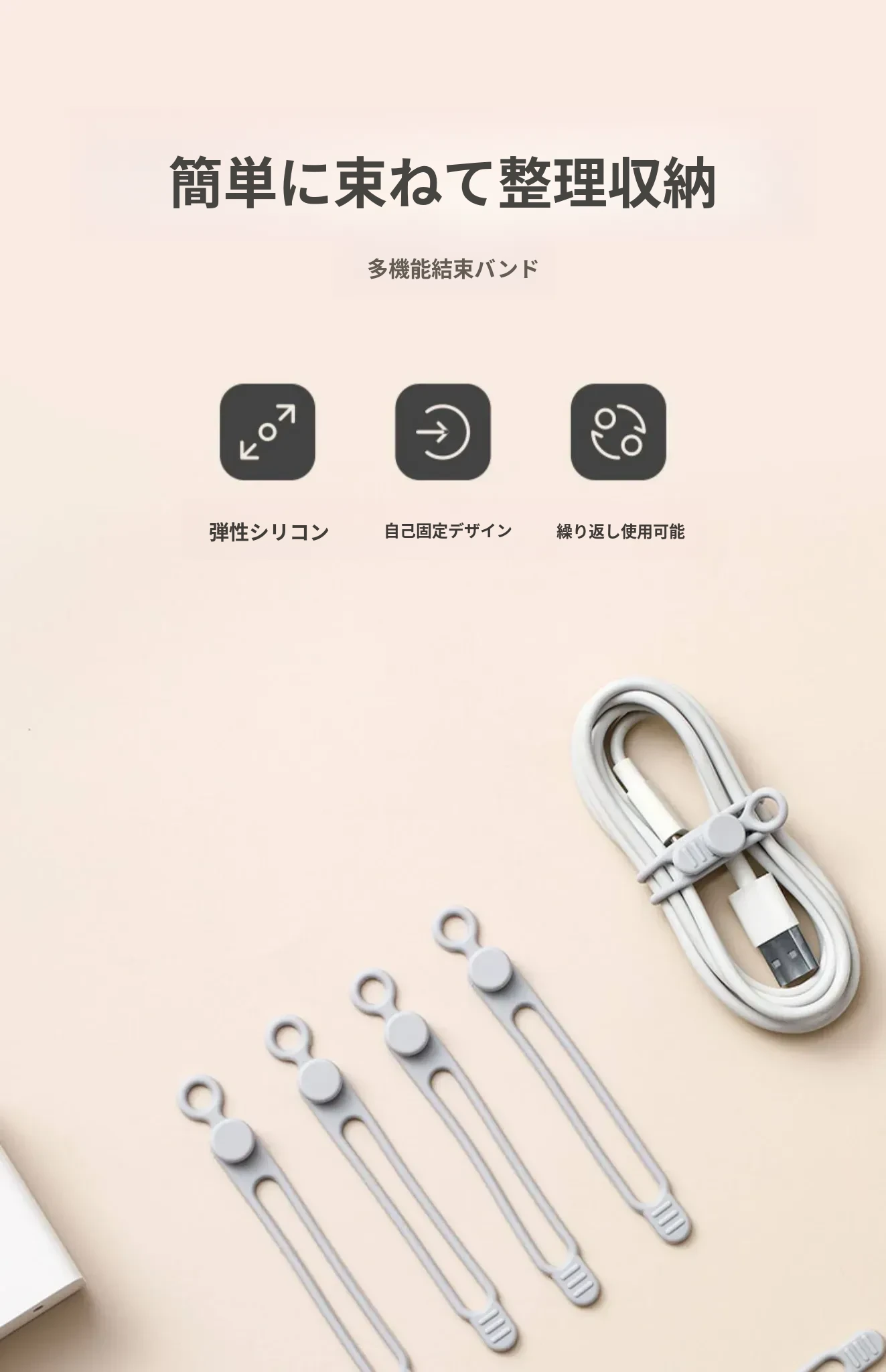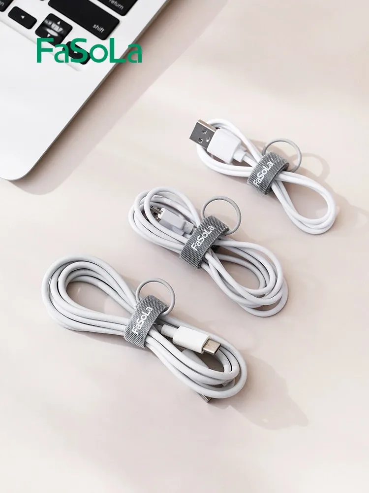 FaSoLaデータケーブル収納クリップ|シリコン製マジックテープ付き|配線整理の神アイテム|多機能ケーブルバンドでスッキリ整理!