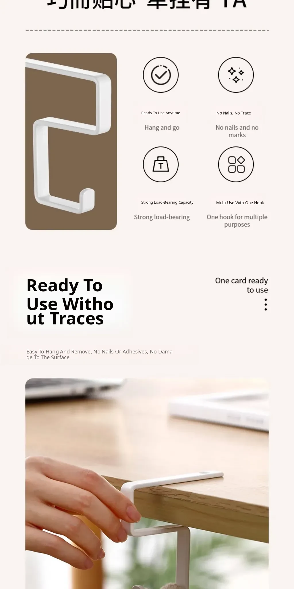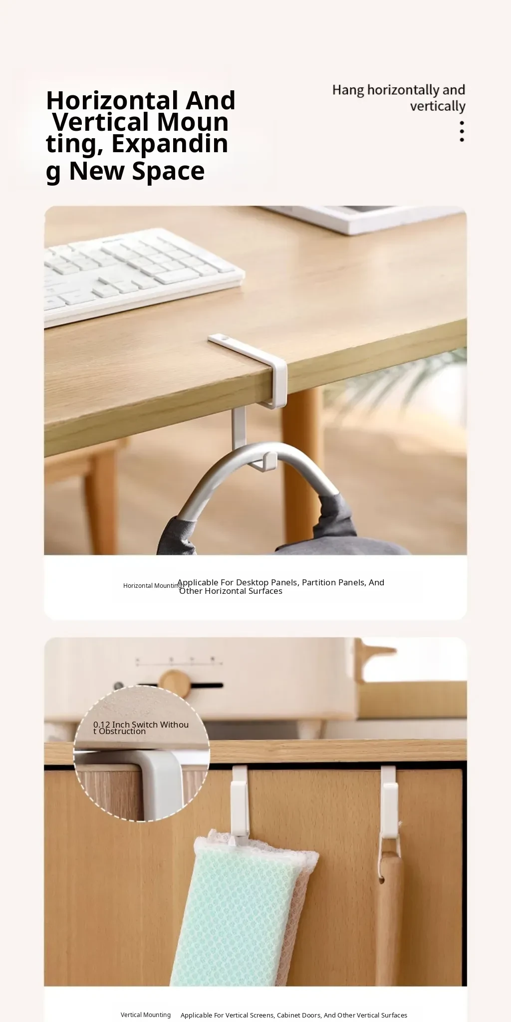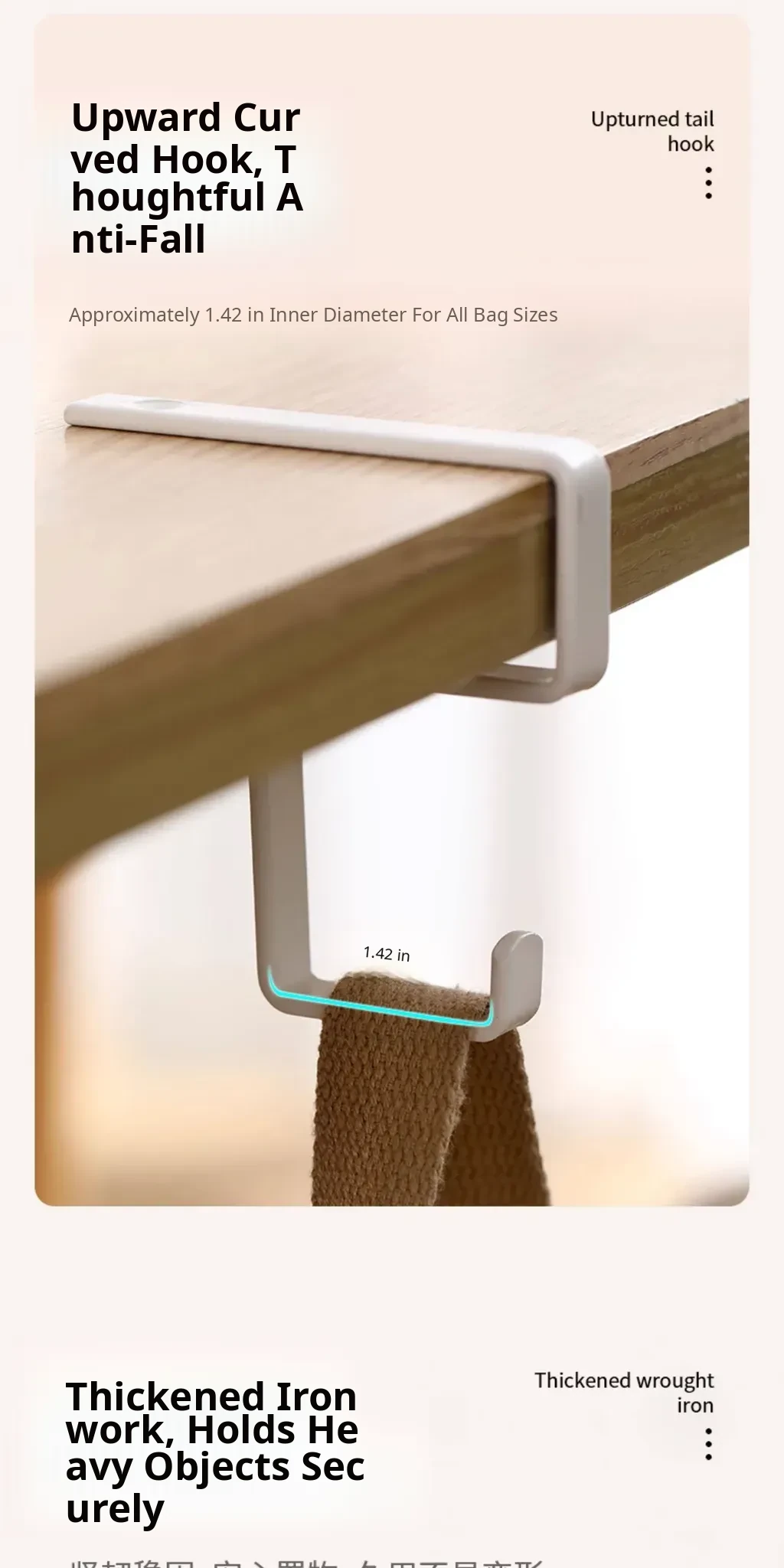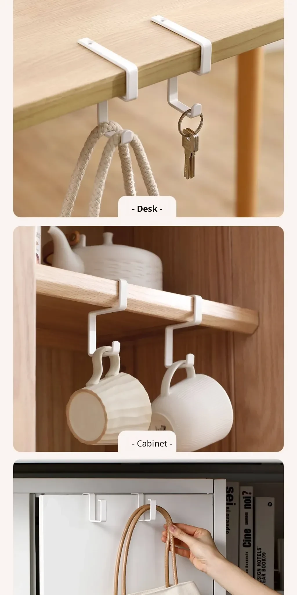 FaSoLa Desk Backpack Hook - No Drill Wall-Mounted Organizer for Office, Dorm, Closet, and Kitchen Cabinet - Perfect for Hanging Bags and Keeping Your Space Tidy