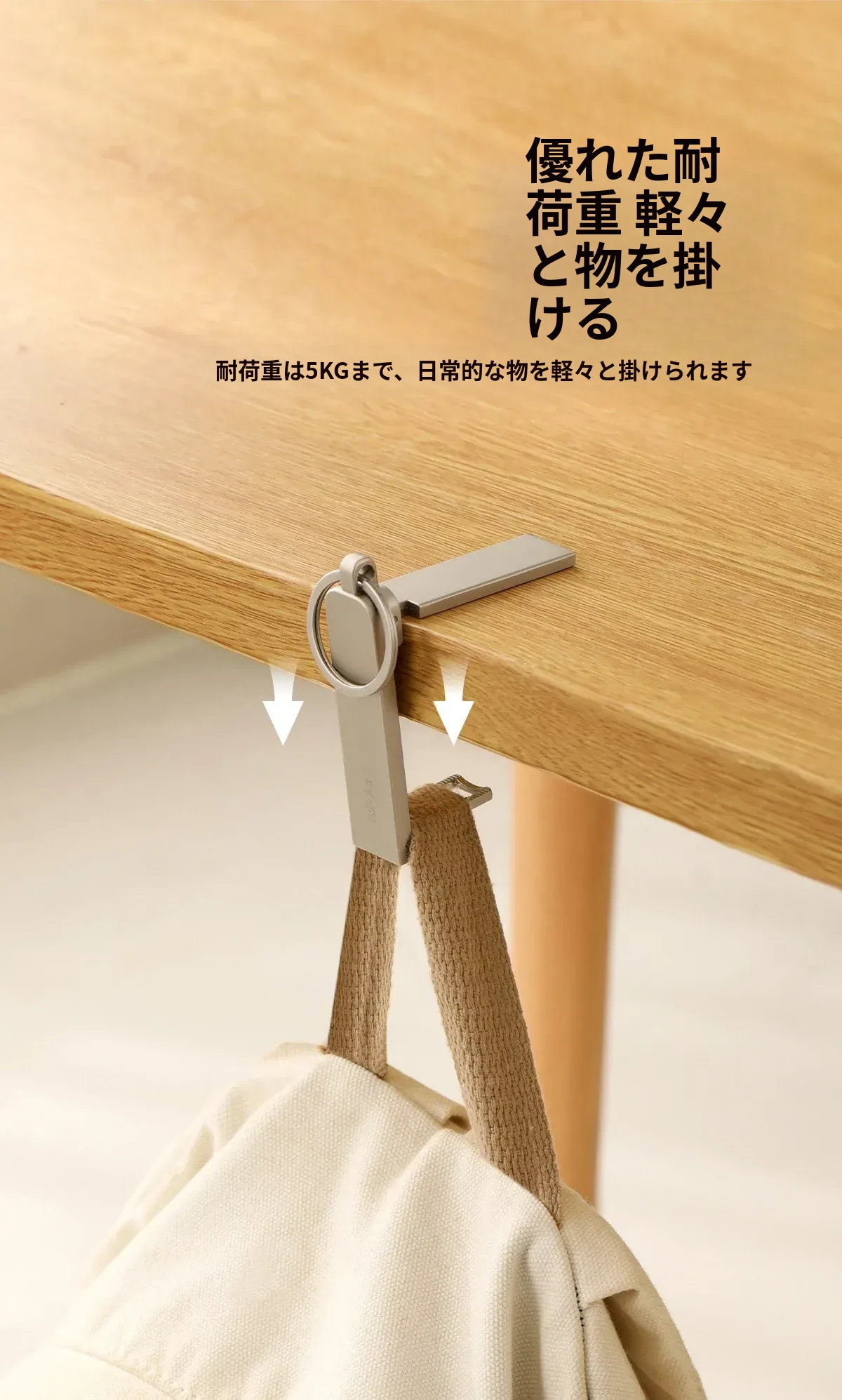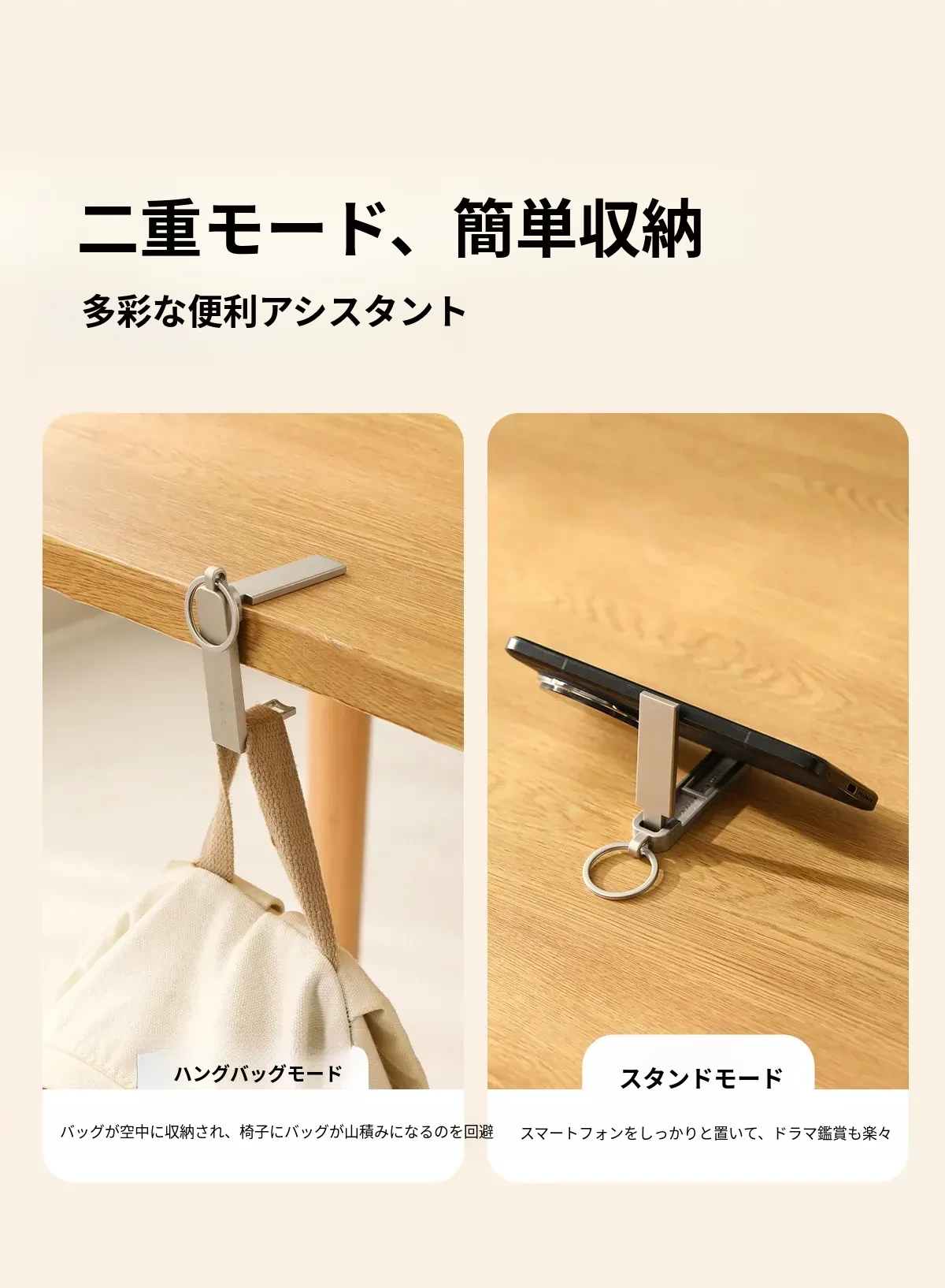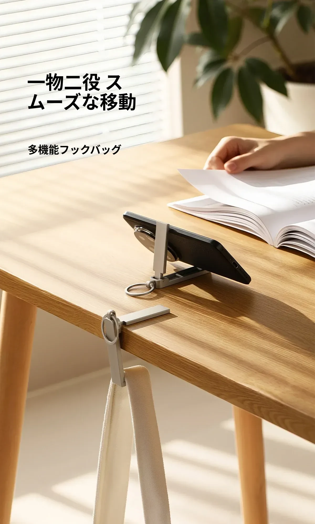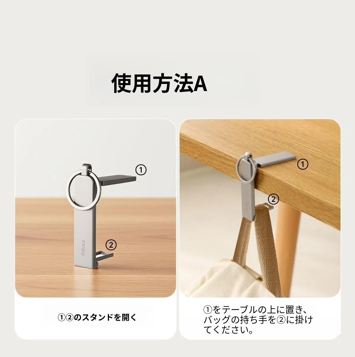 FaSoLaデスクサイドフック - 穴あけ不要で簡単取り付け!オフィスや自宅で使える便利なバッグフックと多機能スマホスタンドが1つに。スッキリしたデスク環境を実現します!