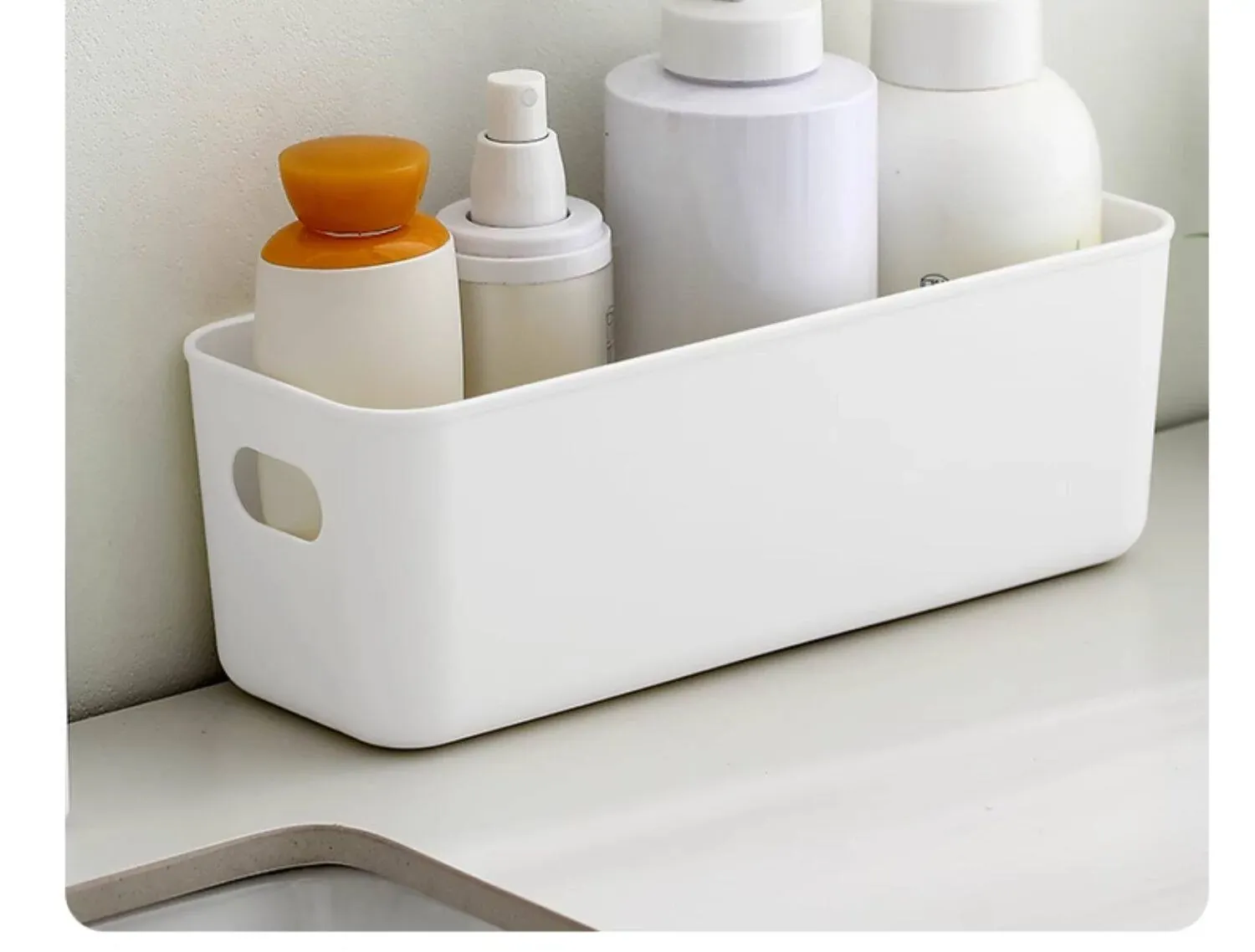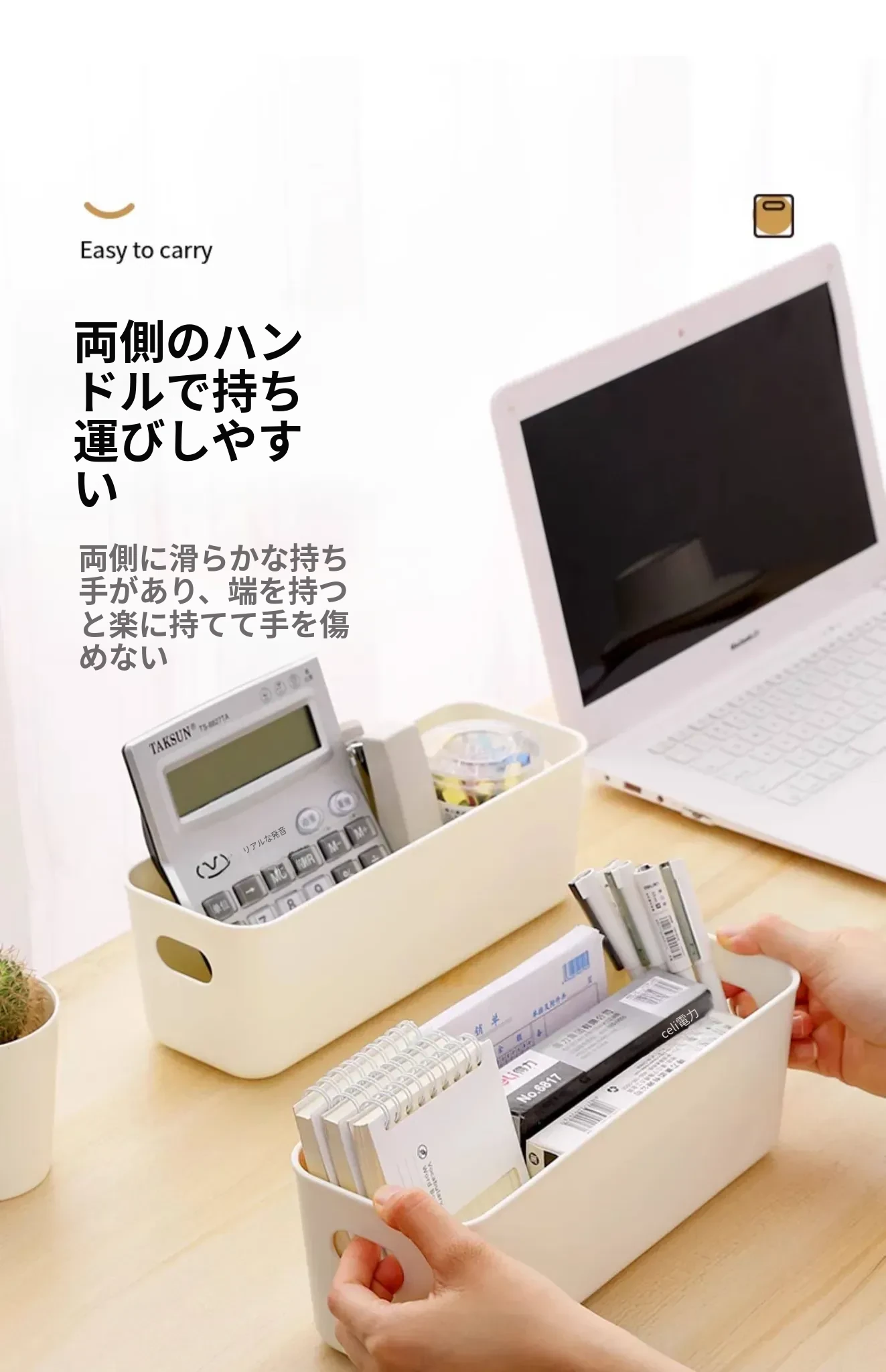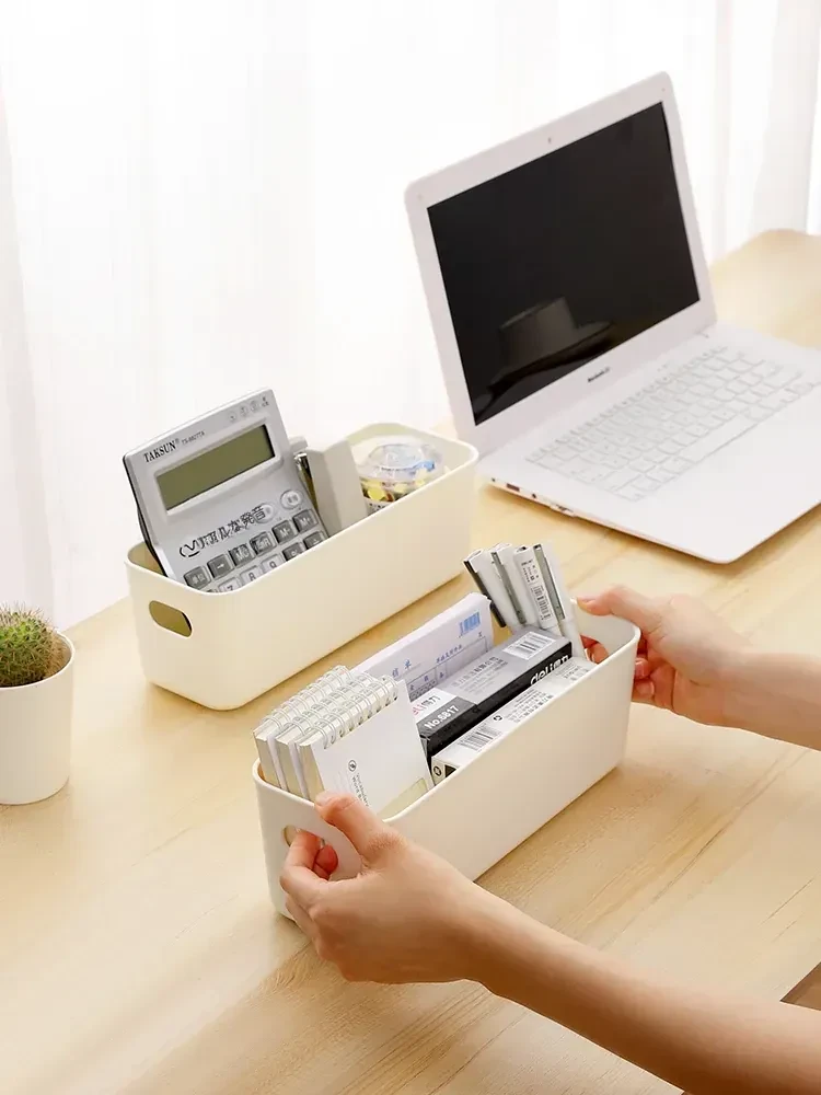 FaSoLaデスク収納ボックス - 化粧品やキッチン小物をスッキリ整理!プラスチック製で軽量、使いやすさ抜群の収納バスケット。お菓子や日用品も一緒にまとめて、お部屋を美しく保ちましょう!