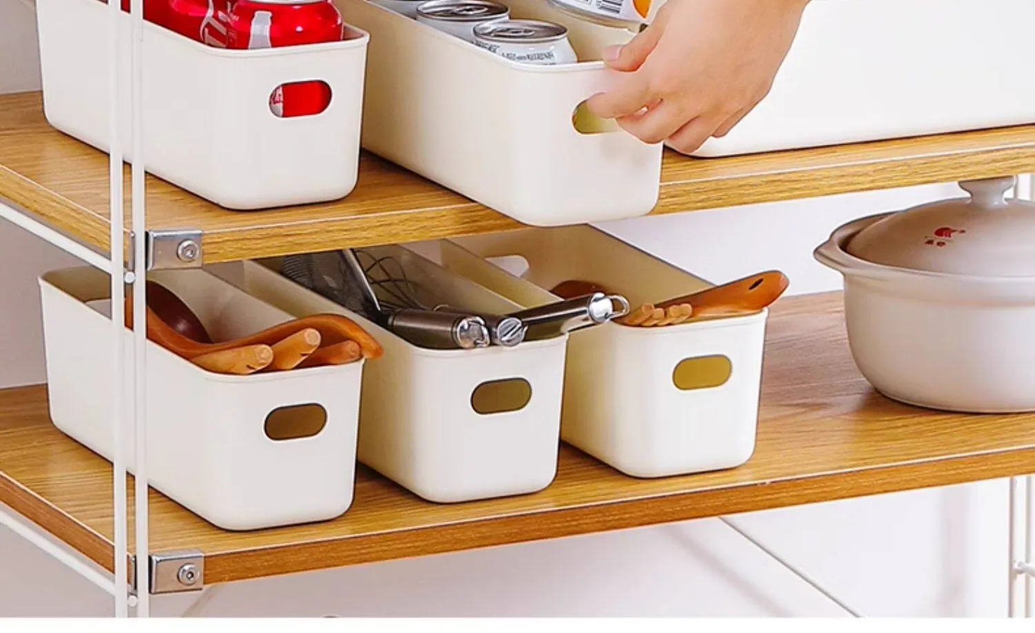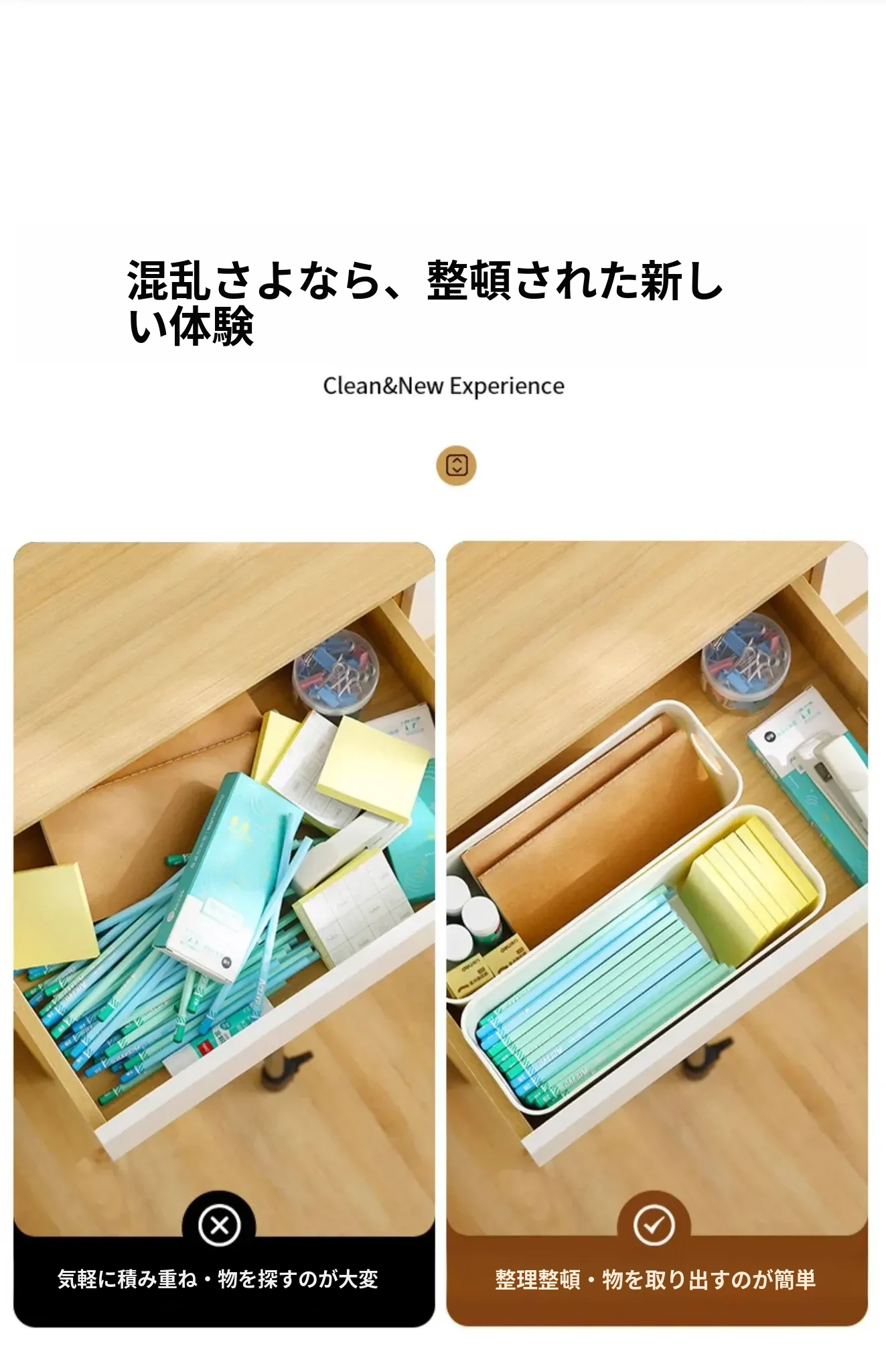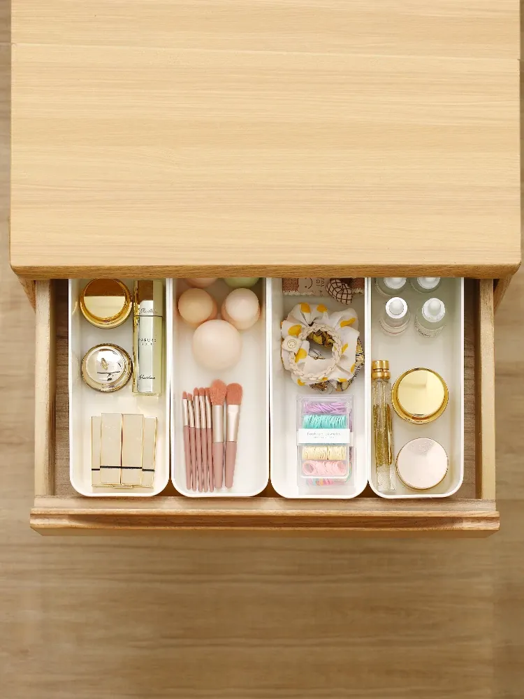 FaSoLaデスク収納ボックス - 化粧品やキッチン小物をスッキリ整理!プラスチック製で軽量、使いやすさ抜群の収納バスケット。お菓子や日用品も一緒にまとめて、お部屋を美しく保ちましょう!