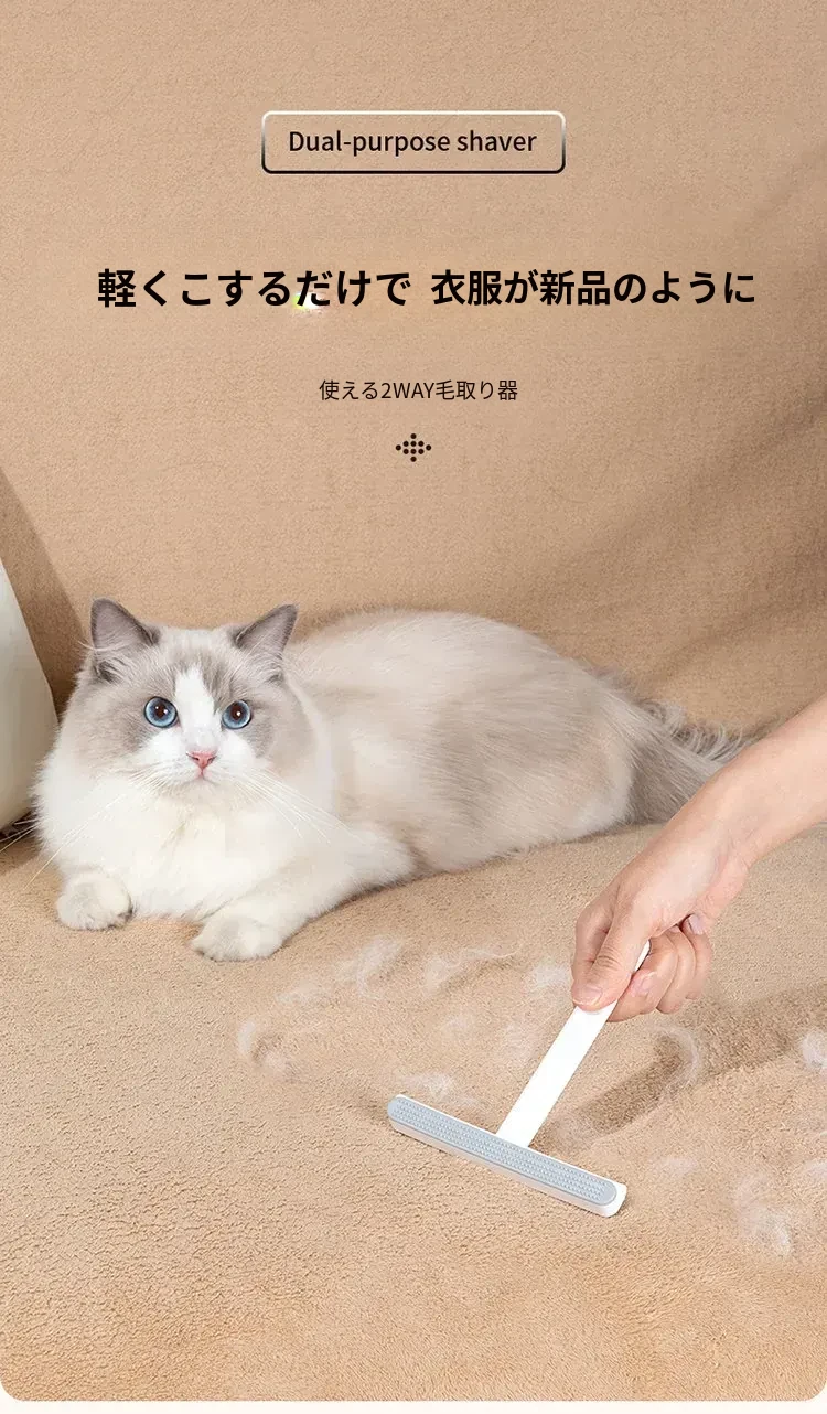 FaSoLaキャットヘアクリーナー - 両面使用可能な毛取り器、衣類を傷めずに簡単に毛を取り除ける!家庭用に最適、コートや衣服の毛をすっきり清掃!