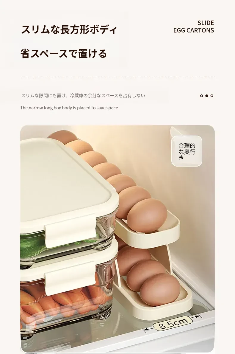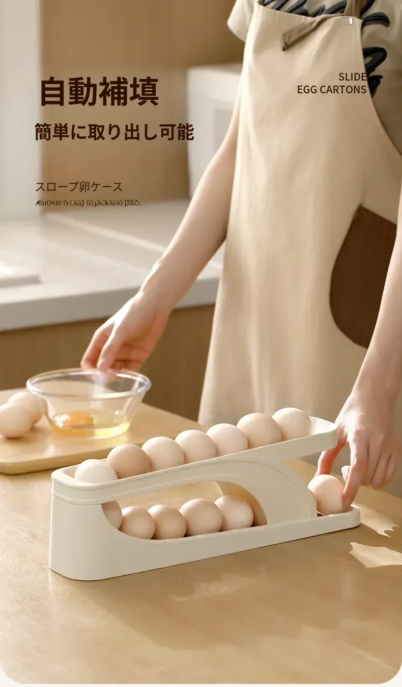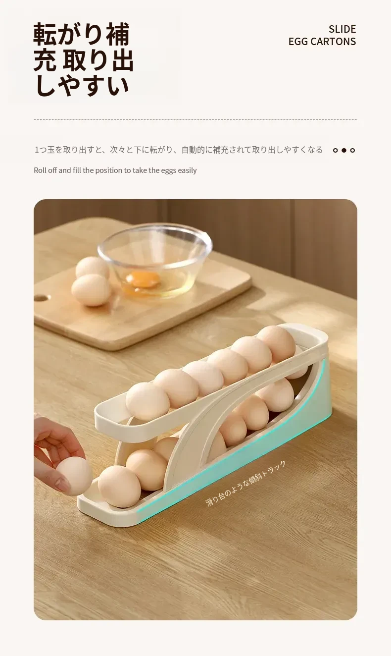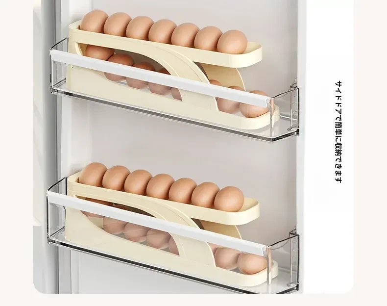 FaSoLaエッグストレージボックス|キッチン・家庭用|冷蔵庫サイドドアに最適な食品グレードの新鮮保存ボックス|転がる卵用スロープ式エッグラックで、卵をスムーズに取り出せます!