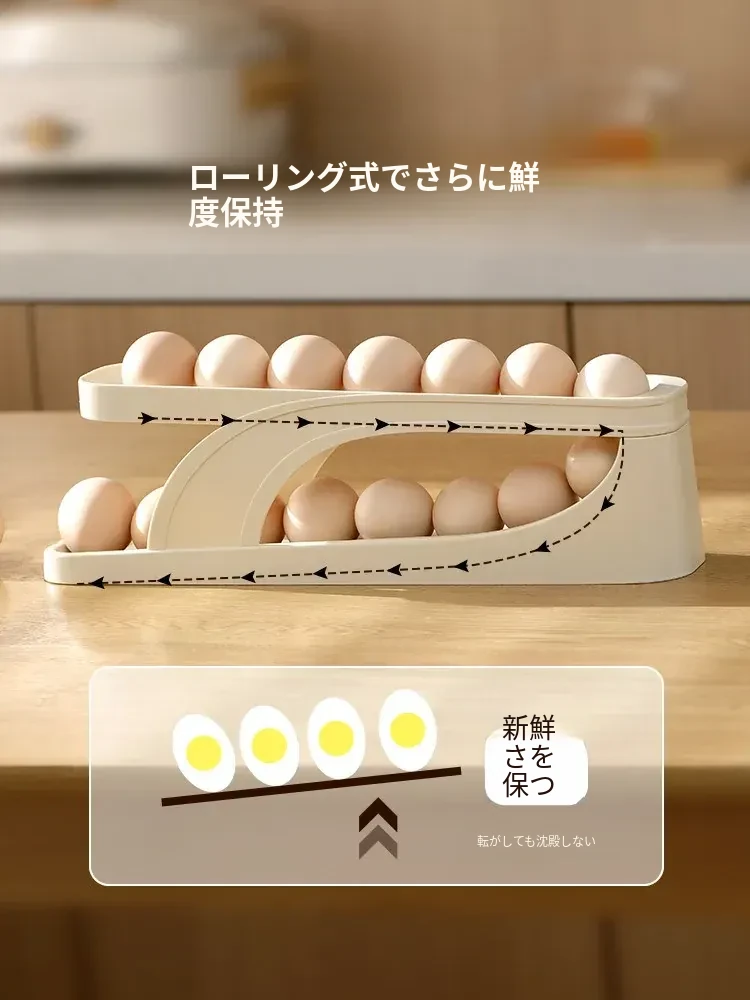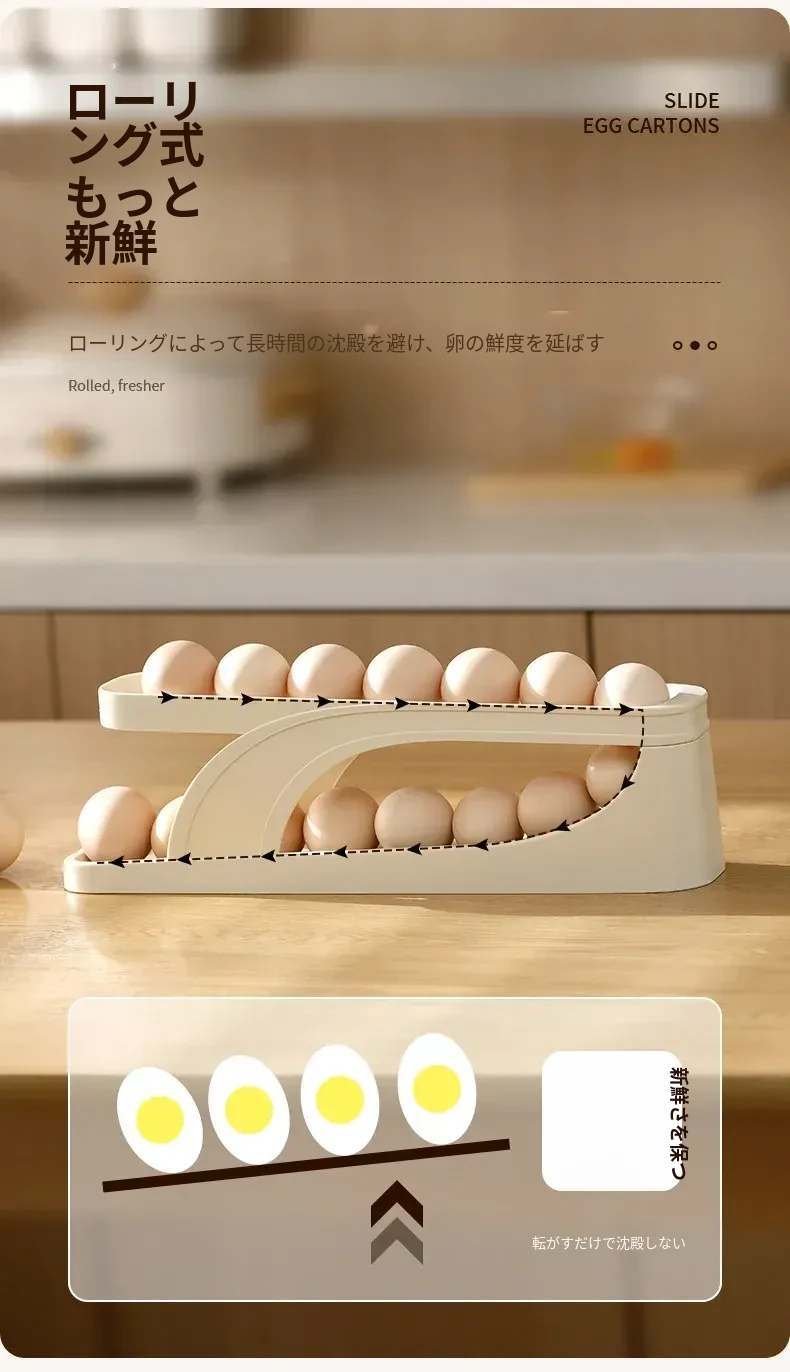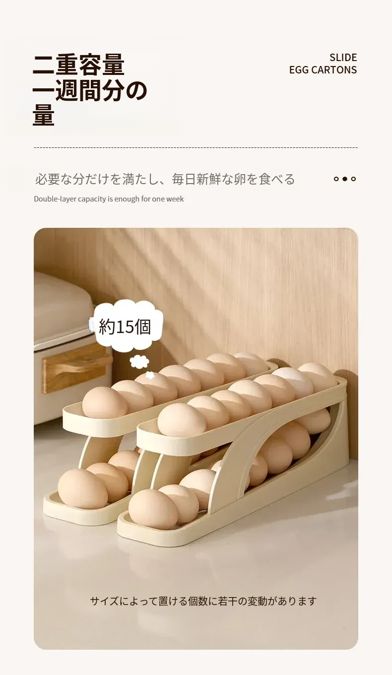 FaSoLaエッグストレージボックス|キッチン・家庭用|冷蔵庫サイドドアに最適な食品グレードの新鮮保存ボックス|転がる卵用スロープ式エッグラックで、卵をスムーズに取り出せます!