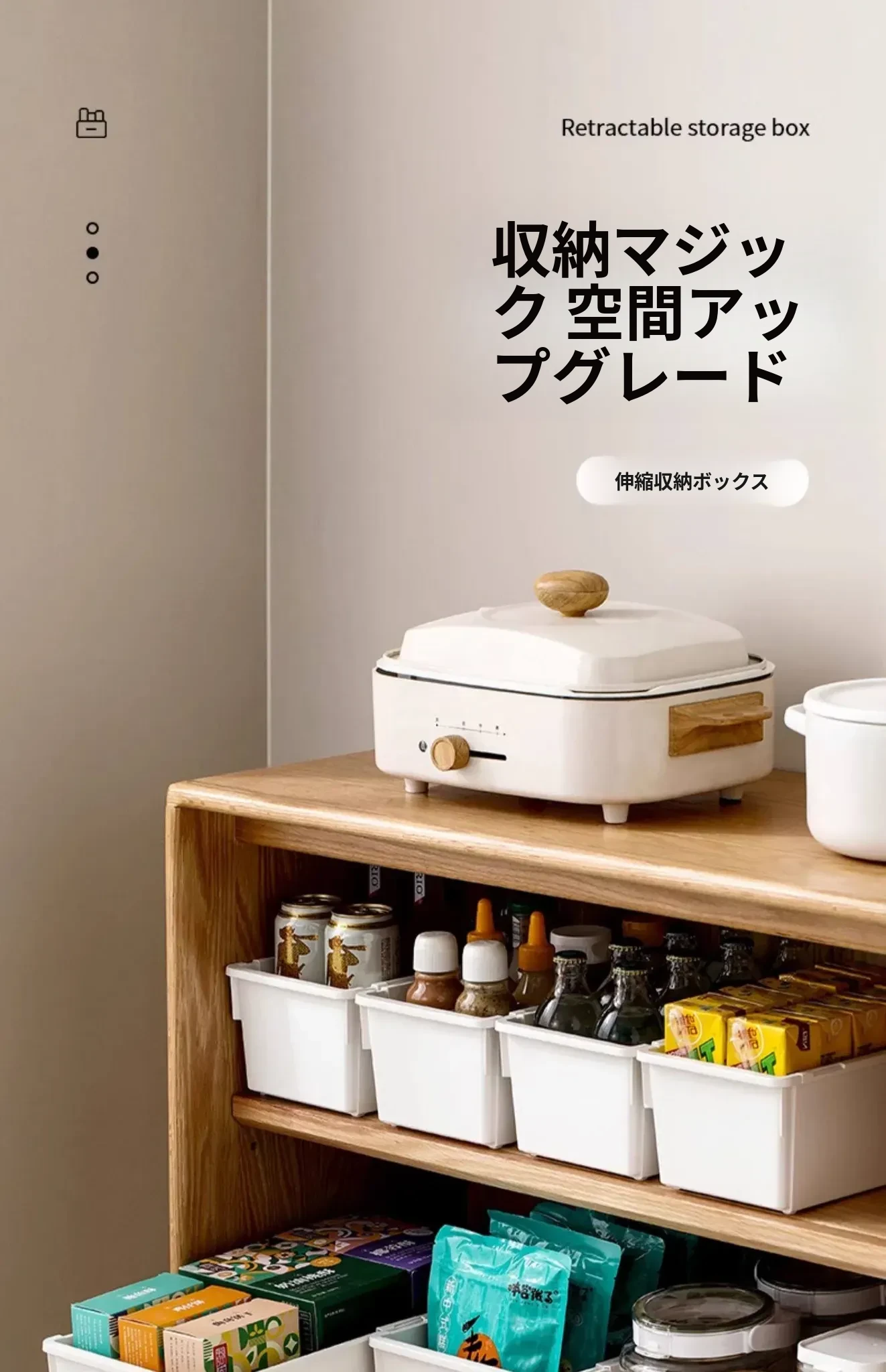 FaSoLa引き出し式伸縮デスクトップ収納ボックス - キッチンやお部屋をスッキリ整理!お菓子や小物をスマートに収納できる直角デザイン。あなたの生活空間をもっと快適に!