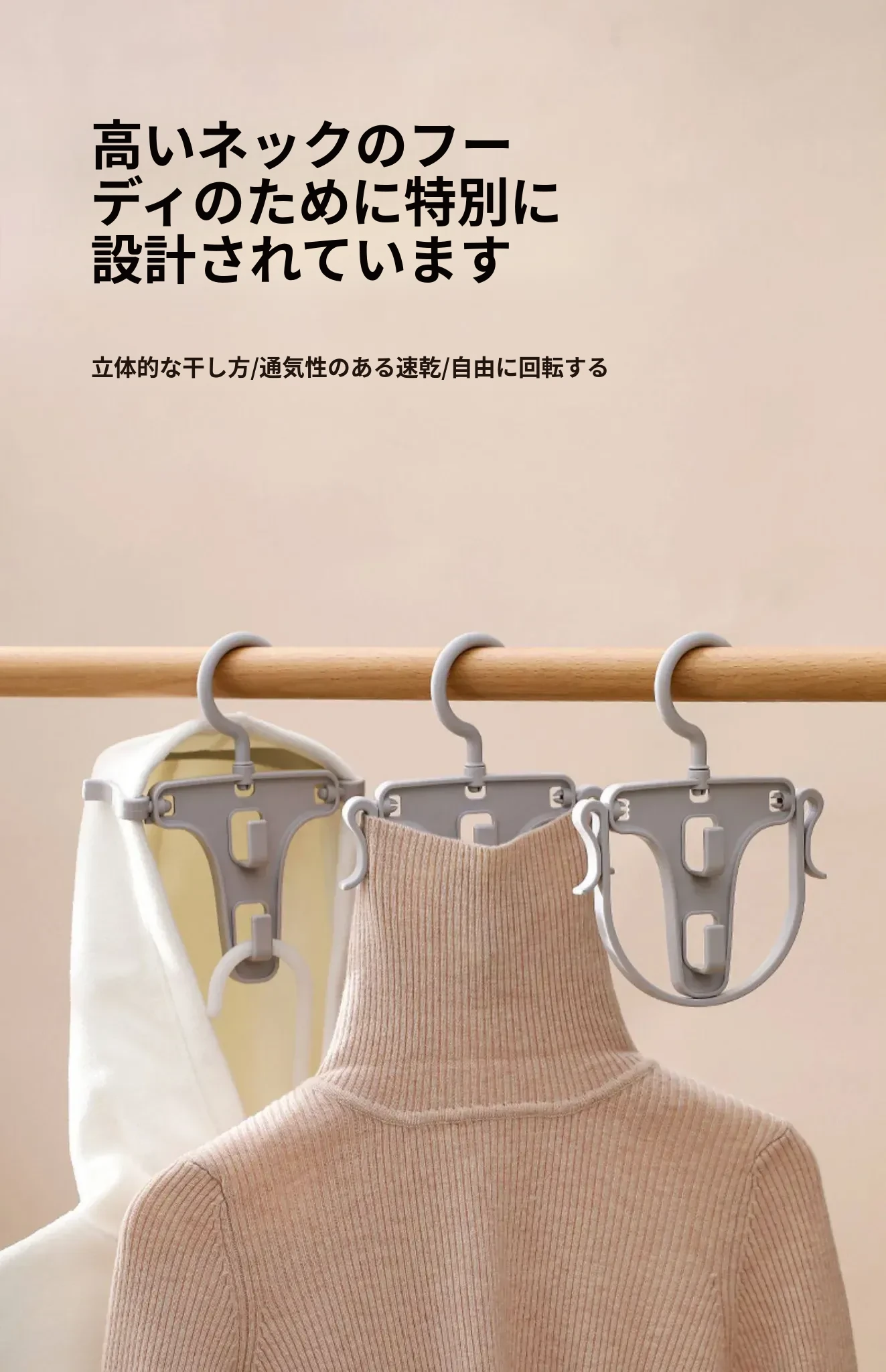 FaSoLa 折りたたみ式多機能ウェアハンガー - 高ネックセーター用、風に強いクリップ付き!衣類をしっかり支え、乾燥も簡単。あなたの衣類ケアをサポートします!