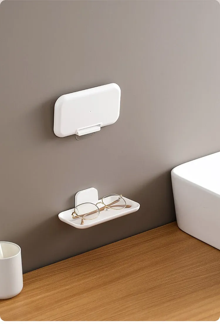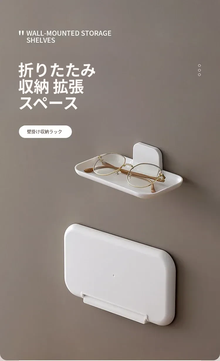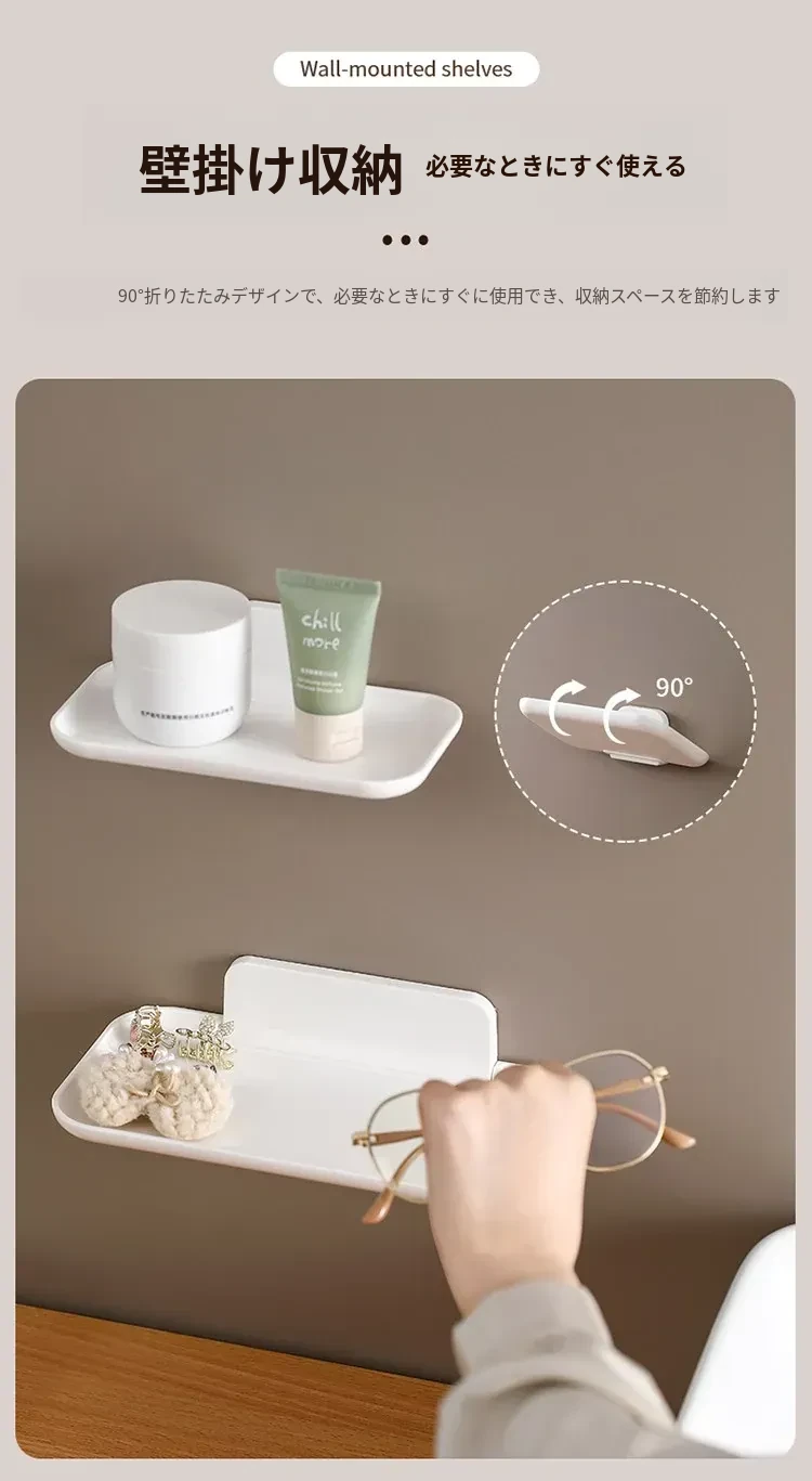 FaSoLa折りたたみ式ウォールシェルフ|浴室・トイレ・洗面台・ベッドサイドに最適!穴あけ不要のスマホ収納ラック|寮生活でも便利なスペース節約アイテム!