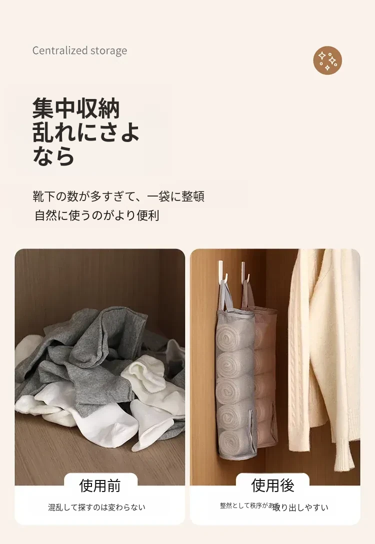 FaSoLaソックス収納袋 懸垂式下着・パンツ用壁掛けネットバッグ 寮用収納の必需品!整理整頓が簡単で、スペースを有効活用できる便利アイテム!