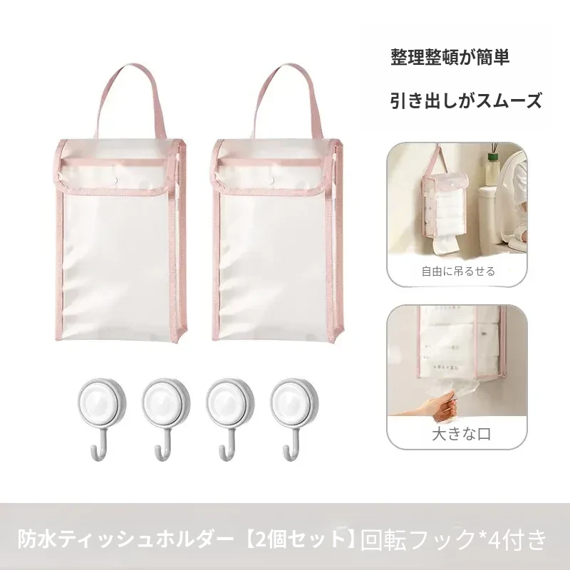 防水ティッシュホルダー【2個セット】は回転フック【4個】付き