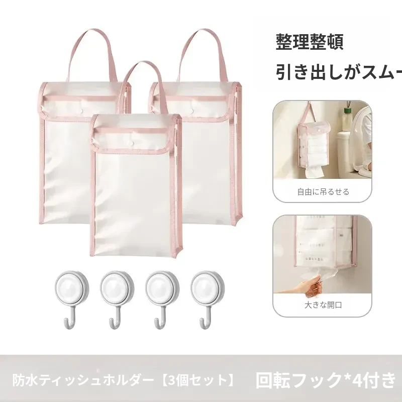 防水ティッシュホルダー【3個セット】はティッシュ/ロールペーパーが収納可能