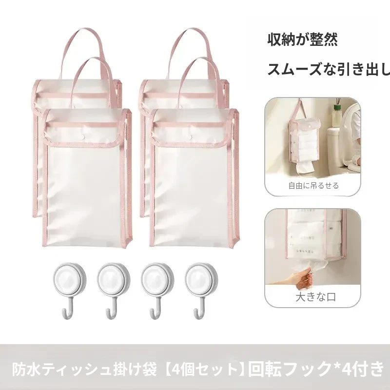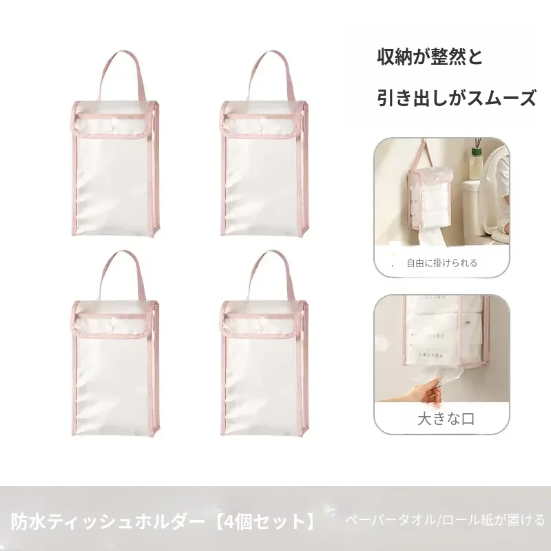 防水ティッシュホルダー【4個セット】はティッシュ/ロールペーパーが収納可能