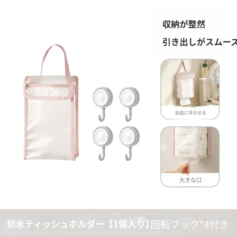 防水ティッシュホルダー【1個セット】は回転フック【4個】付き