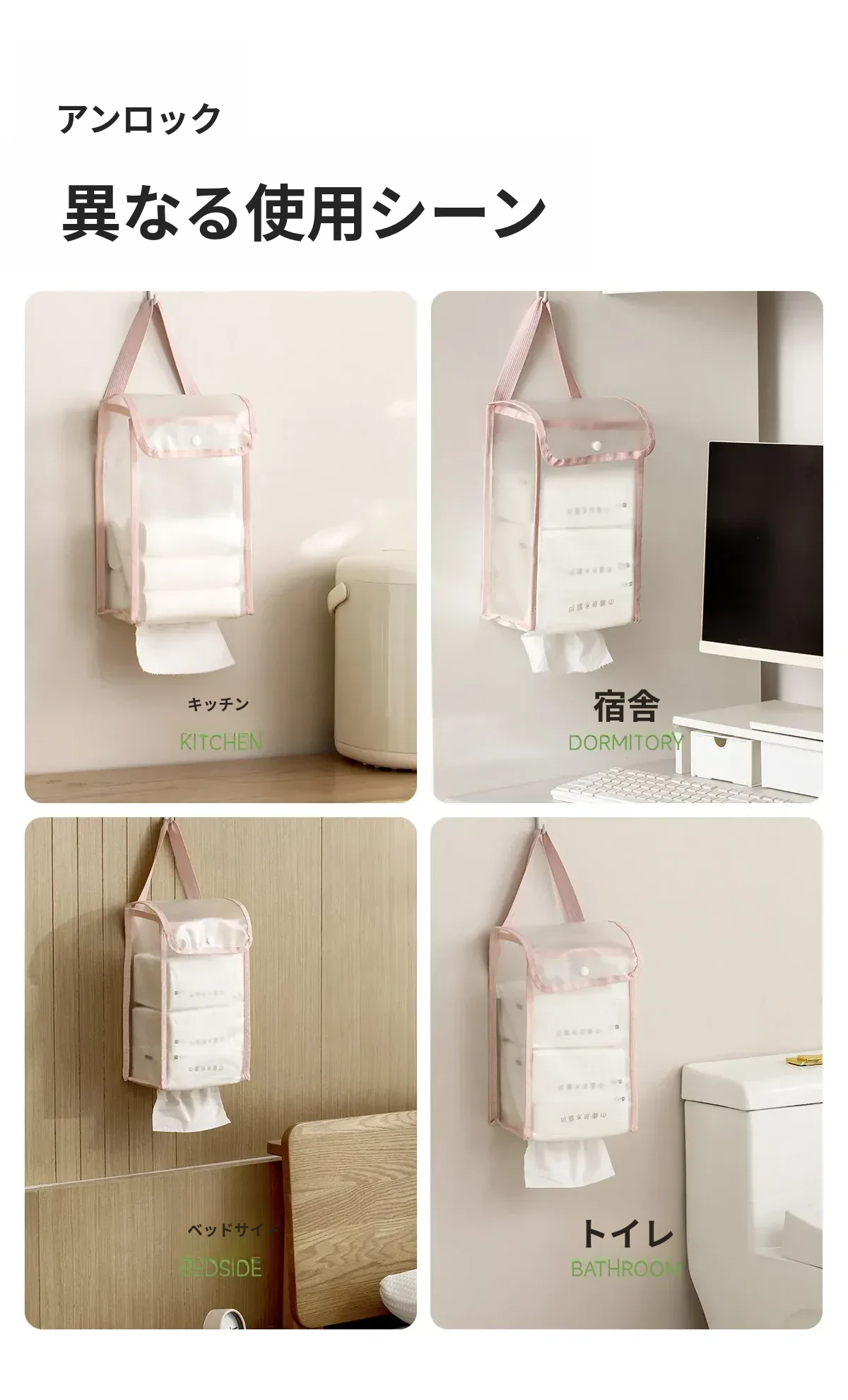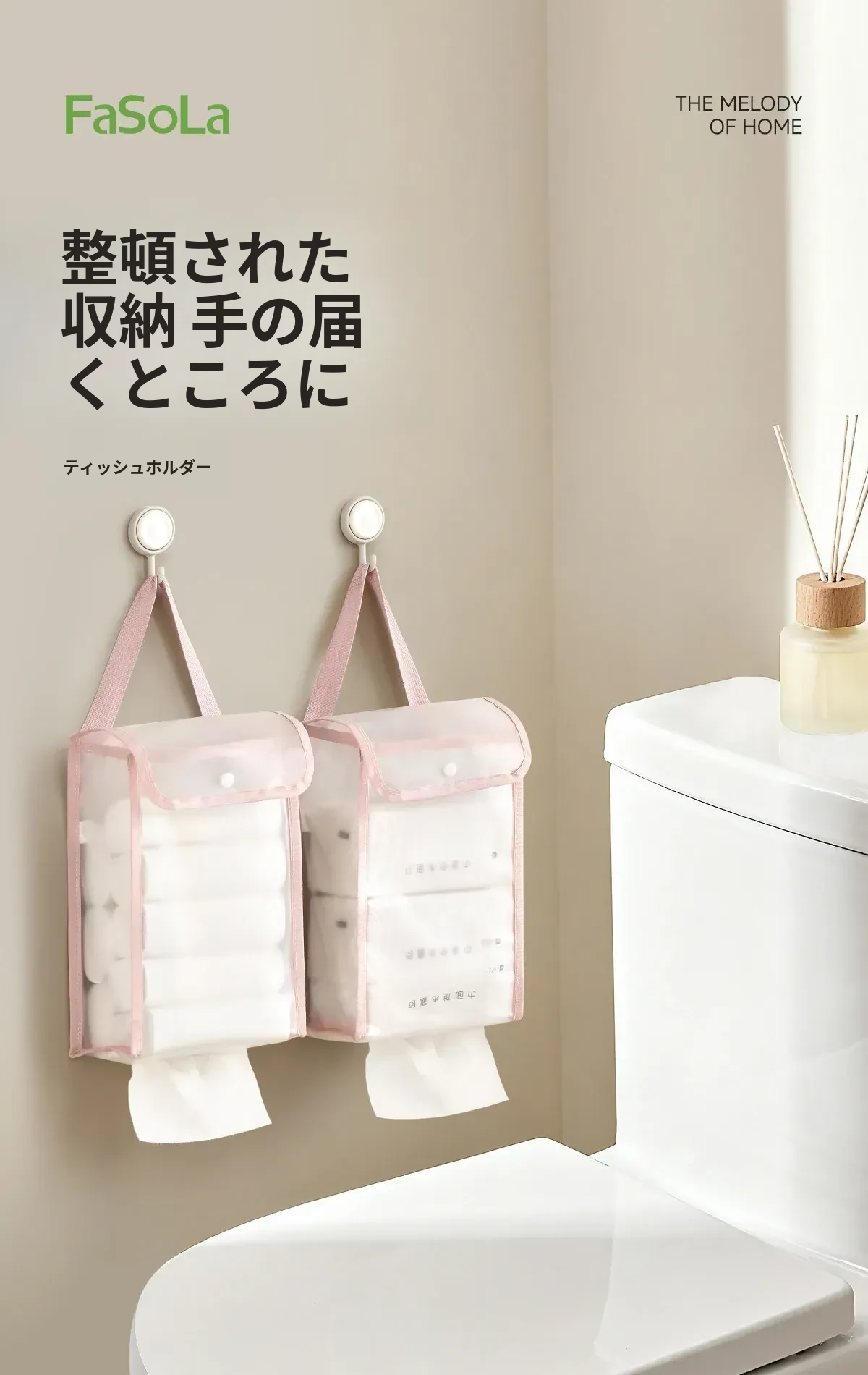 FaSoLa 吊り下げティッシュ収納ポケット - 家庭用ティッシュホルダー、トイレやベッドサイドに最適!おしゃれで便利なデザインで、すっきりとした空間を実現します。