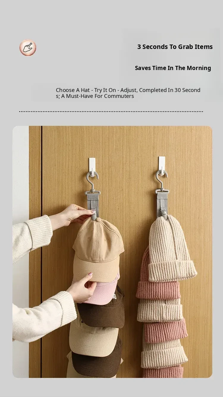 FaSoLa Hat Organizer - No Drill Door Hook for Home Use, Perfect for Storing Caps, Baseball Hats, and More. Ideal for Dorms and Closets!
