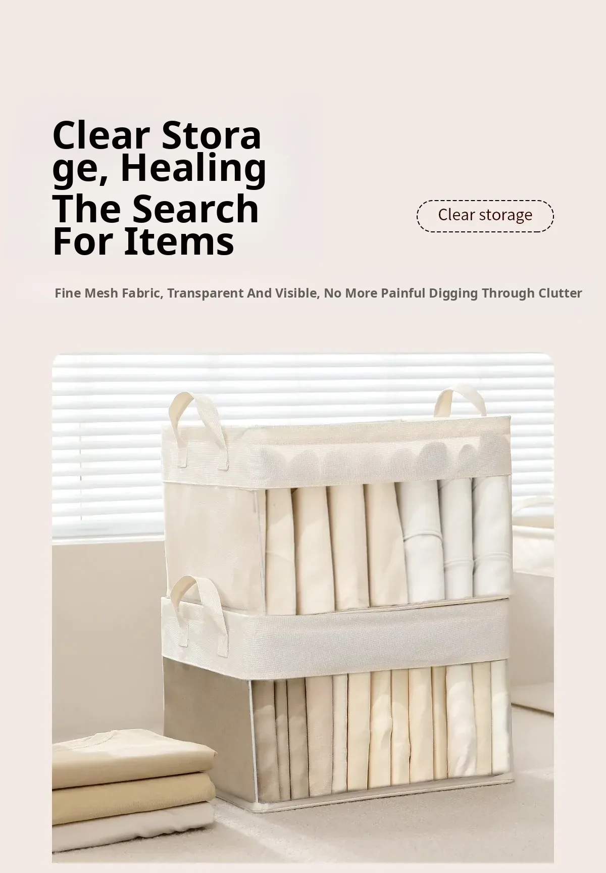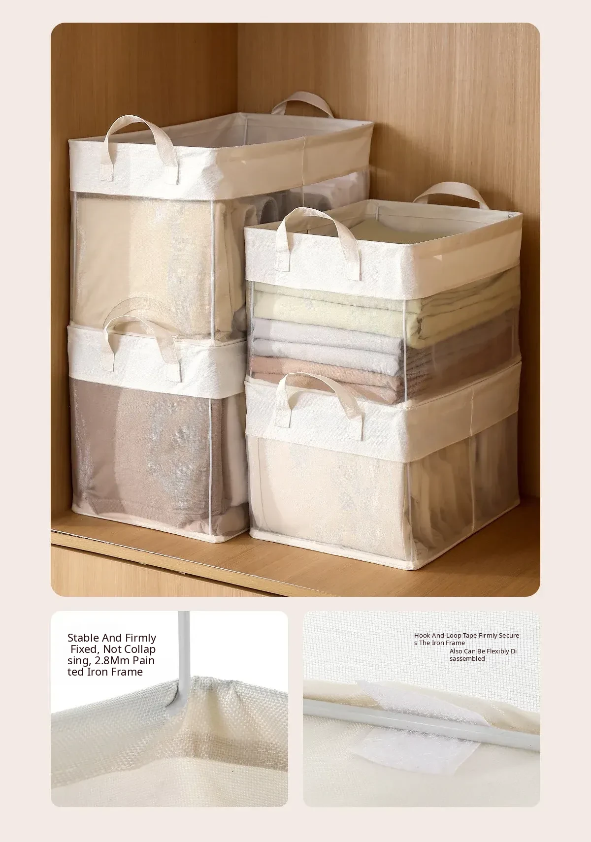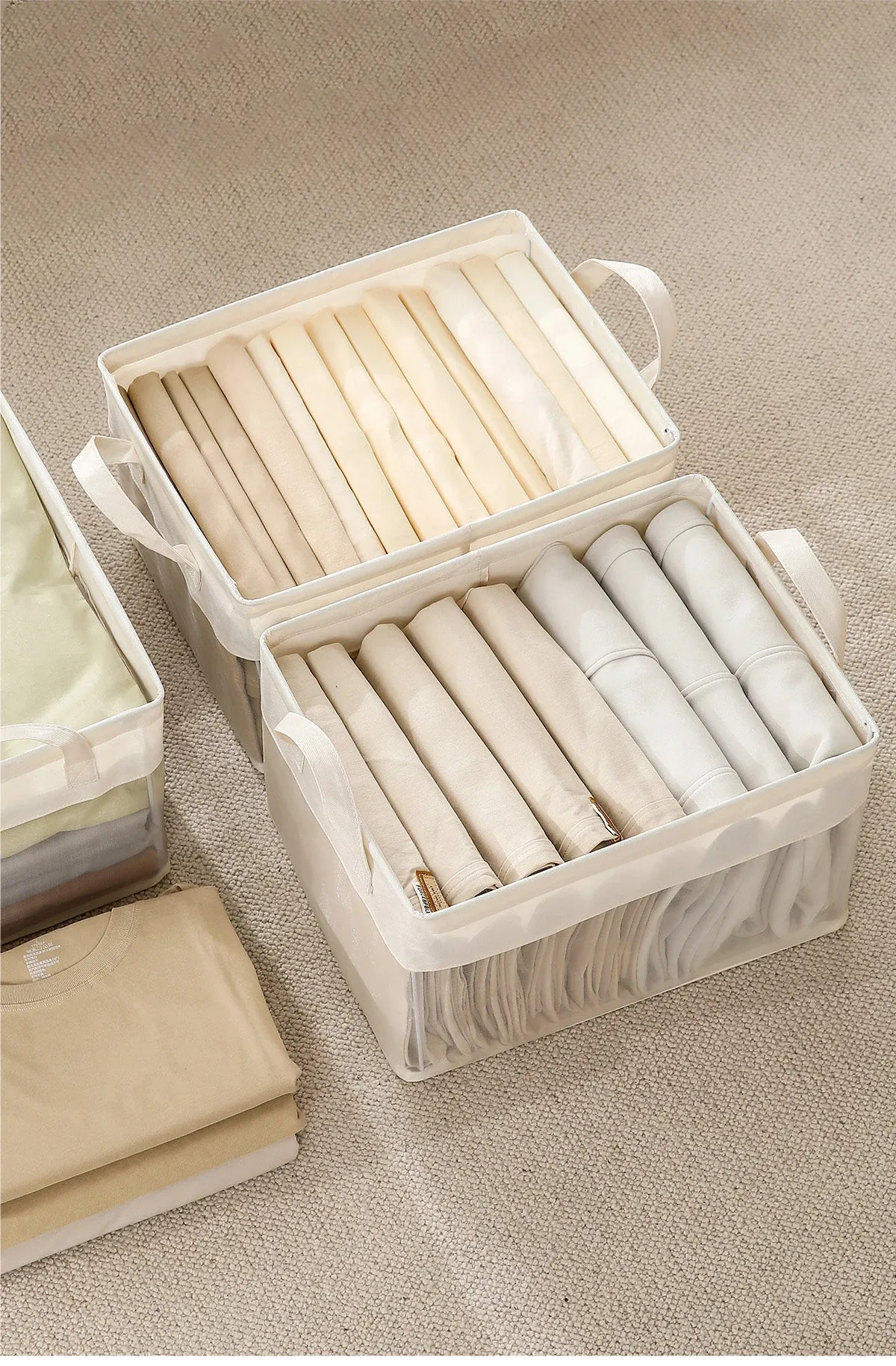 FaSoLa Large Capacity Foldable Transparent Fabric Clothing Storage Box - Stylish Organizer for Home Use, Perfect for Closet and Room Organization
