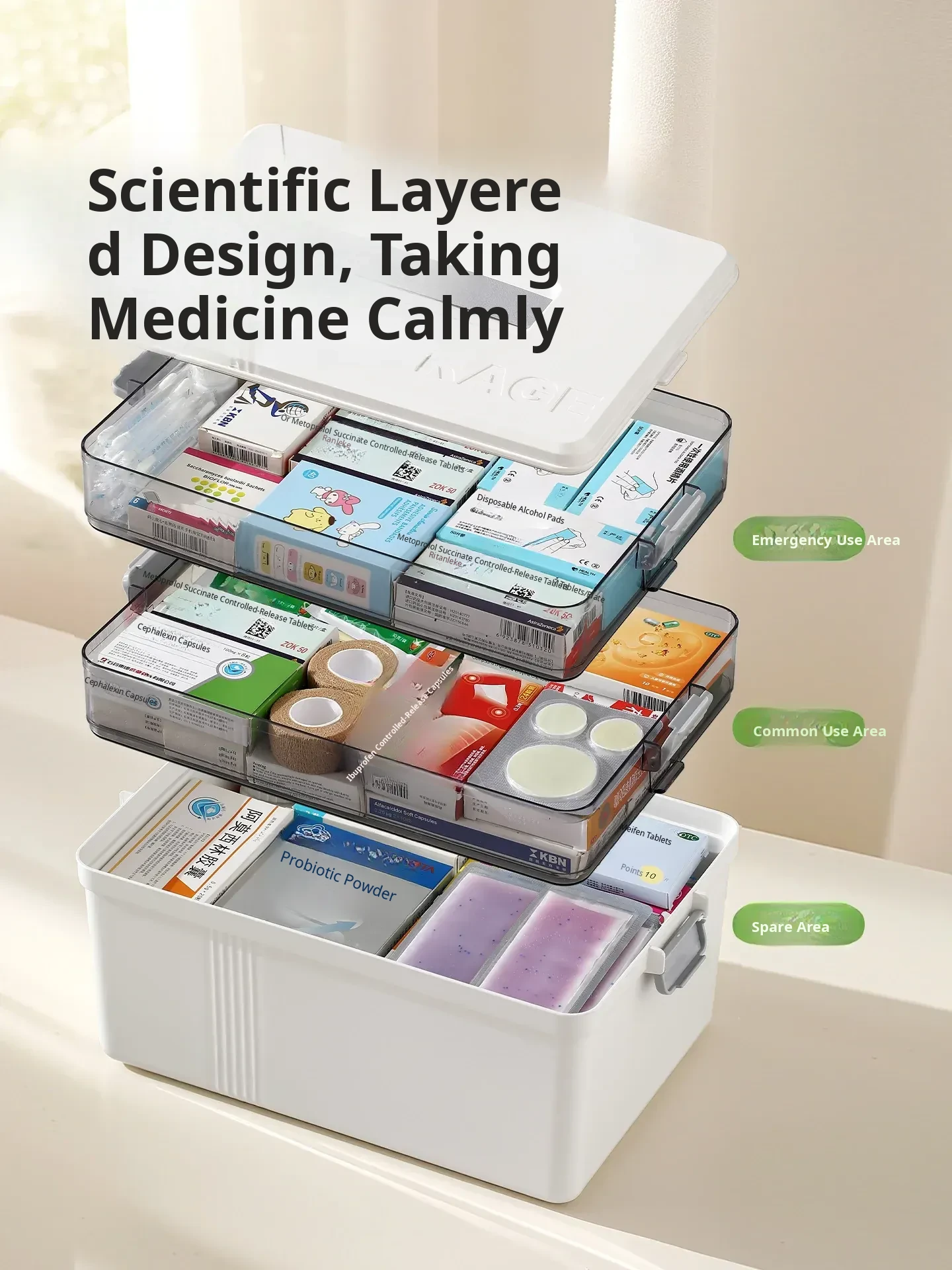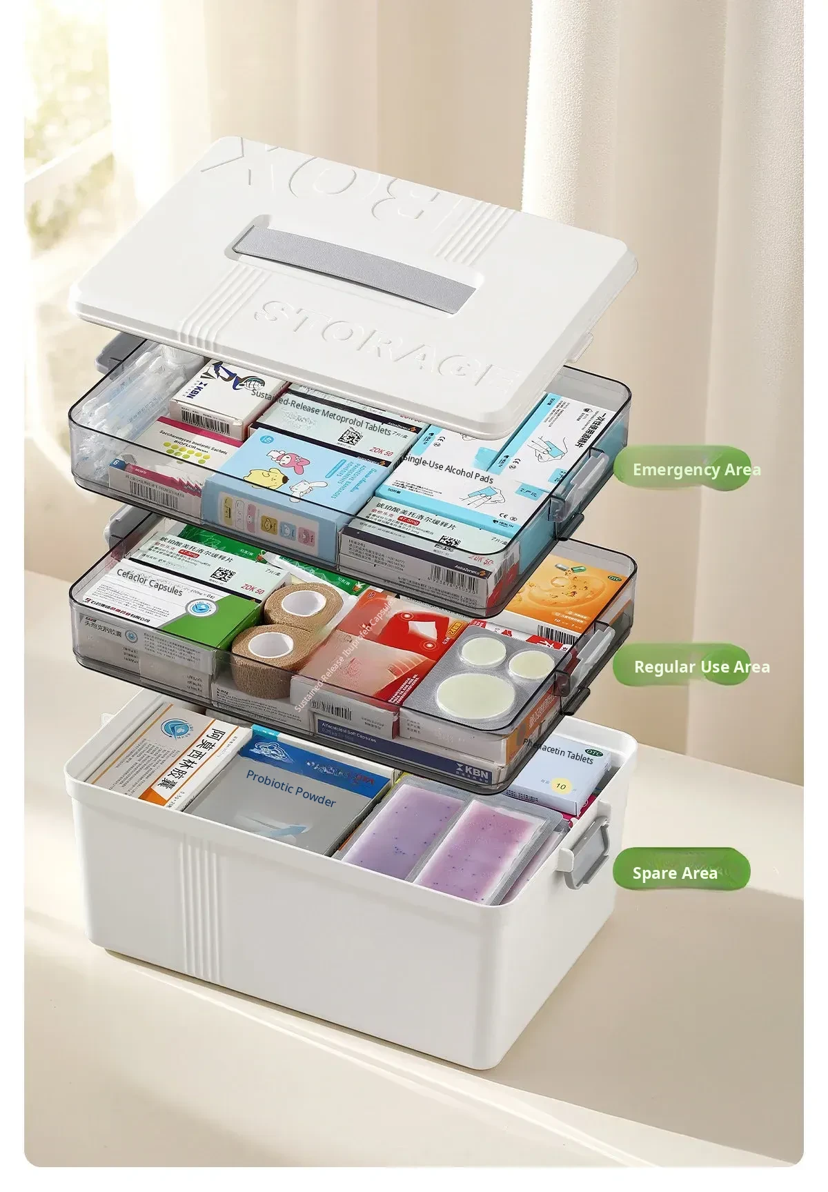 FaSoLa Large Capacity Home Medicine Cabinet - Multi-Layer Organizer for Family - Extra-Large Medicine Box for Efficient Medication Storage and Classification