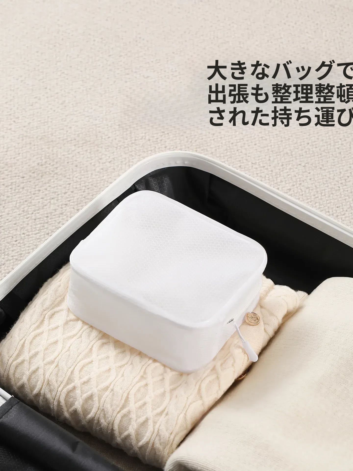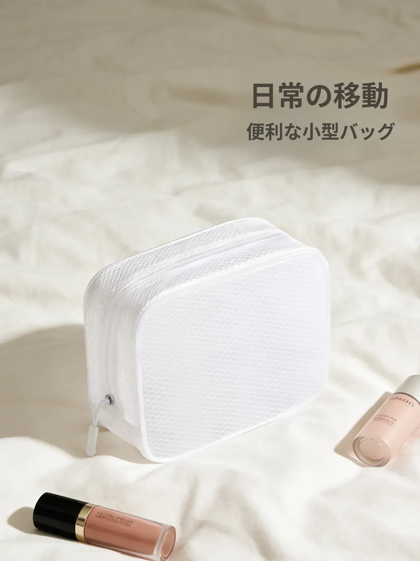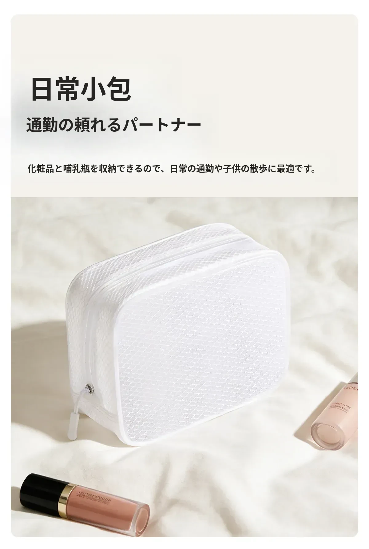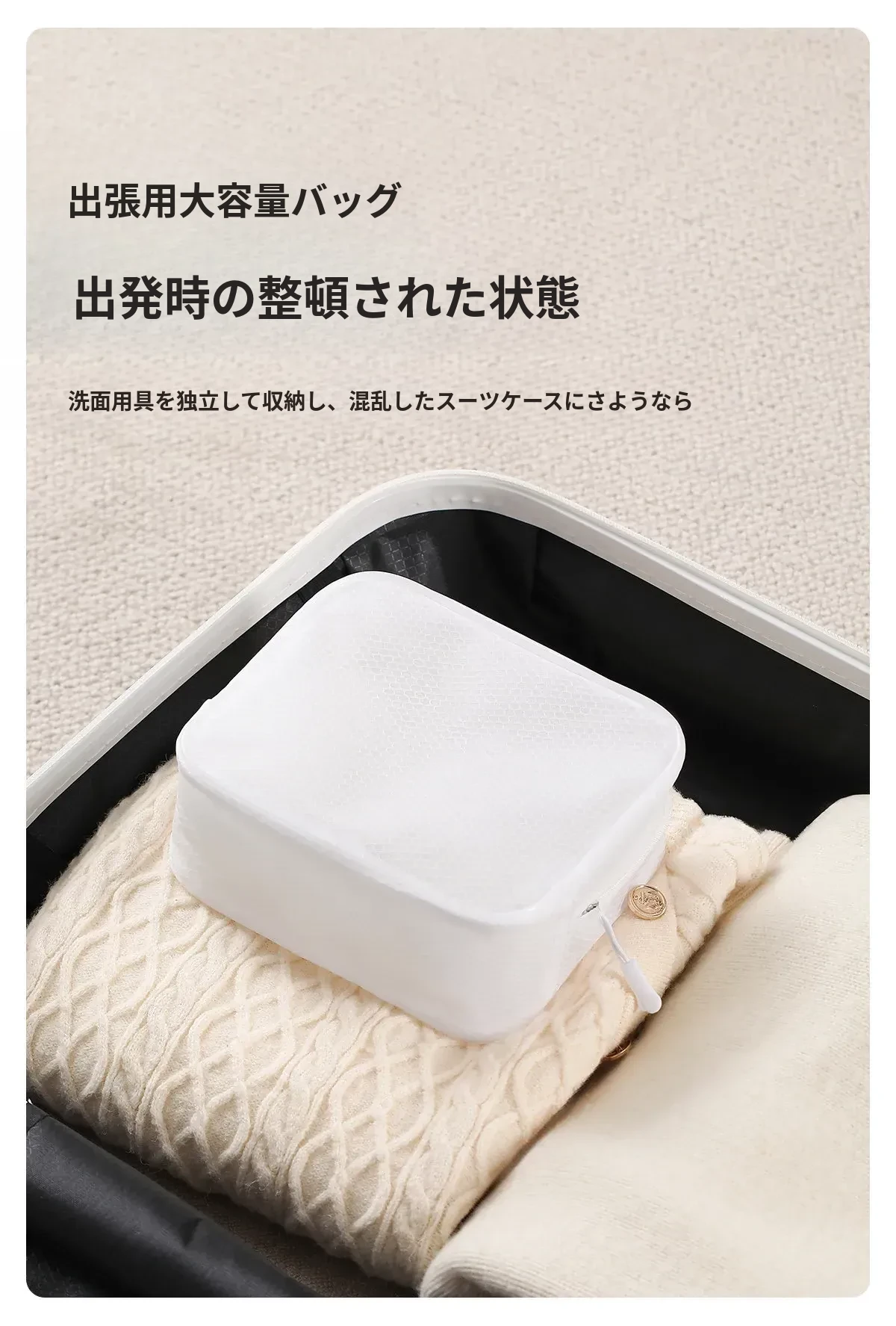 白色-防水洗漱包【小号】持ち運び用洗面具/旅先でのスマートさ