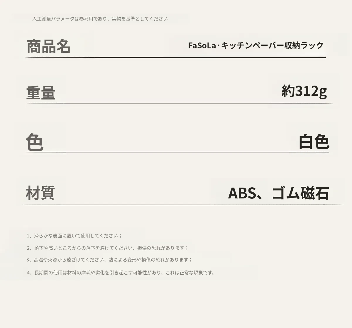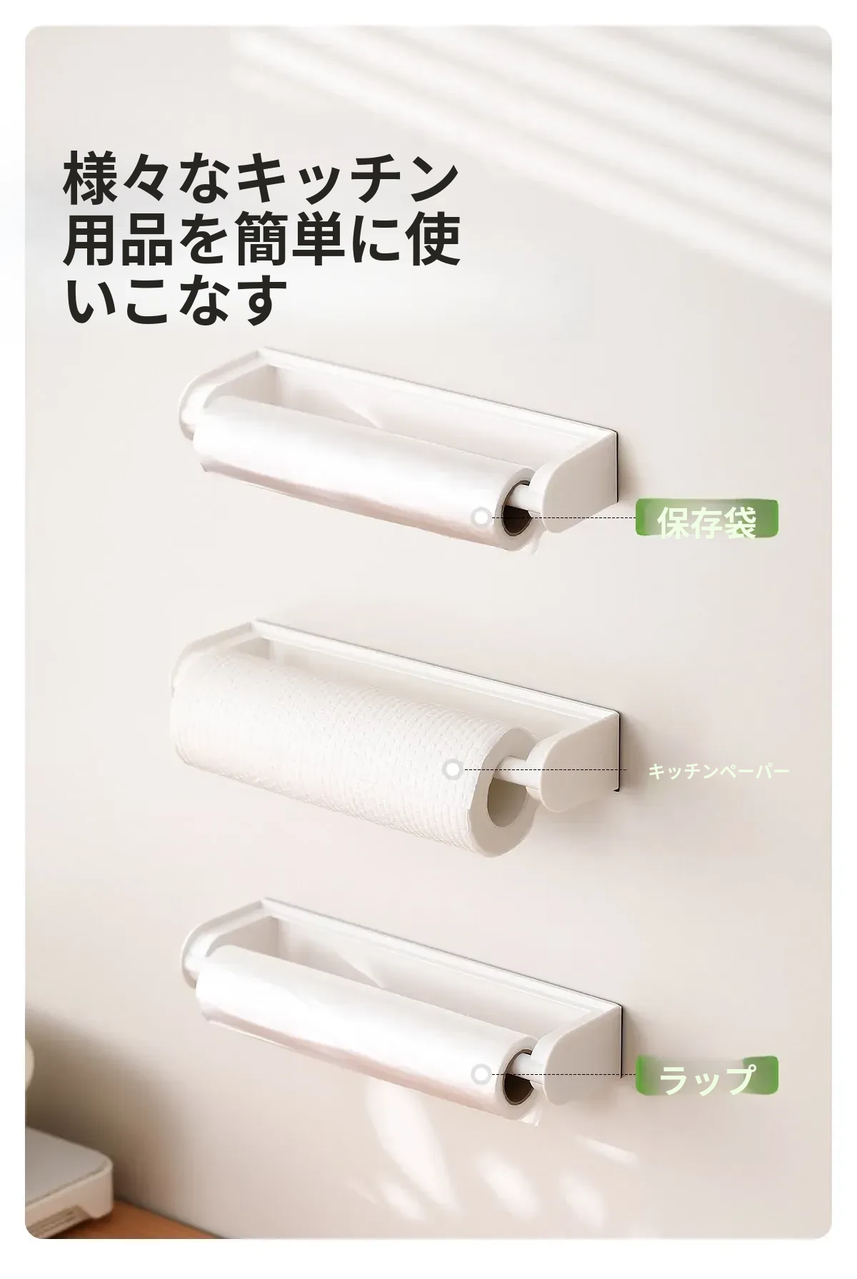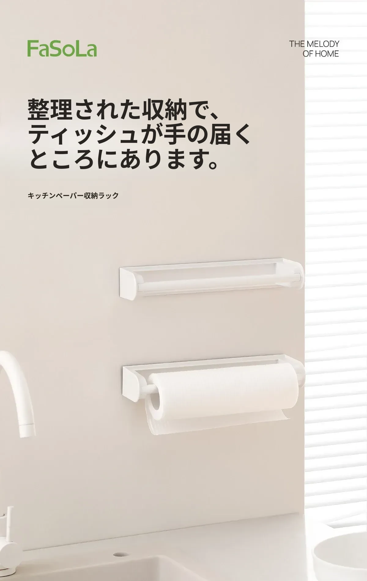 FaSoLaマグネットキッチンペーパータオルホルダー - 穴あけ不要で簡単取り付け!使い捨てクロスやラップもスッキリ収納できる便利なアイテム。キッチンがもっとスッキリ!