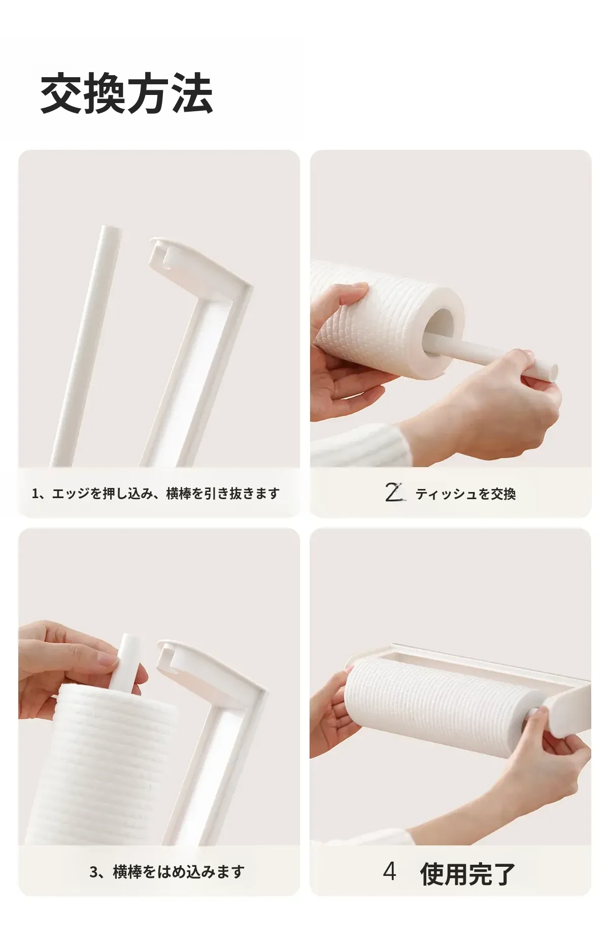 キッチンペーパー収納ラック【ホワイト】背面マグネット/すぐに使える