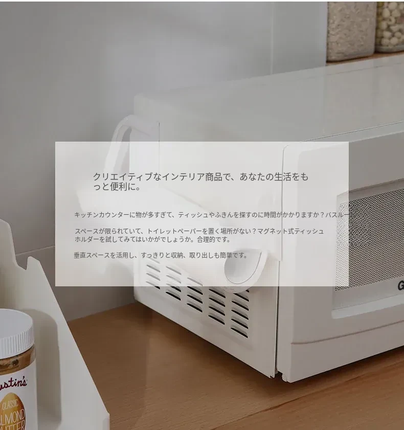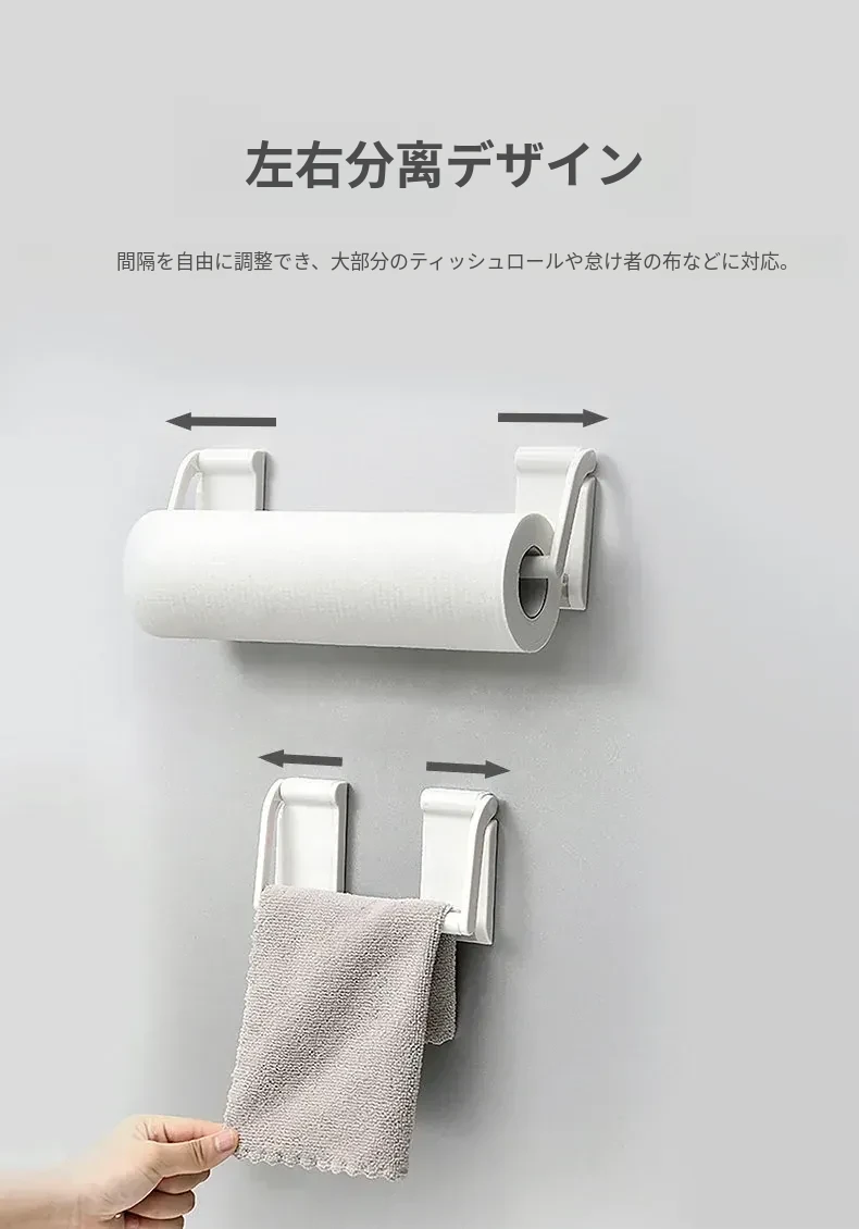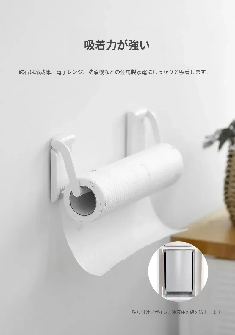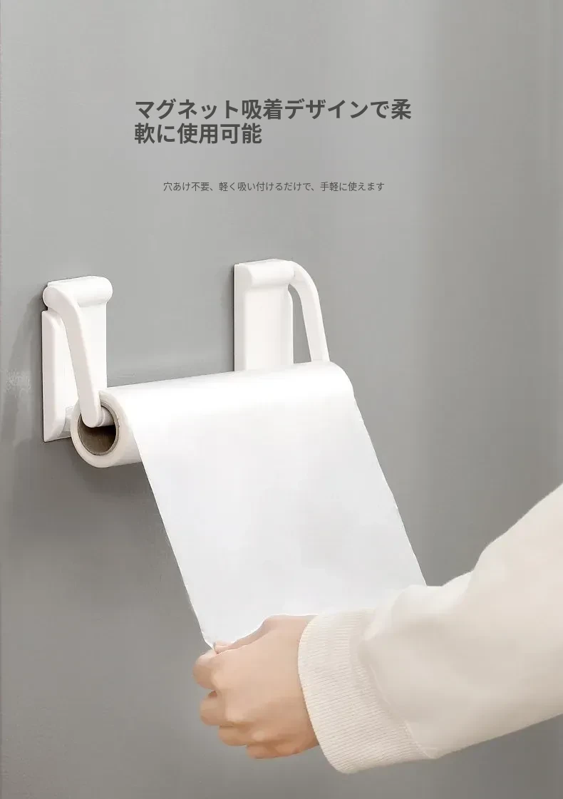 FaSoLaマグネット式ティッシュホルダー 冷蔵庫横取り付け不要の収納ラック サランラップ&トイレットペーパー掛けに最適!キッチンをスッキリ整理整頓!