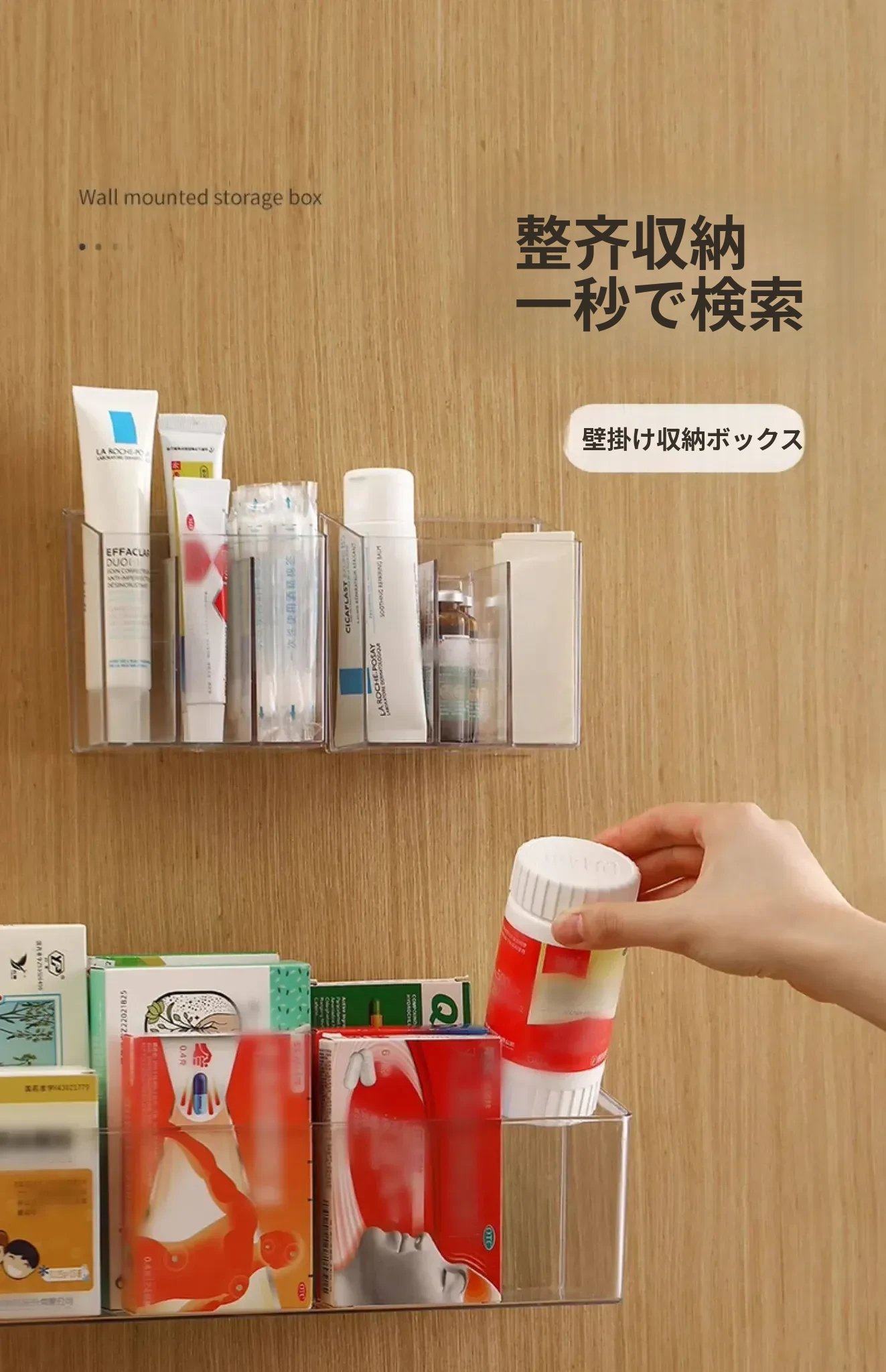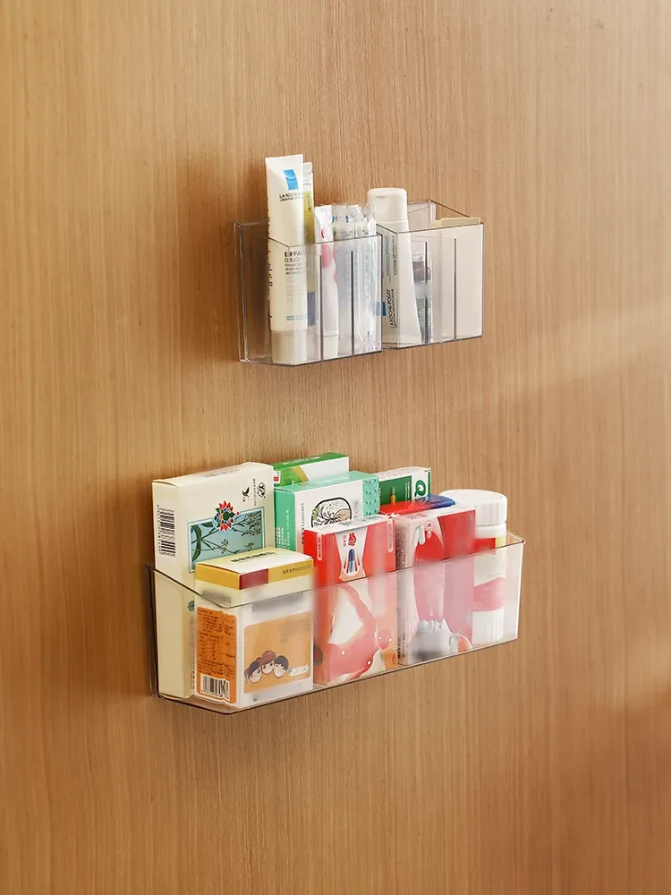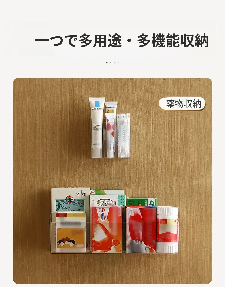 FaSoLa 薬品収納ボックス 家庭用仕切り付き 常備薬キャビネット 壁掛け式で穴あけ不要 薬品ボックス収納ラックでスッキリ整理!