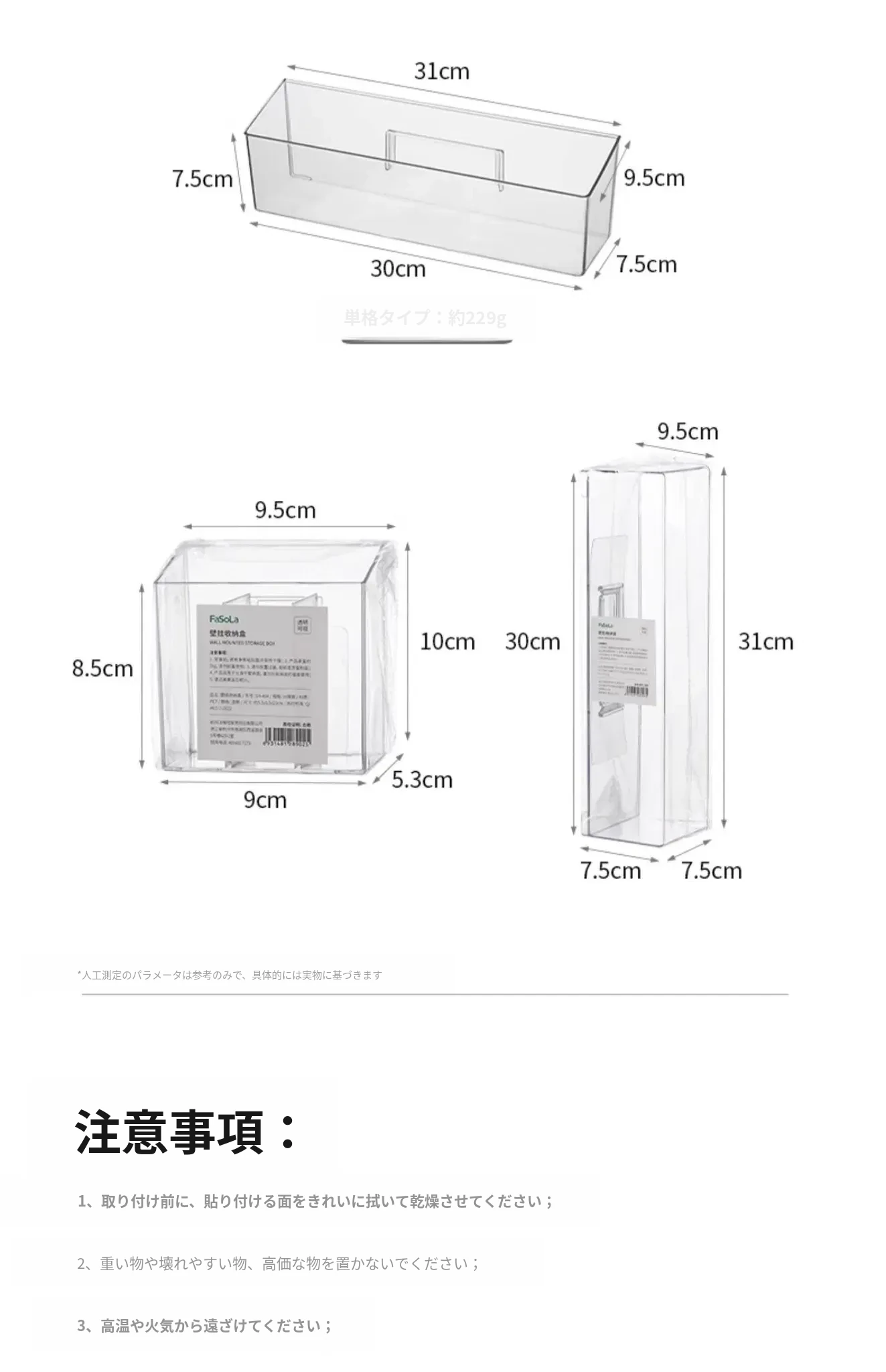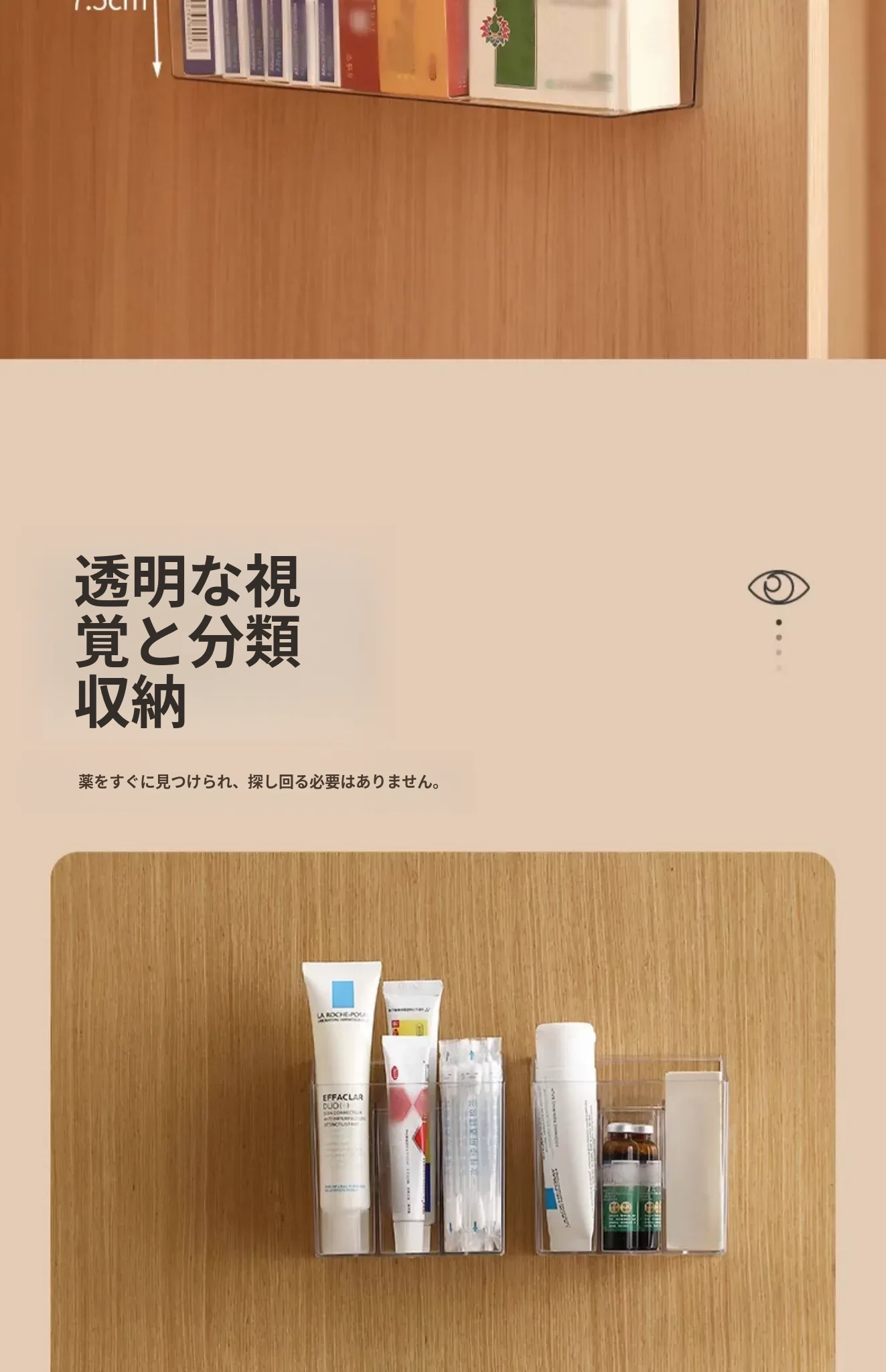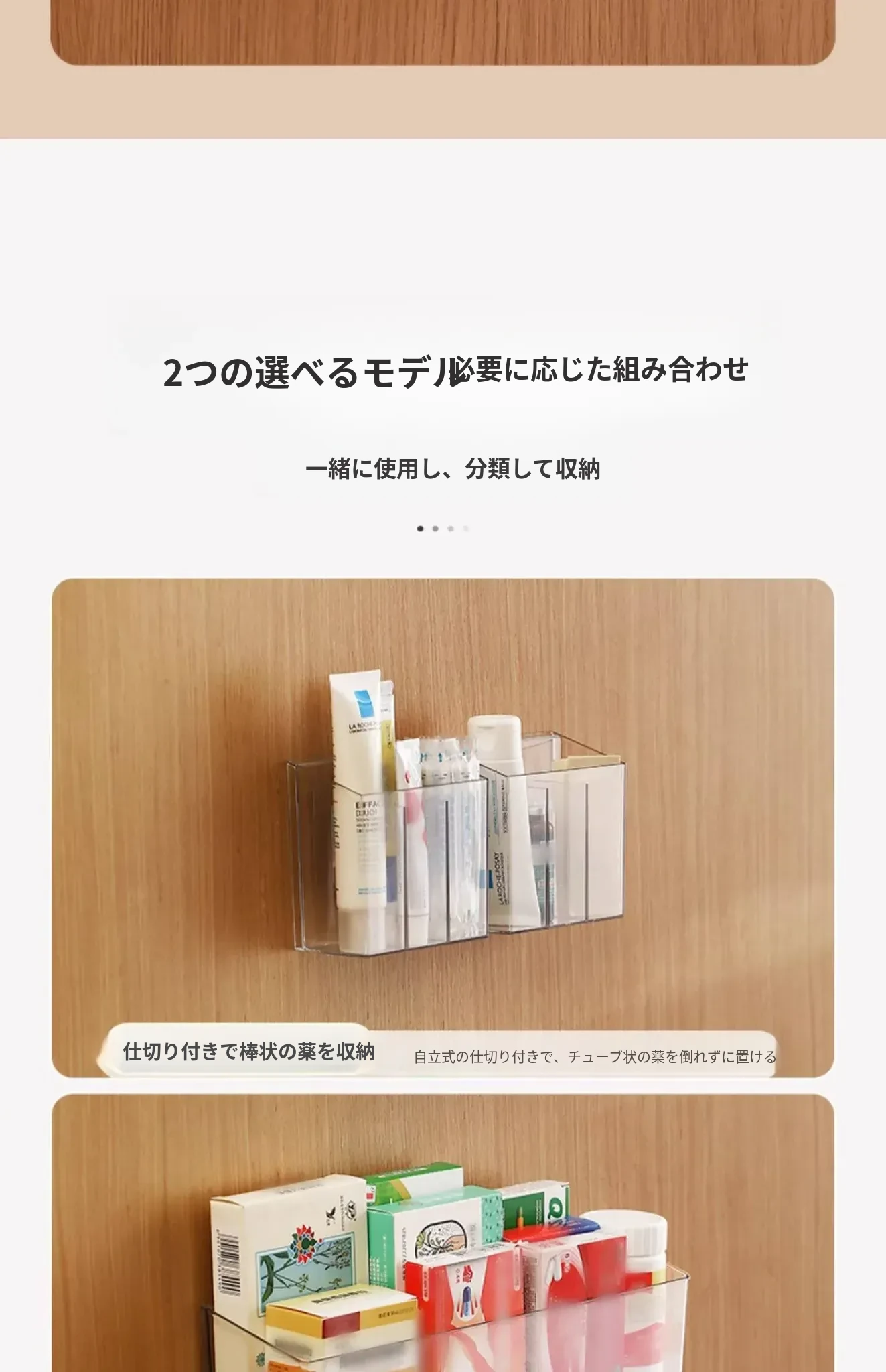 FaSoLa 薬品収納ボックス 家庭用仕切り付き 常備薬キャビネット 壁掛け式で穴あけ不要 薬品ボックス収納ラックでスッキリ整理!