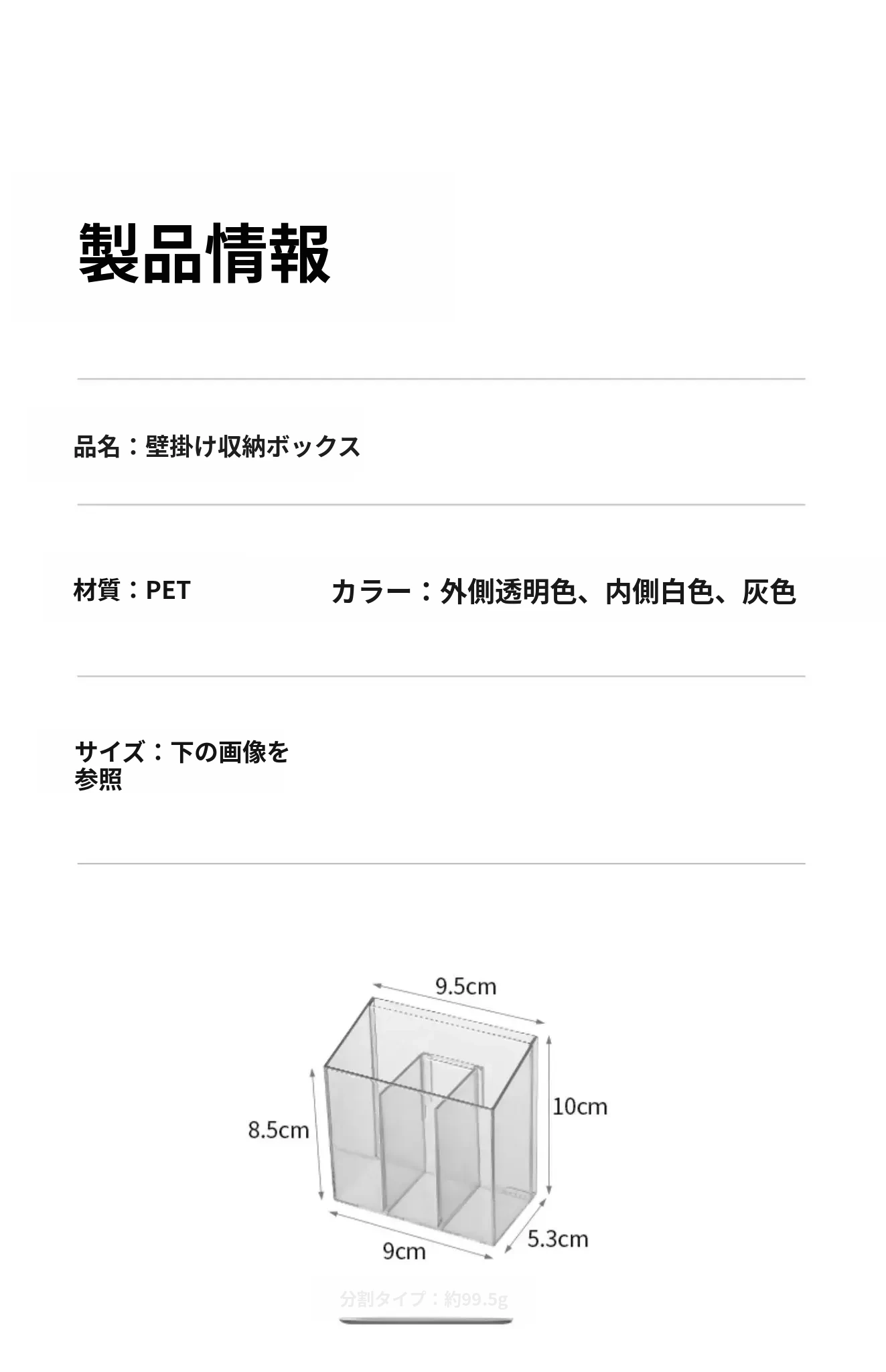 壁掛け収納ボックス仕切りタイプ