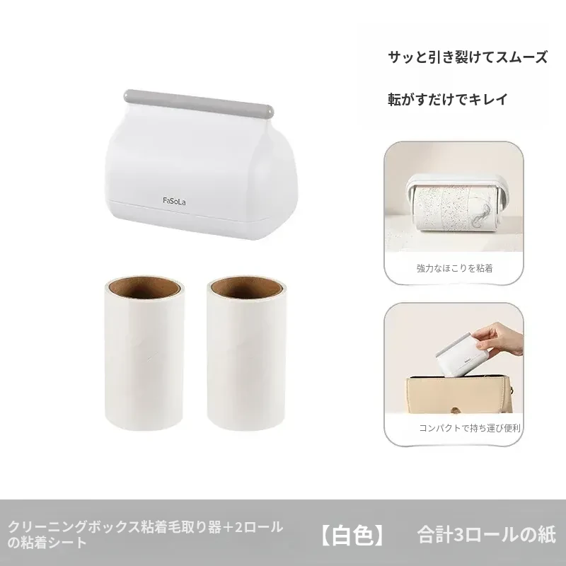 クリーンボックス粘着ローラー+2巻のロールペーパー【白色】合計3巻のペーパー*自由に使用