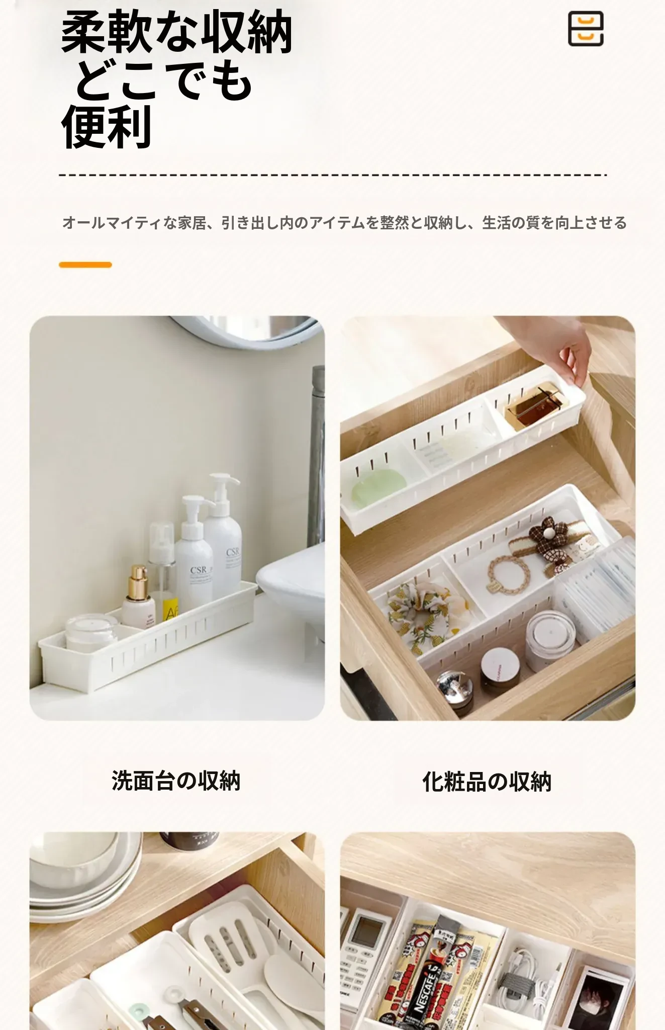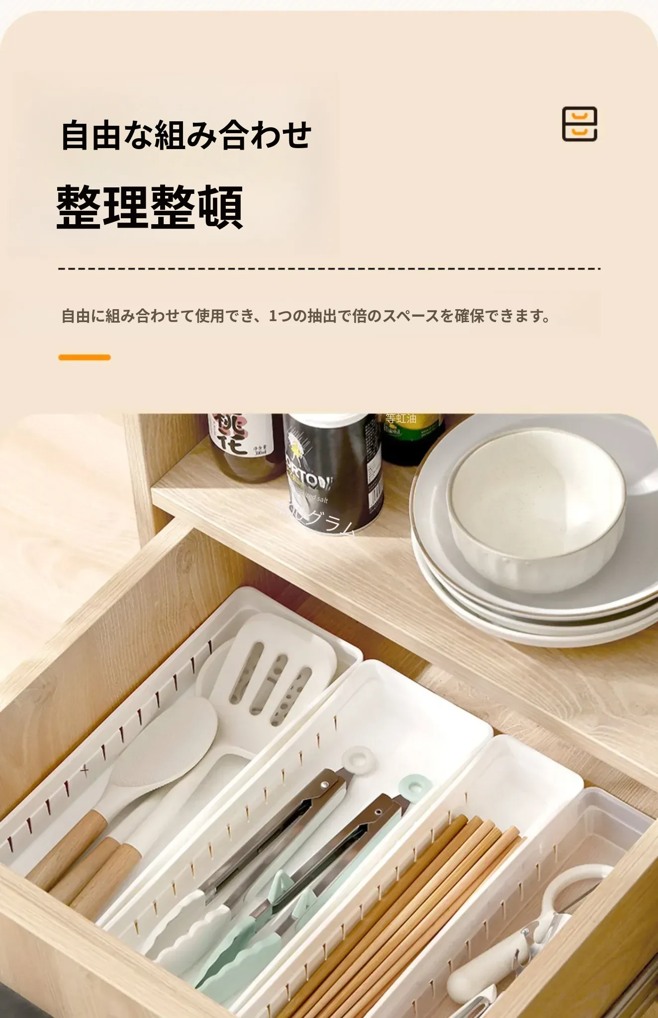 FaSoLa引き出し用仕切り収納ボックス - 多機能分類整理ボックス!キッチンや食器、雑貨の収納に最適で、スペースを有効活用。すっきりとした整理整頓を実現します!