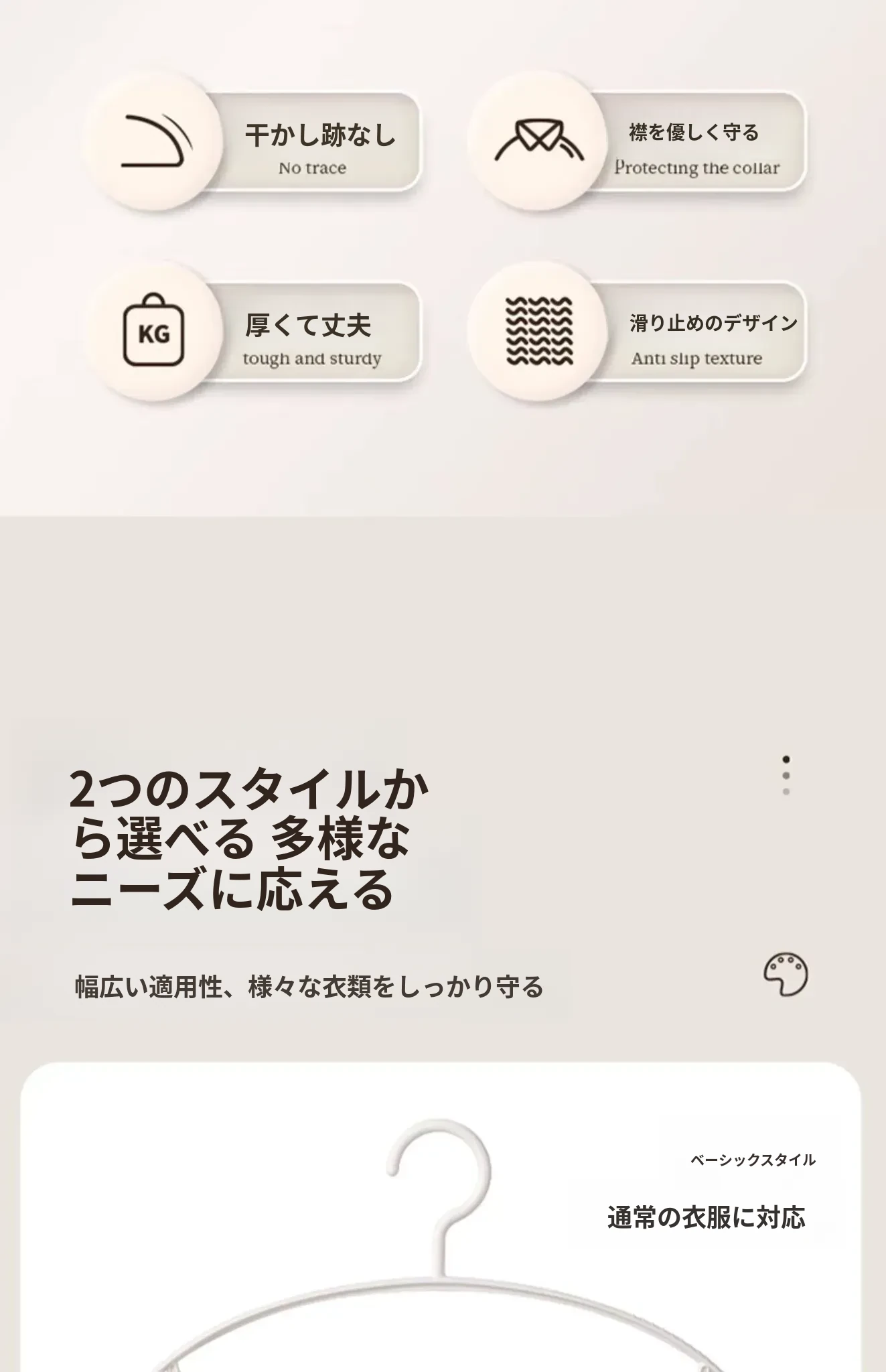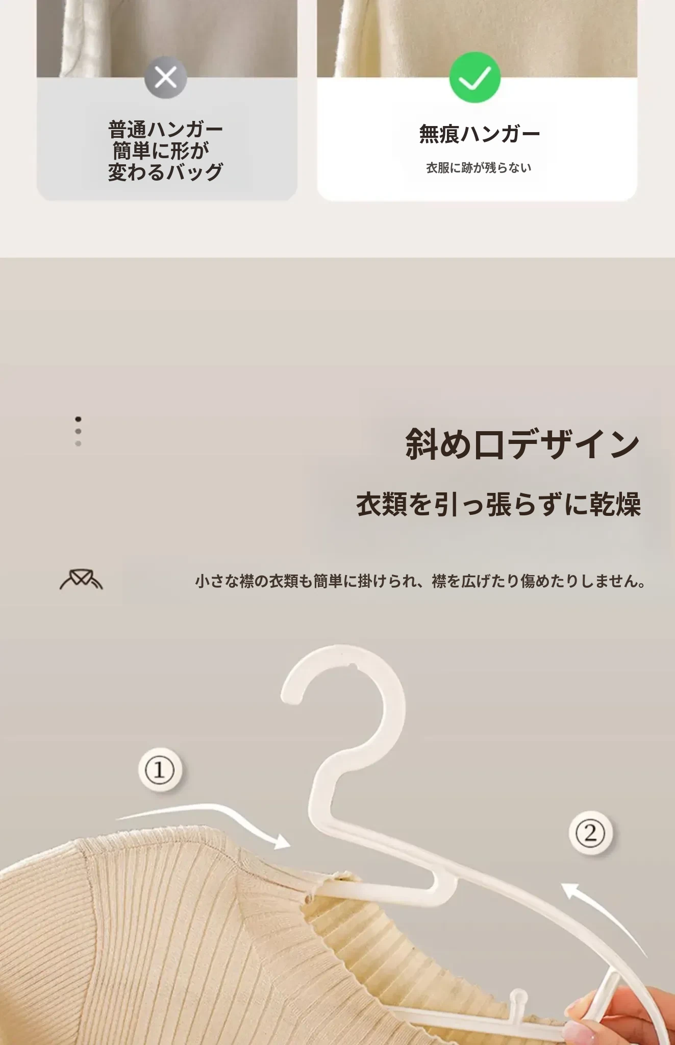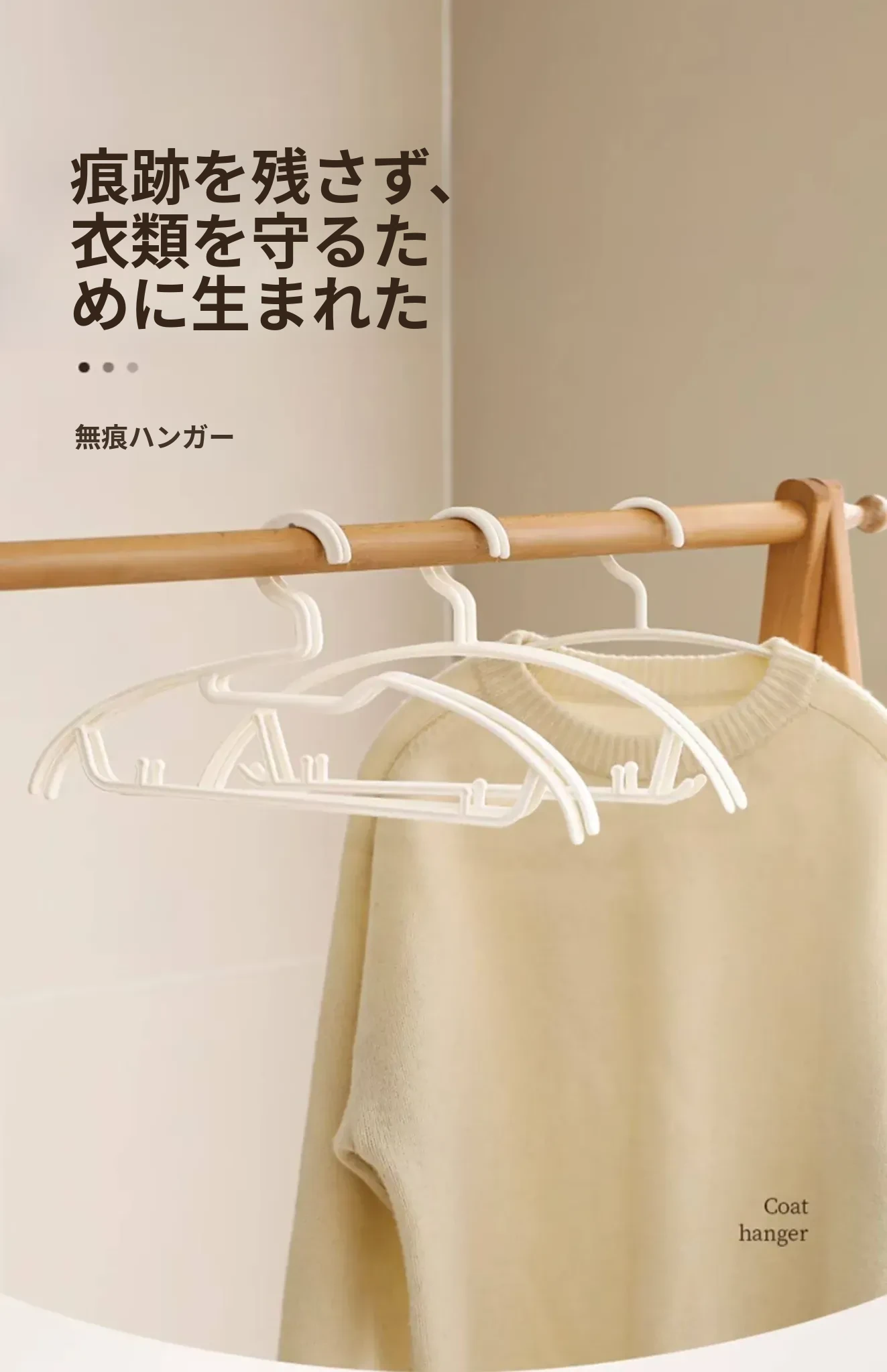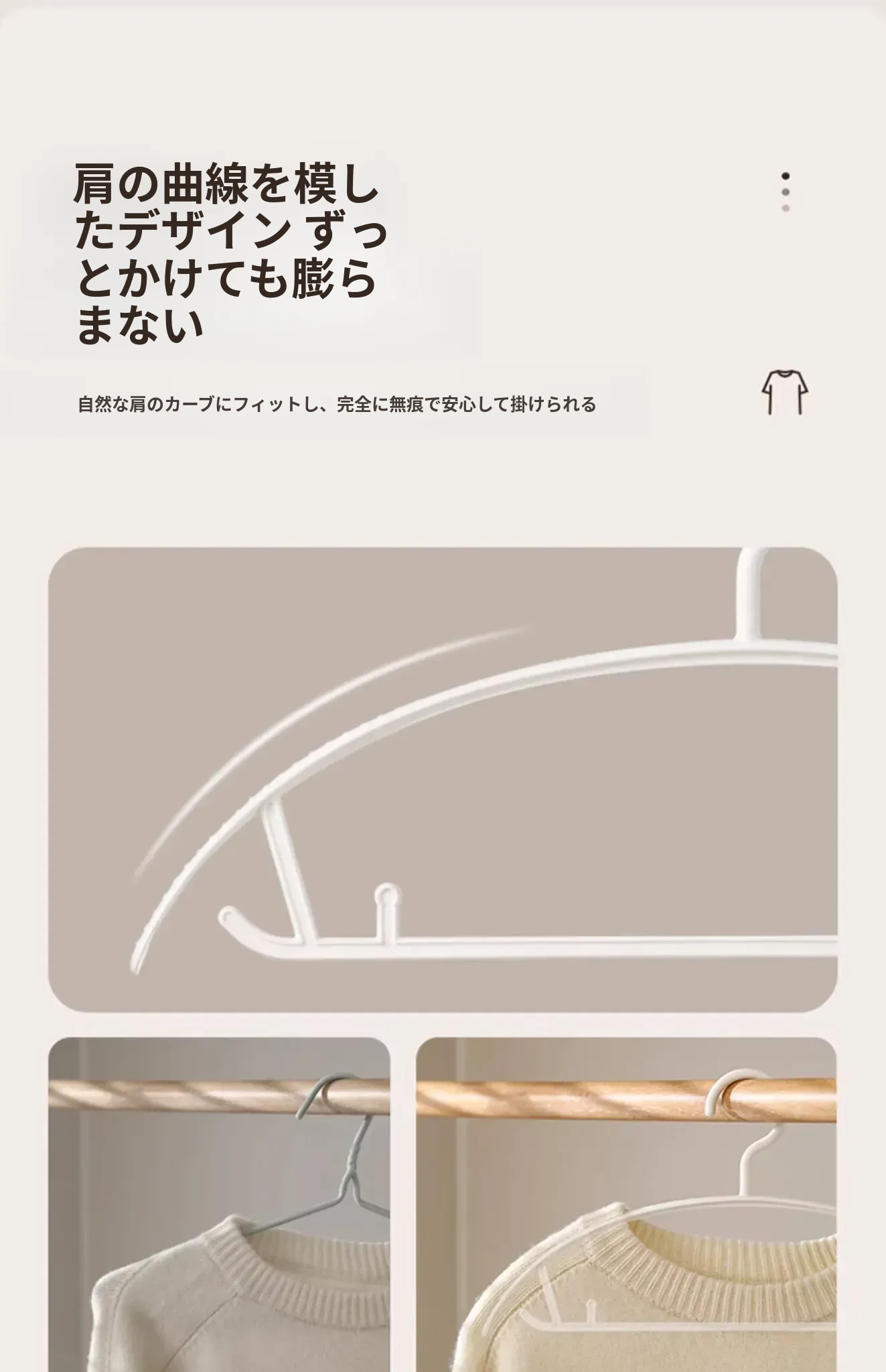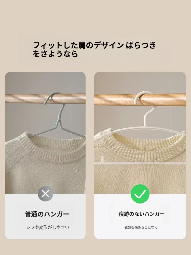 FaSoLa無痕ハンガー - 肩のラインを守る!滑り止めデザインで衣類をしっかり支え、家庭用の洗濯やクローゼット収納に最適です。幅広肩支えで型崩れを防ぎ、安心してお使いいただけます。