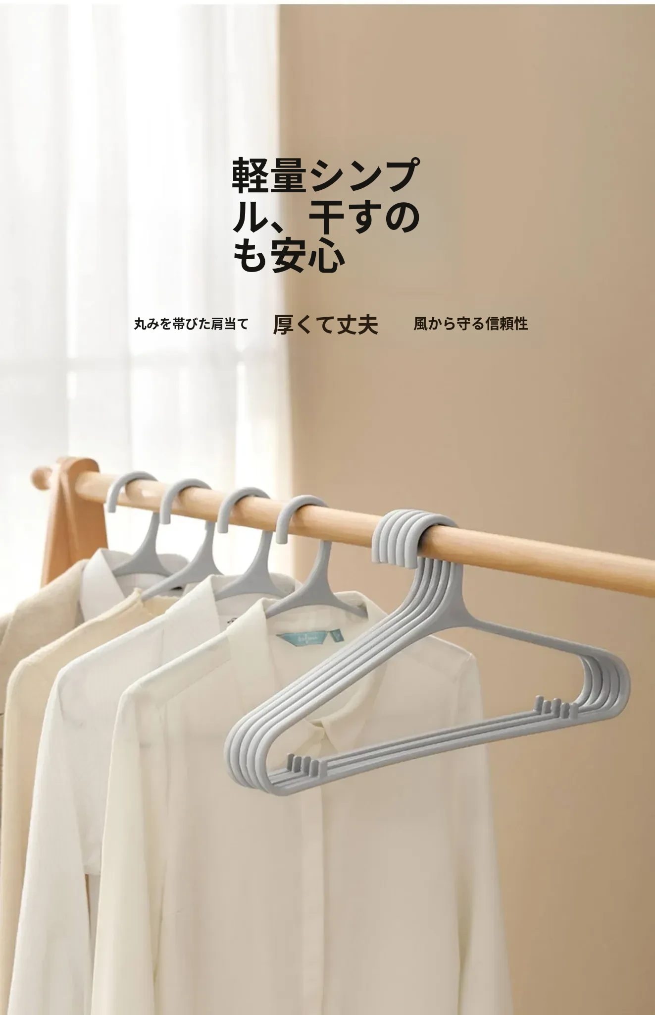 FaSoLa 無痕衣架 - おしゃれで実用的な家用ハンガー!寝室やバルコニーに最適、滑り止めデザインで安心の干し物体験。学生寮にもぴったりな衣類収納を実現!