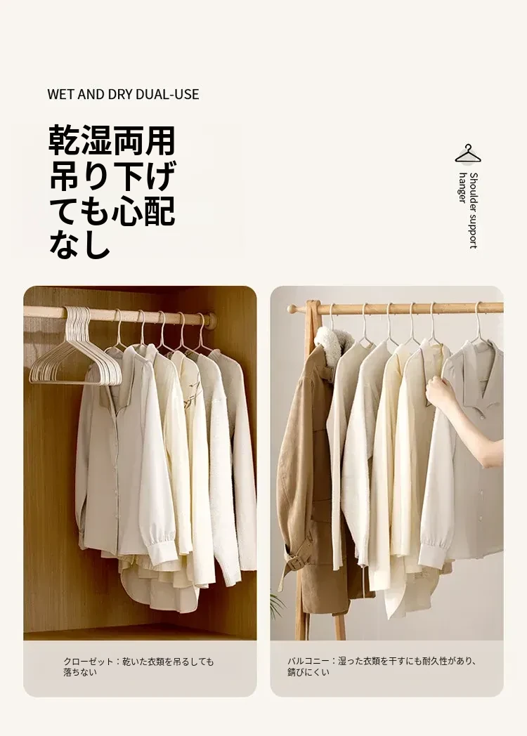 FaSoLa無痕ハンガー - 肩の角を守る家用衣類掛け、滑り止め設計で安心!学生寮にも最適な衣類干し用ハンガー。快適な収納を実現し、シワを防ぎます!