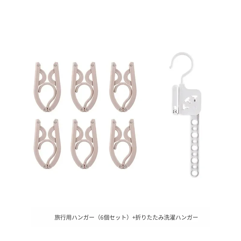 旅行用ハンガー(6枚入)+折りたたみ式物干し竿