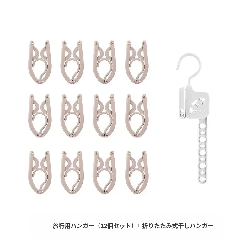 旅行用ハンガー(12枚入)+折りたたみ式物干し竿