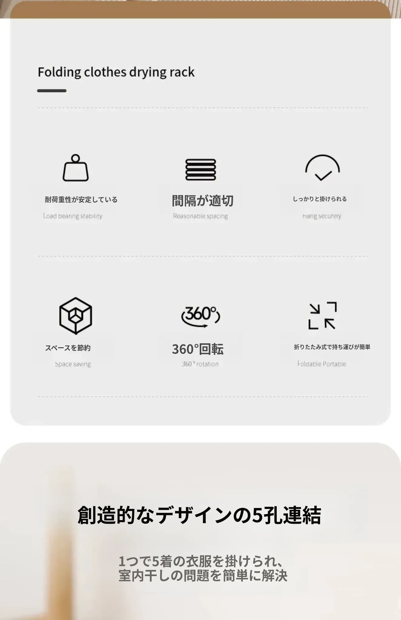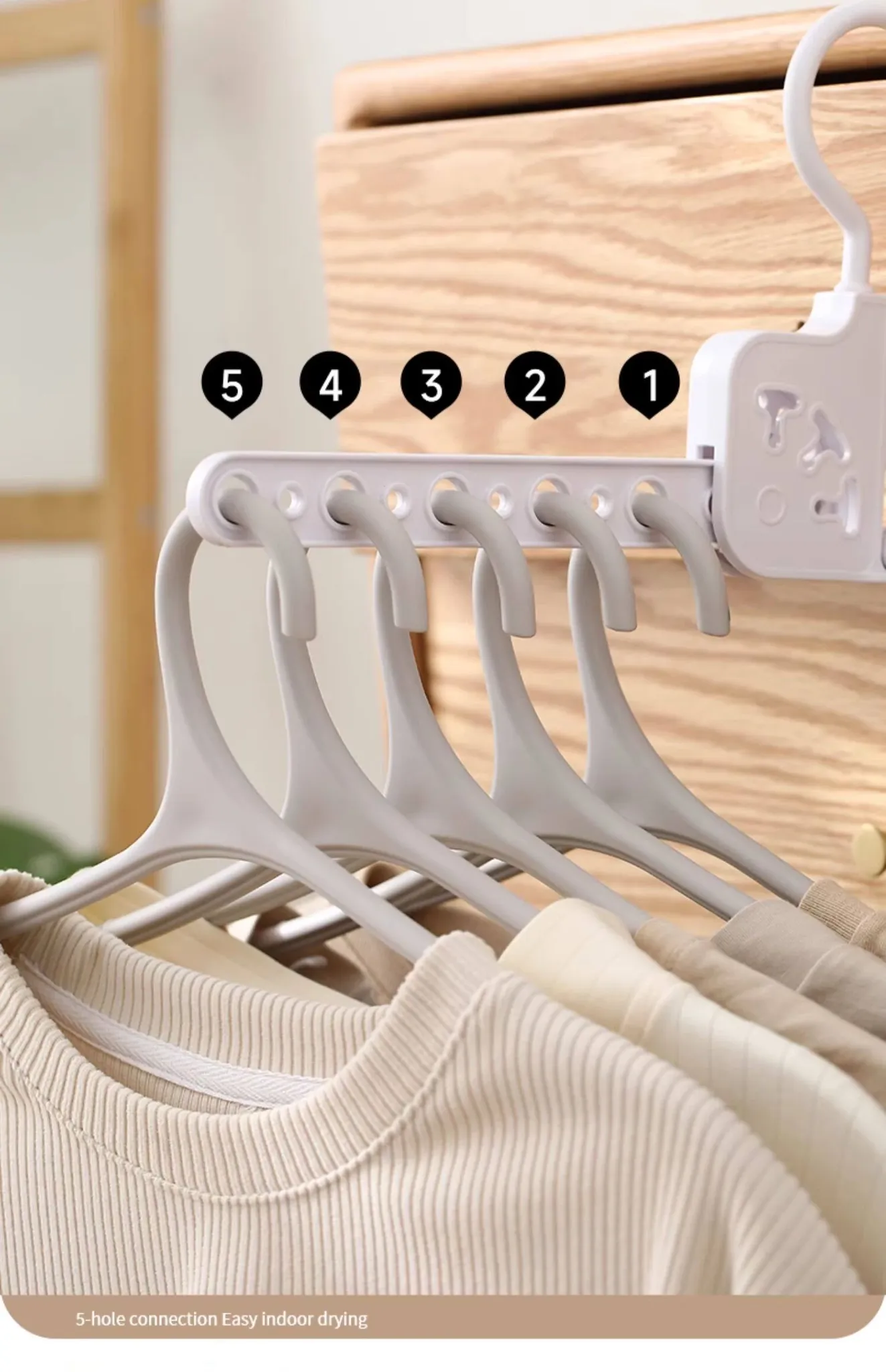 FaSoLa折りたたみ式衣類干しラック - 旅行や出張に最適なポータブルなマルチファンクションハンガー、5つの穴で衣類をしっかりと干せる便利アイテム!
