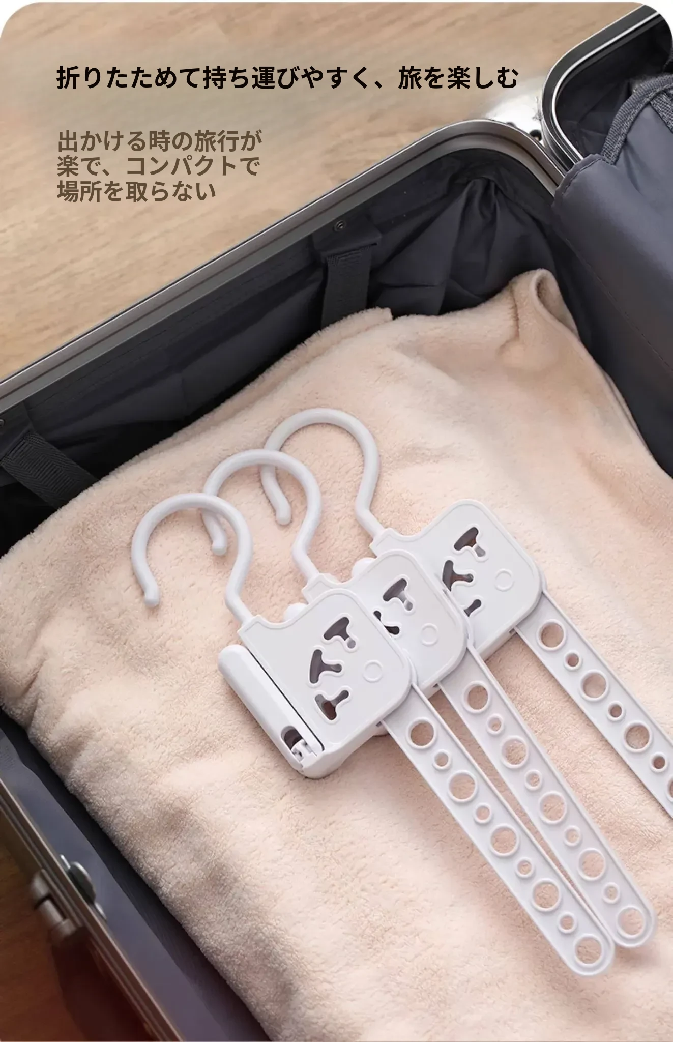 旅行用ハンガー(3枚入)+折りたたみ式物干し竿