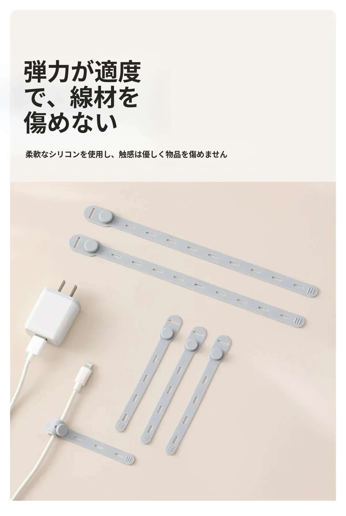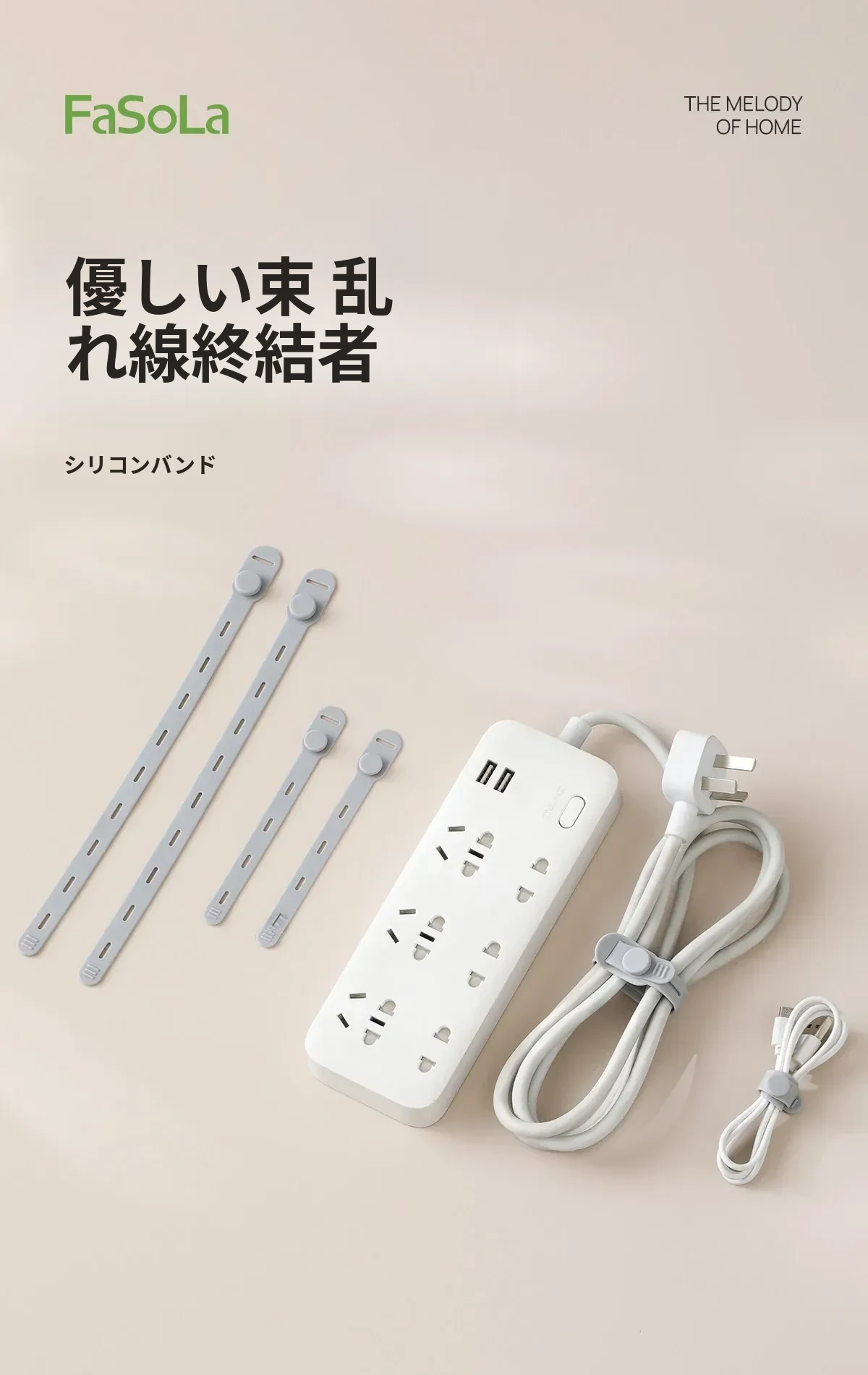 FaSoLaデータケーブル収納シリコンバンド 整理整頓の必需品!充電ケーブルをスッキリまとめる魔法のアイテム!使いやすく、コンパクトで、どこにでも持ち運べる便利なコード整理バンド!