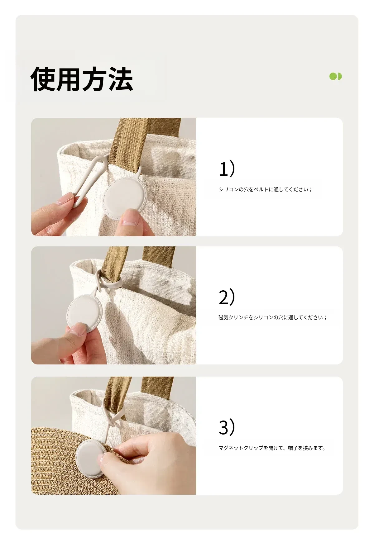 FaSoLaシリコンマグネットクリップ ポータブル強力マグネットフック 帽子やバッグをしっかり収納!外出時の落下防止に最適な便利グッズ!