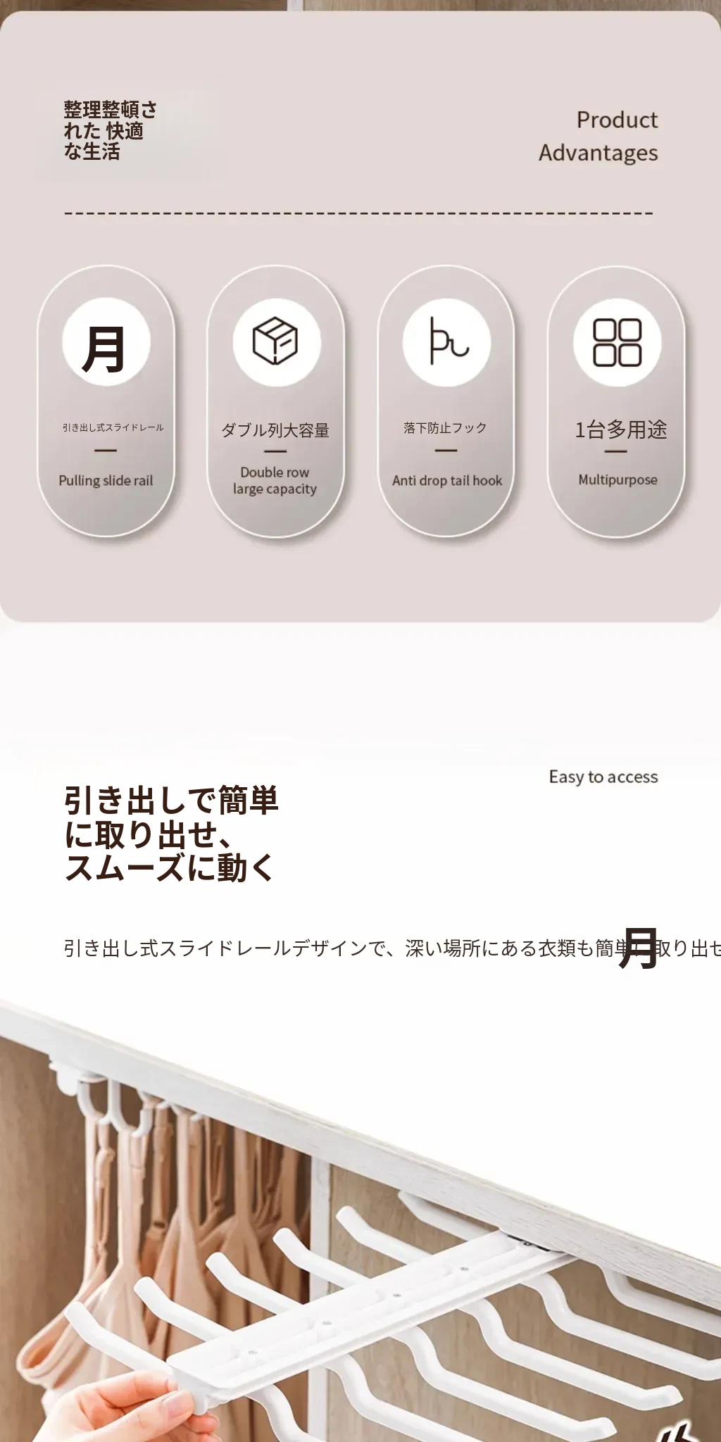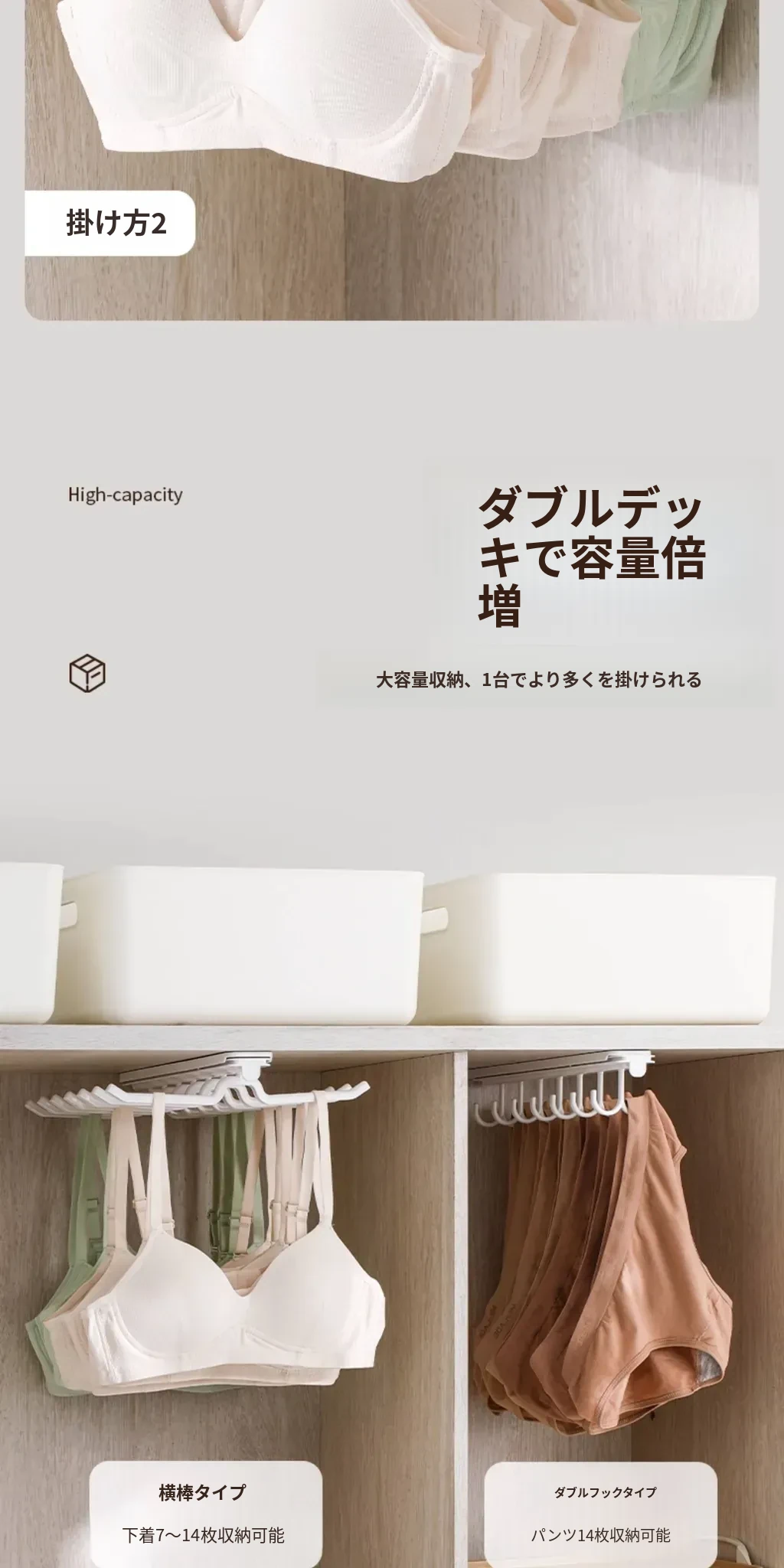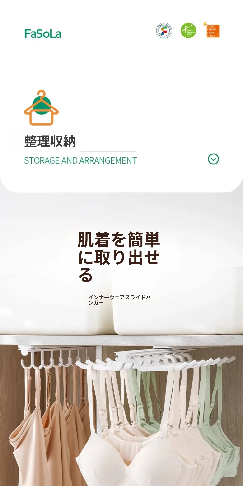 FaSoLaスライド式インナーキャップハンガー 家庭用クローゼット 引き出し式 ブラジャー・ストラップ多機能収納フック おしゃれで便利な整理整頓アイテム!