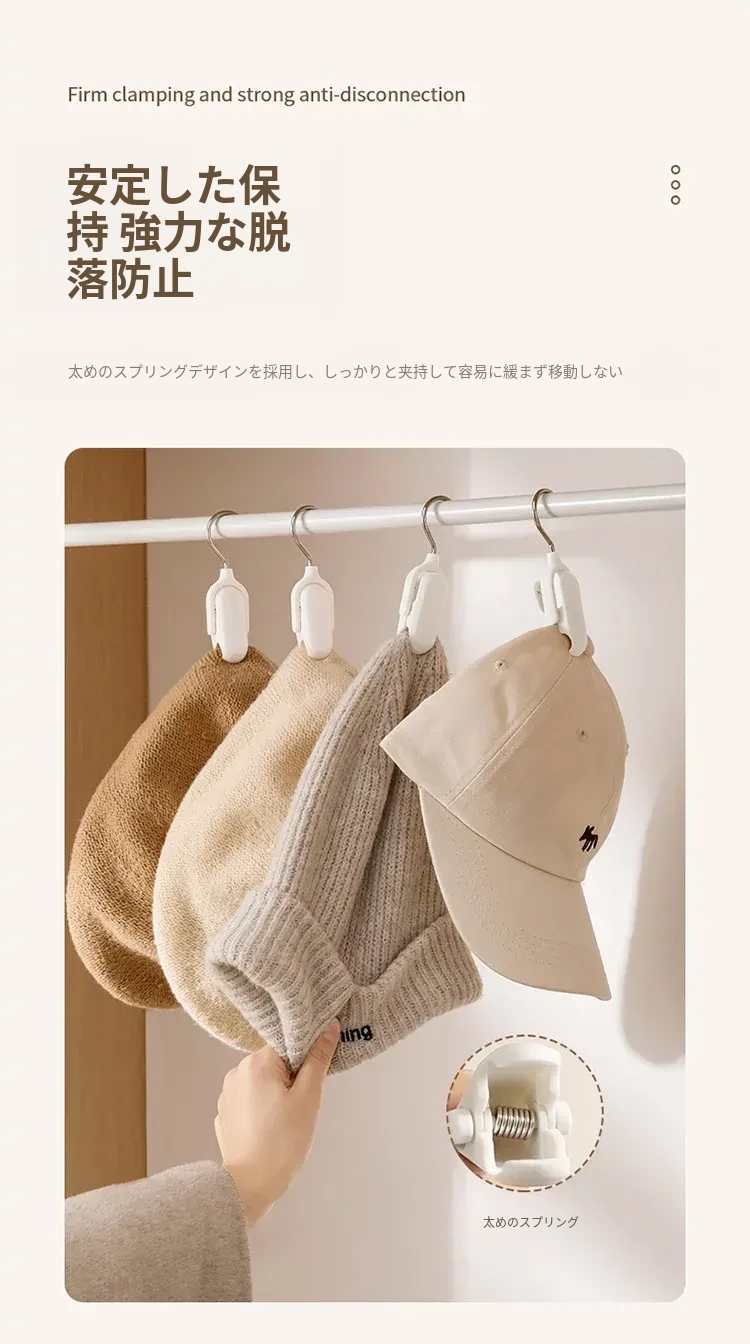 FaSoLa帽子収納神器!家族や赤ちゃんのための便利なハンガー。水拭きタオルや帽子をすっきり整理!寮やクローゼットでスペースを節約するクリップ付き。あなたの生活をスマートに!