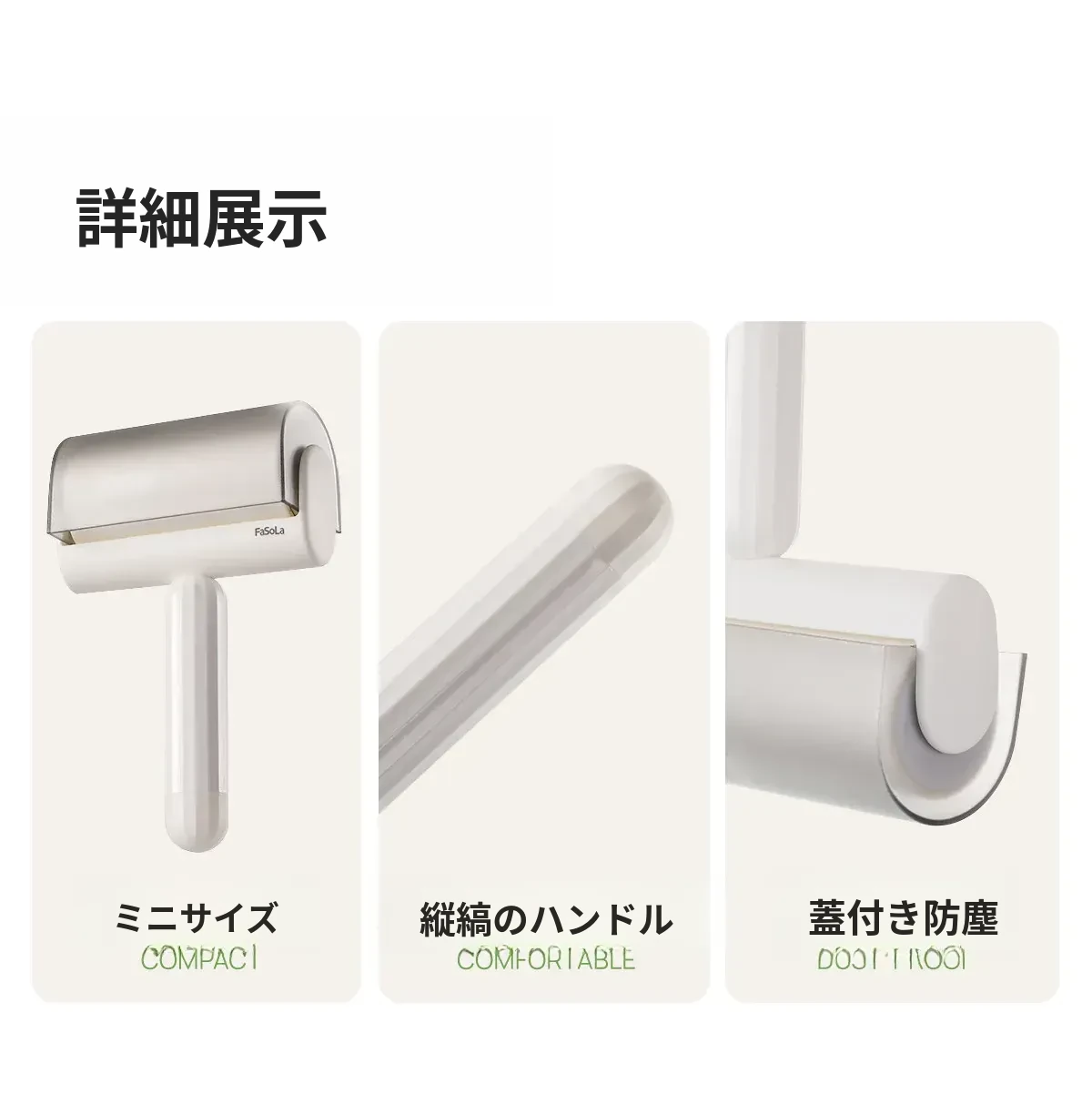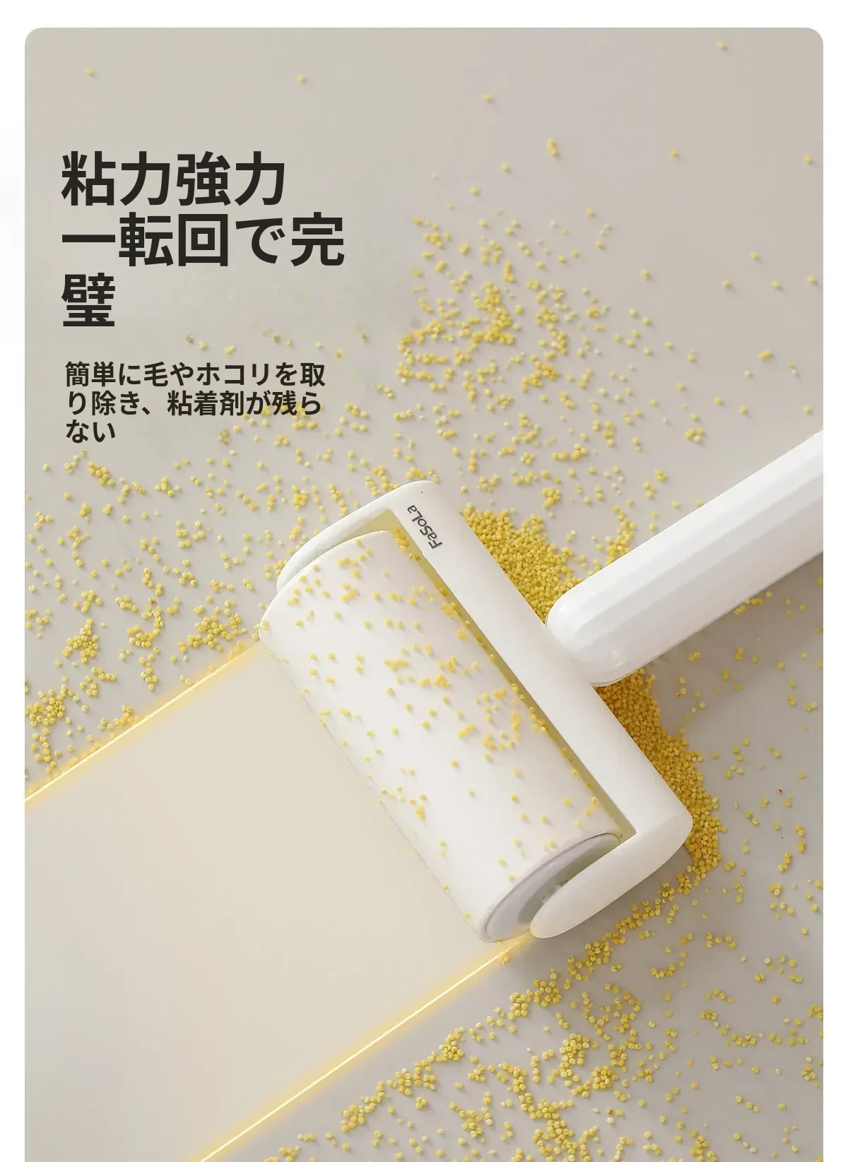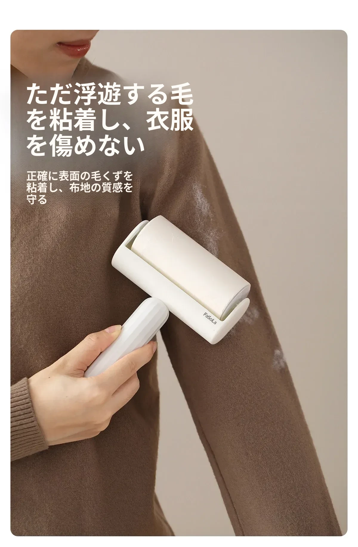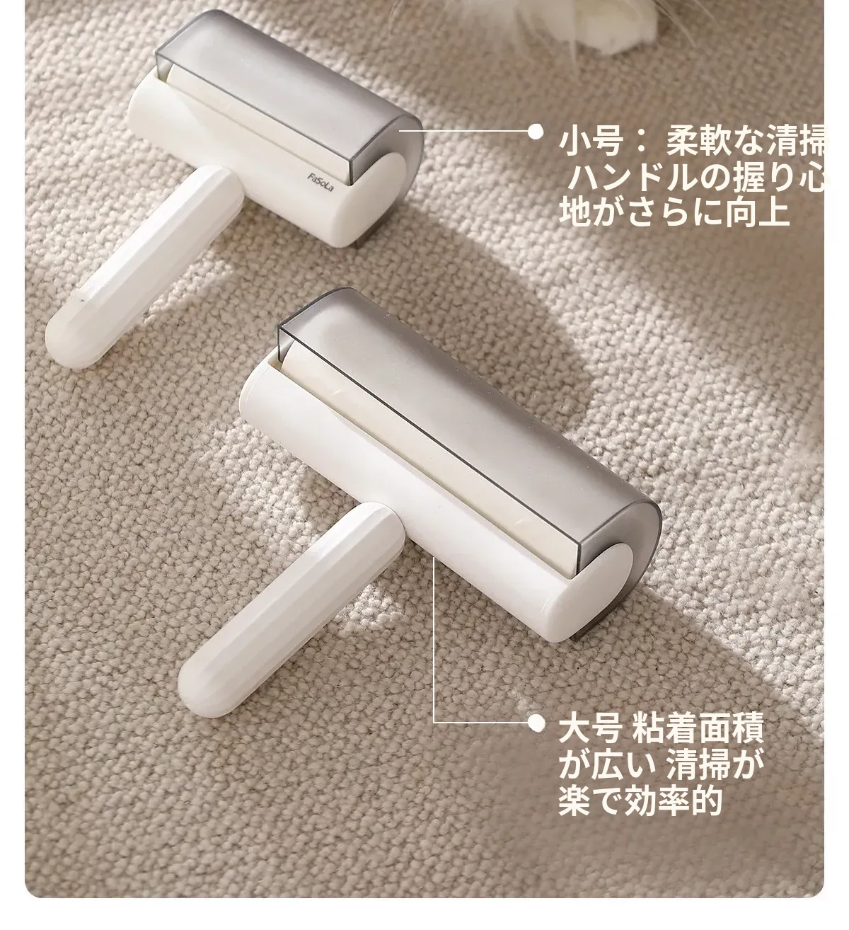 FaSoLa毛取りローラー:ペットの毛を簡単にキャッチ!衣類に優しい、剥がせる粘着式で、猫や犬の毛をしっかり除去。持ち運び便利なコンパクトデザインで、いつでも清潔な服を実現!