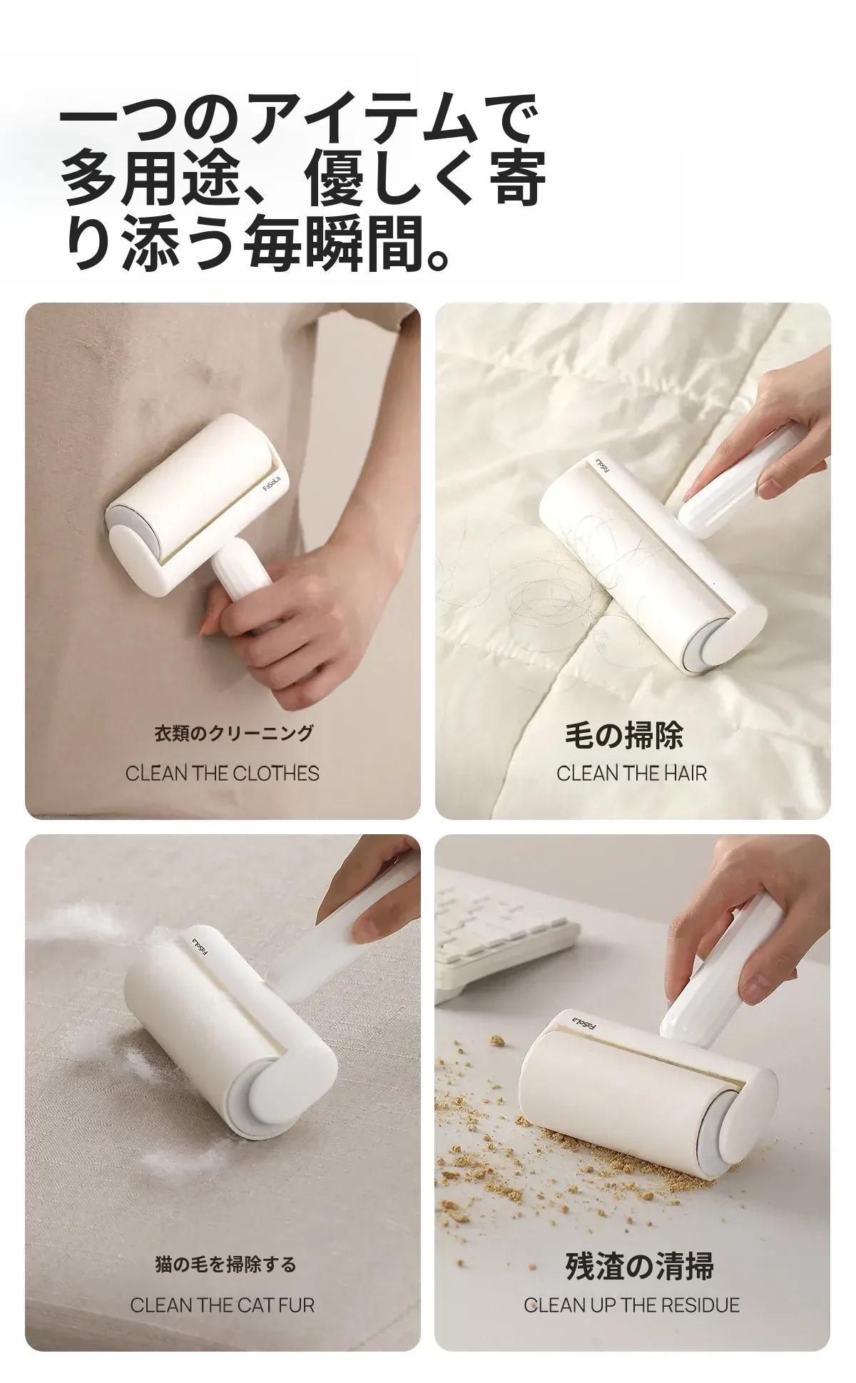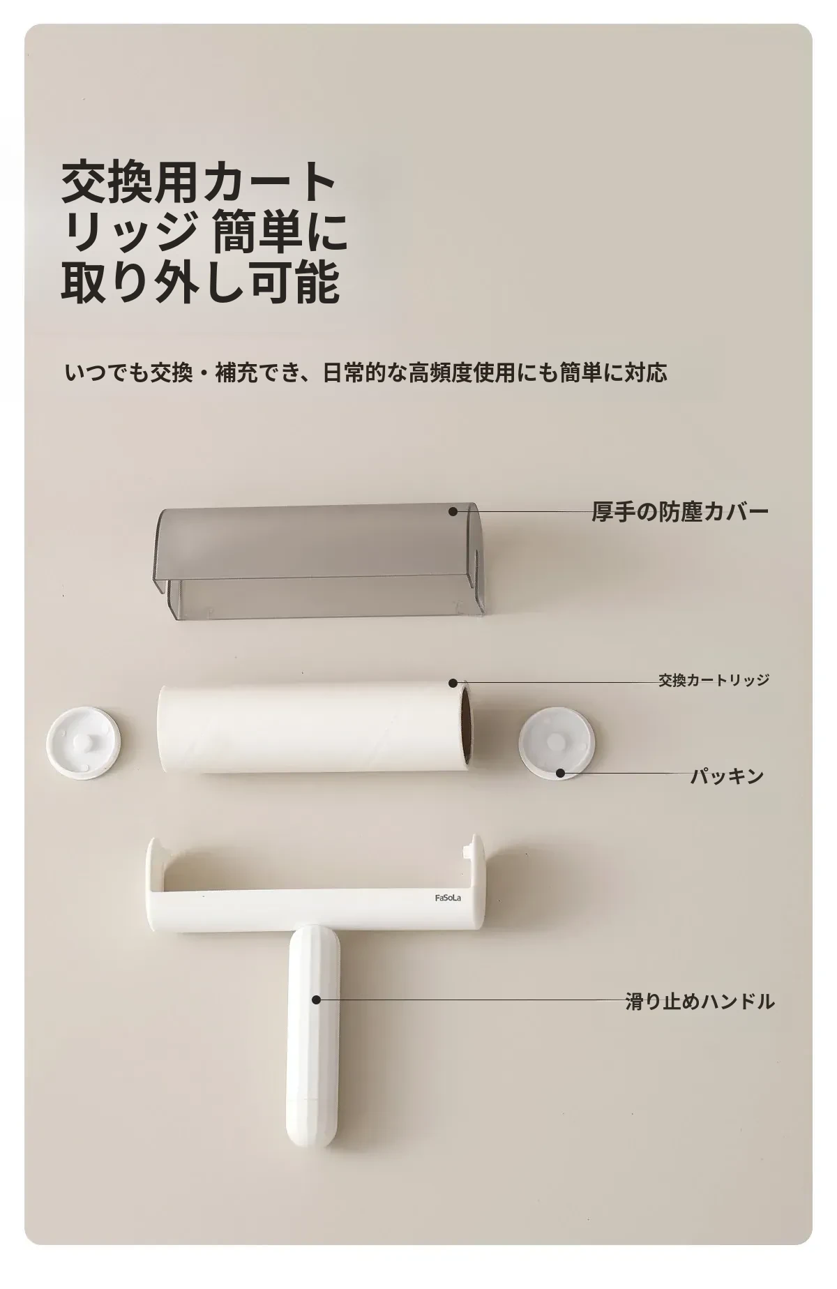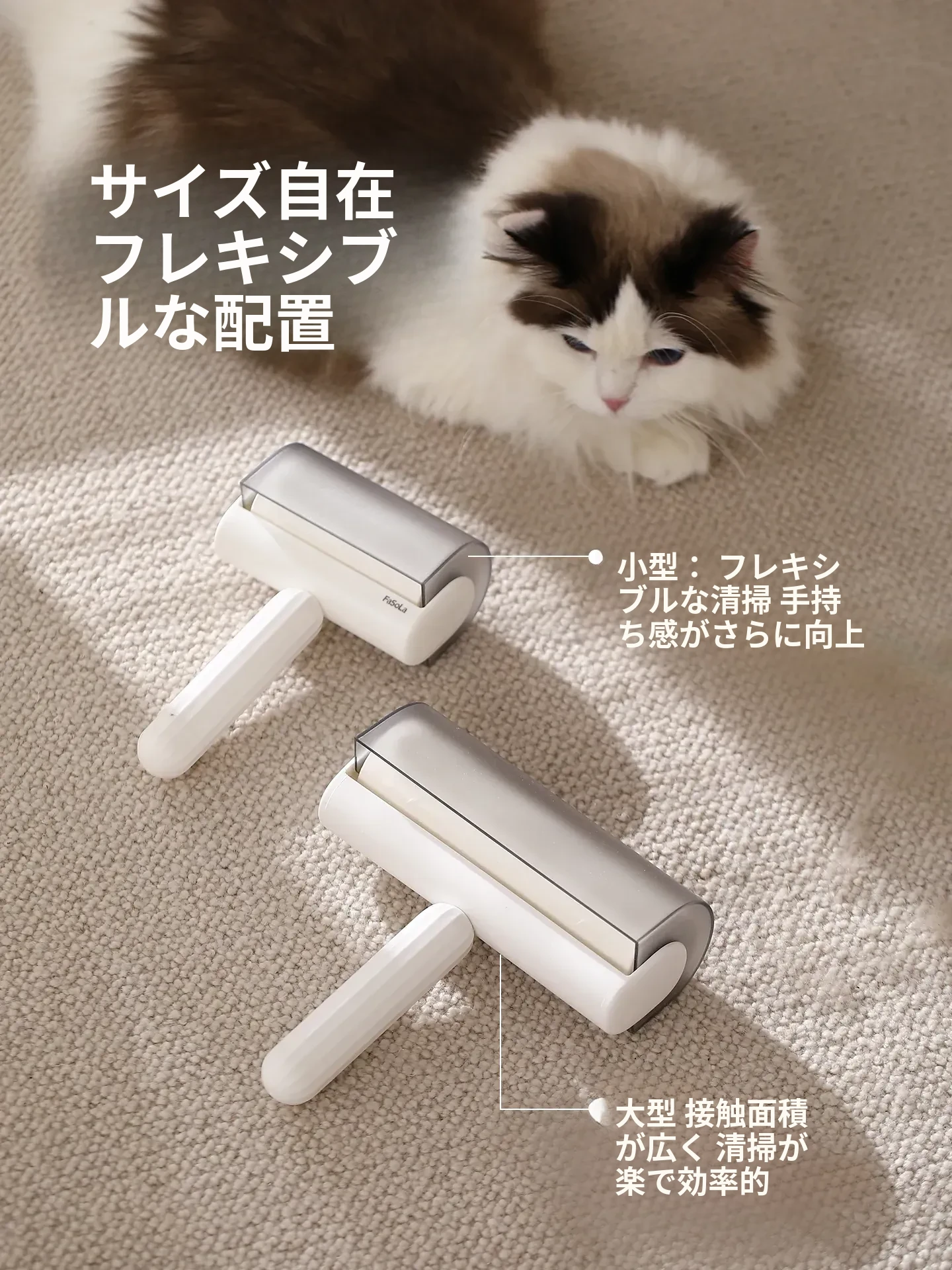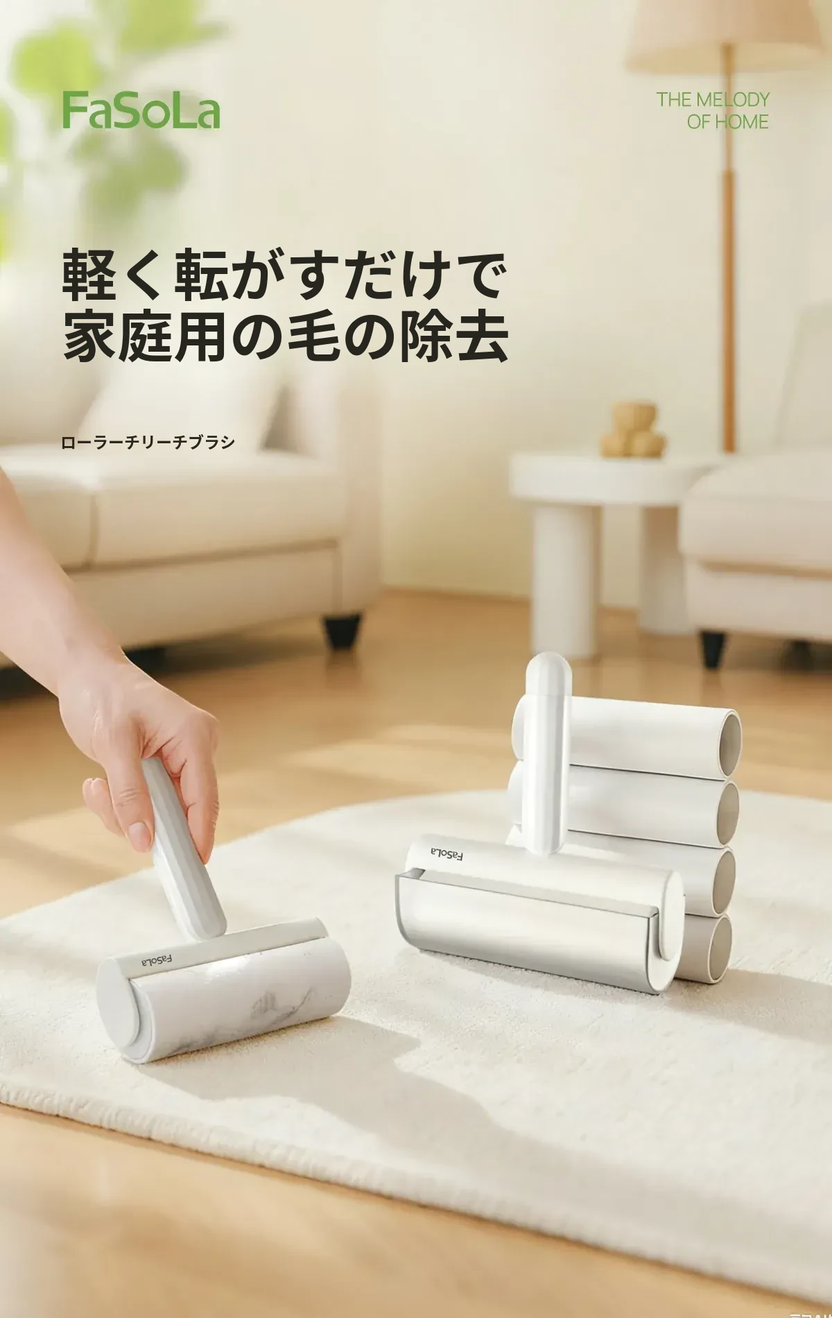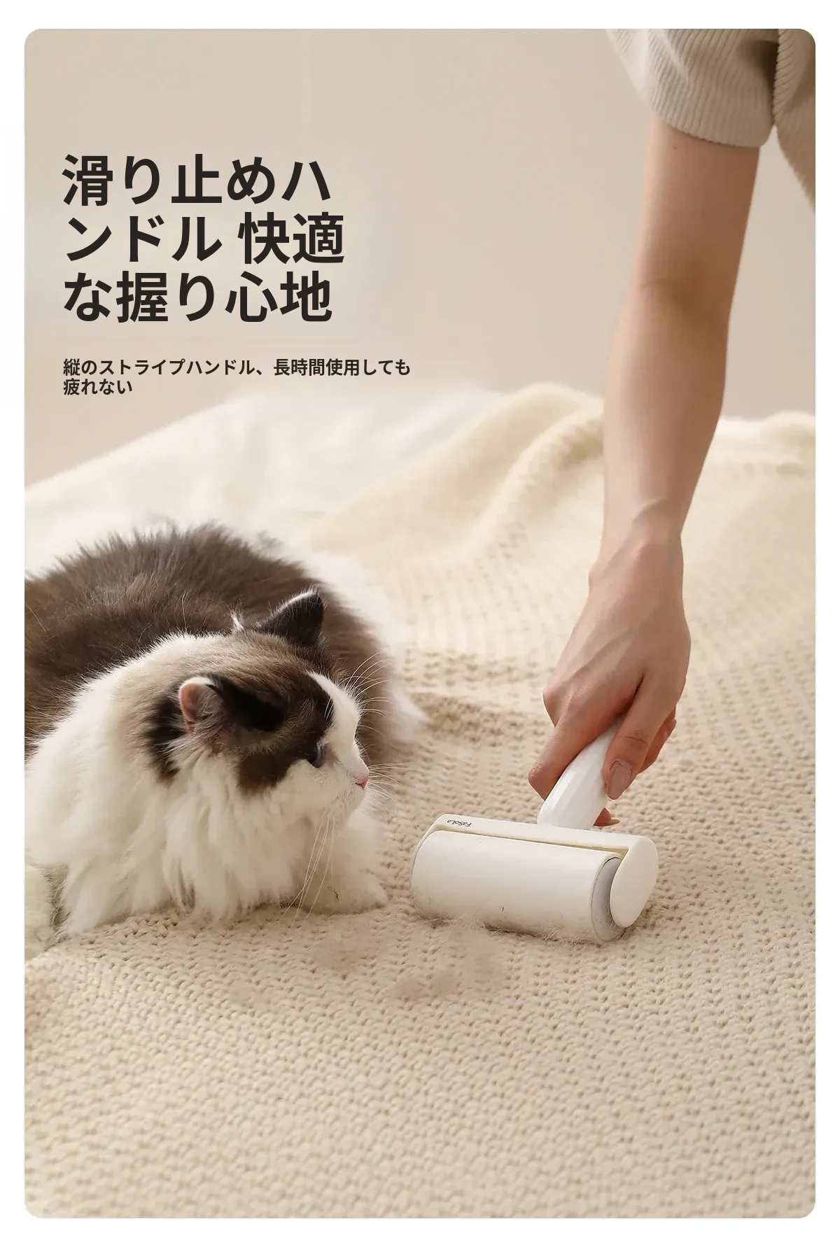 FaSoLa毛取りローラー:ペットの毛を簡単にキャッチ!衣類に優しい、剥がせる粘着式で、猫や犬の毛をしっかり除去。持ち運び便利なコンパクトデザインで、いつでも清潔な服を実現!